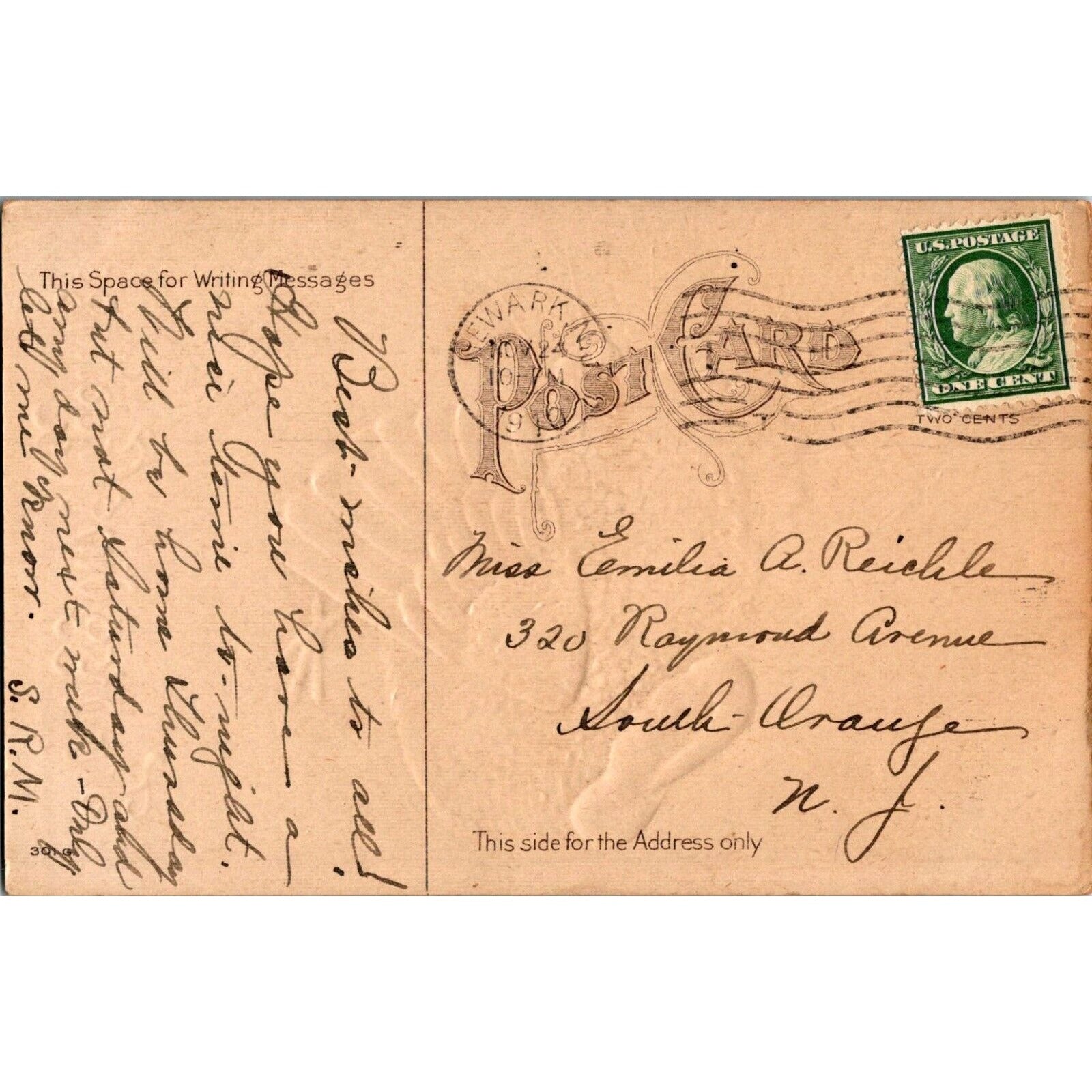 • Postmarked November 24, 1910, Newark, NJ