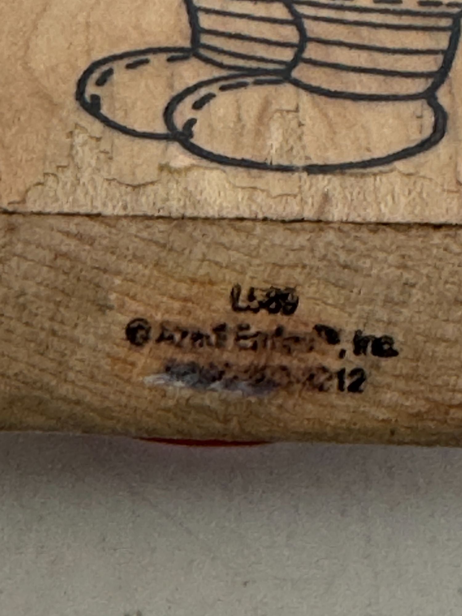 • Gently used condition. Clean rubber, light ink stains on wood mount.