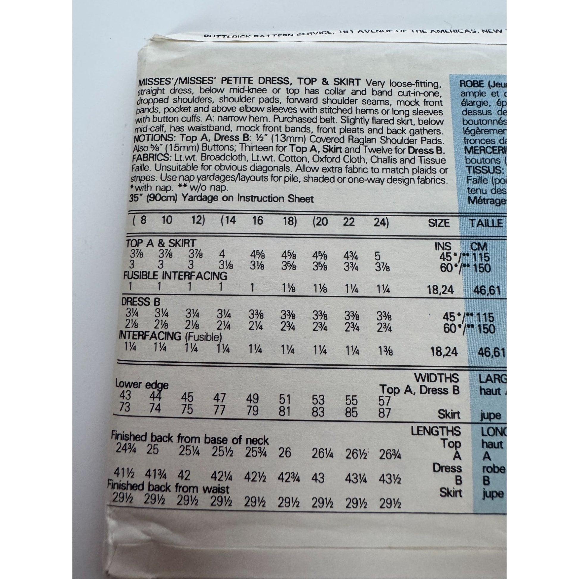 Butterick Sewing Pattern 3902: Misses' Dress, Top and Skirt