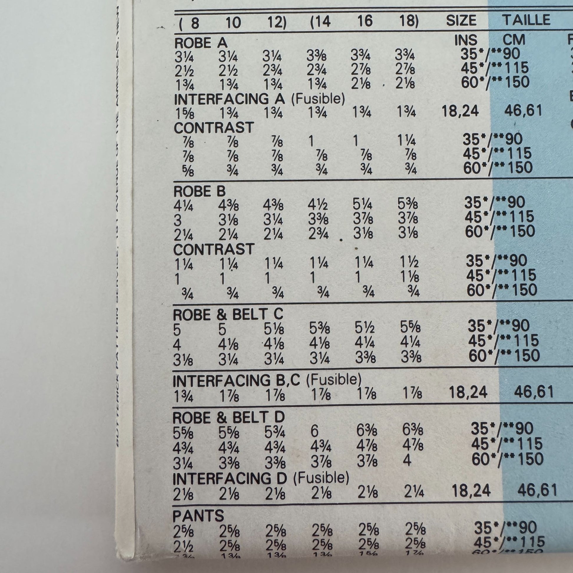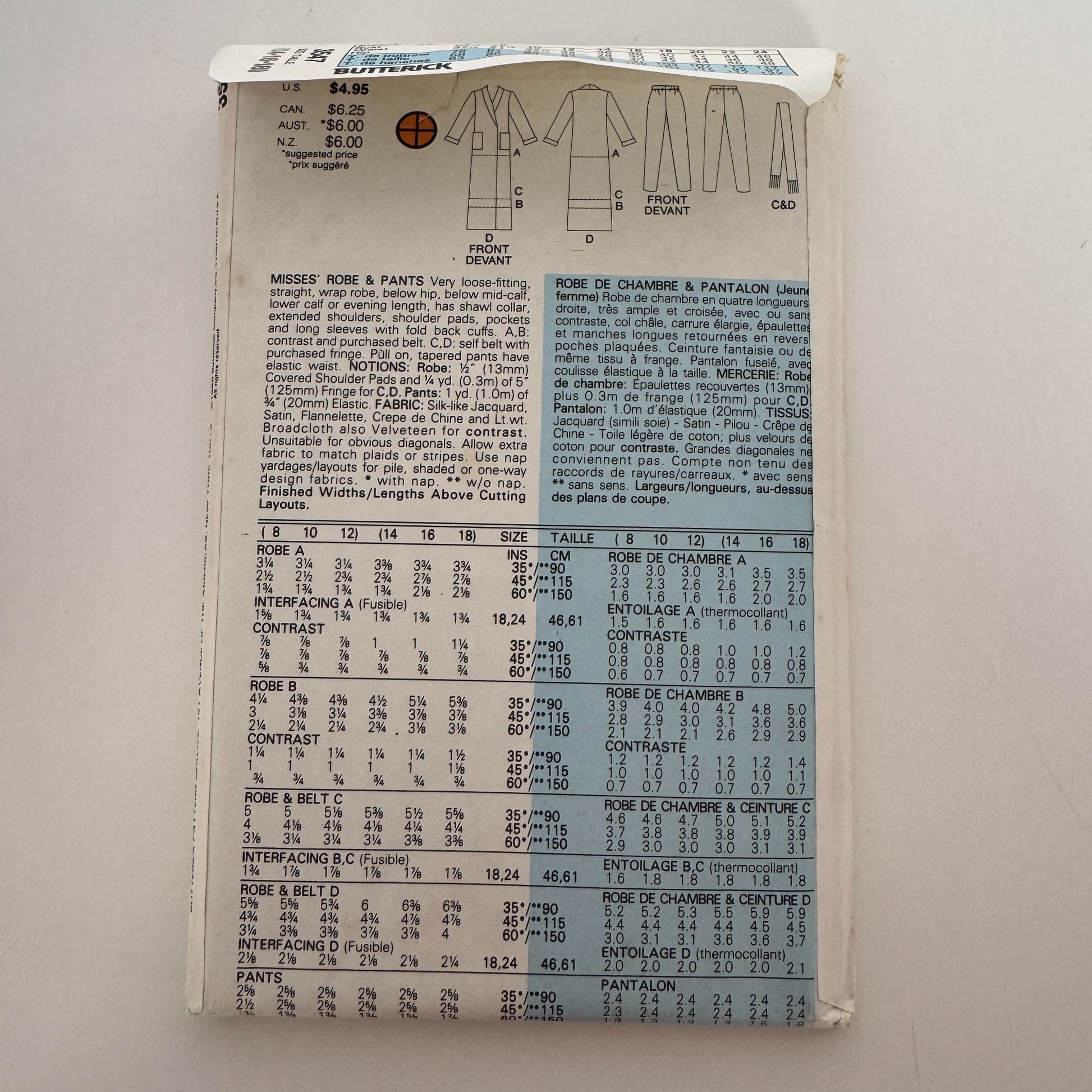 Butterick Classics Sewing Pattern 3547 Misses Robe and Pants 14-18 1980s Vintage