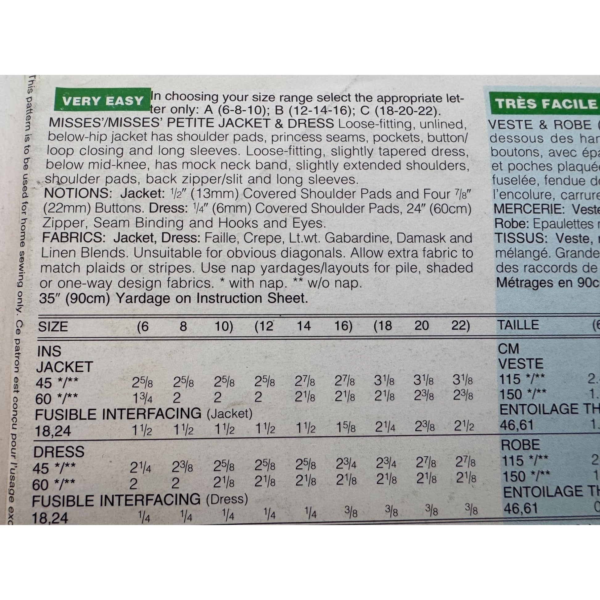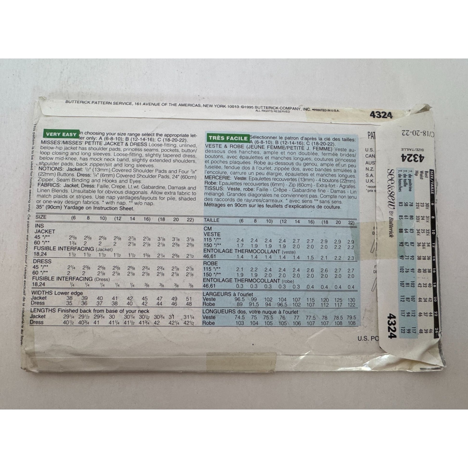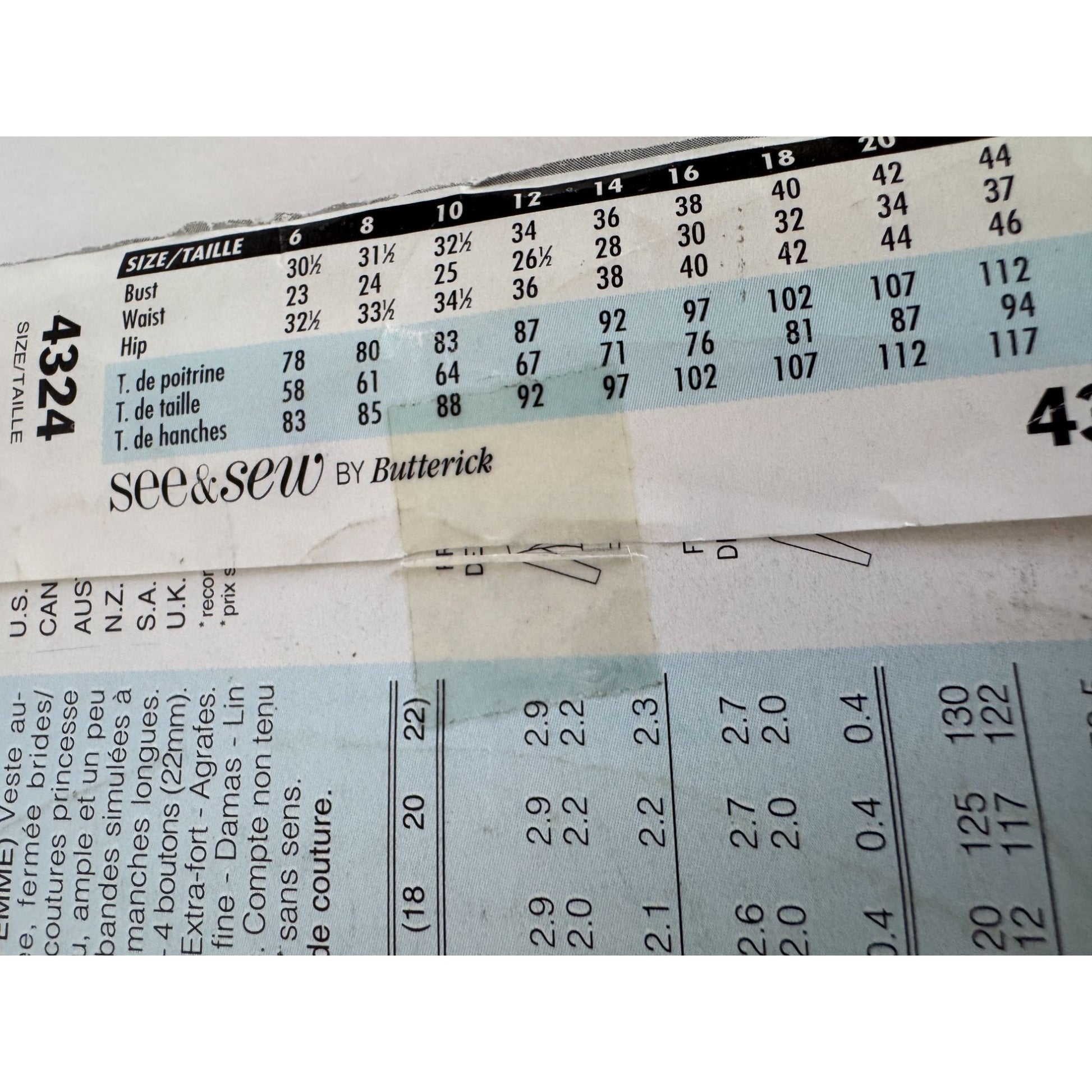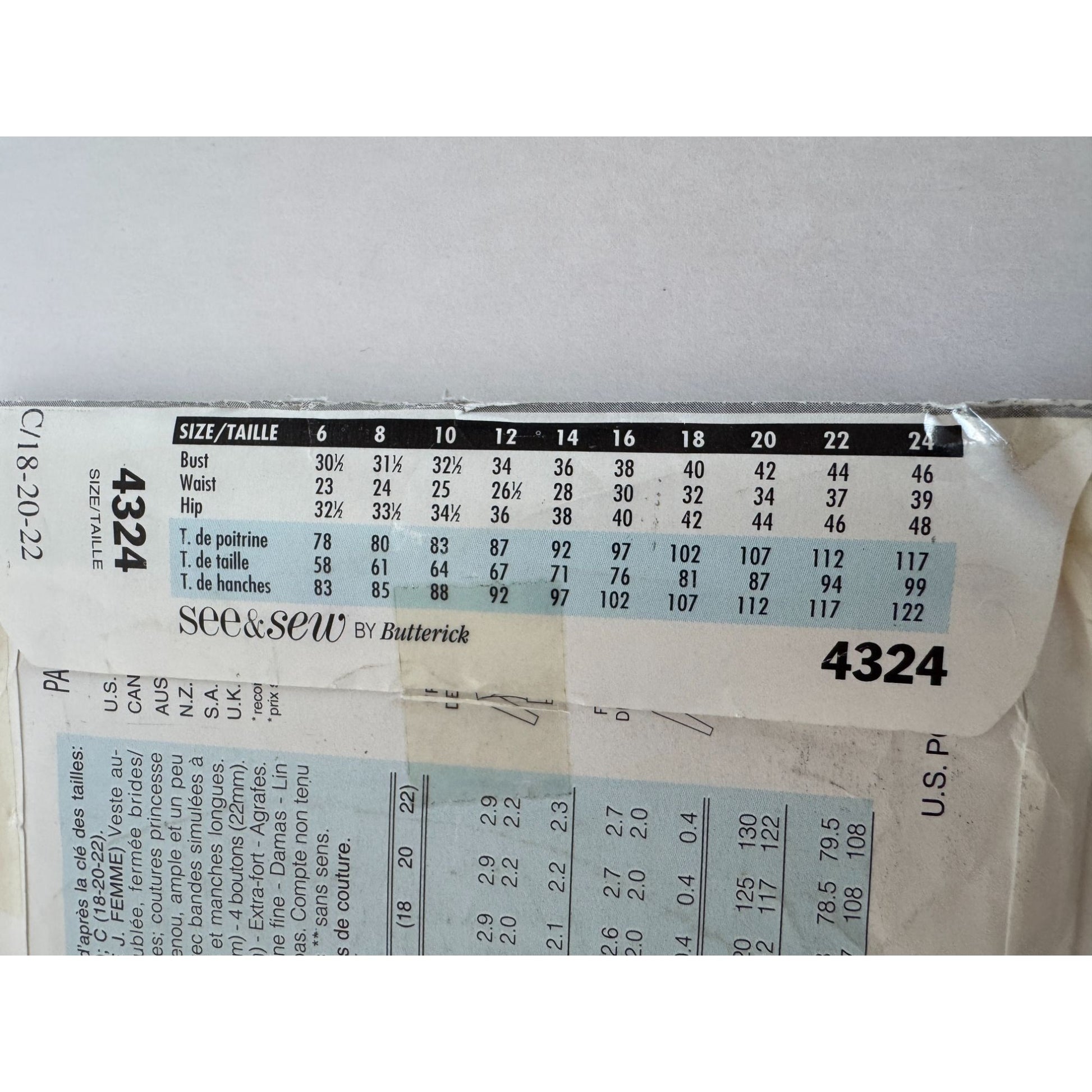 Butterick See and Sew Sewing Pattern 4324 Suit Jacket Dress Blazer 18 20 22 UC