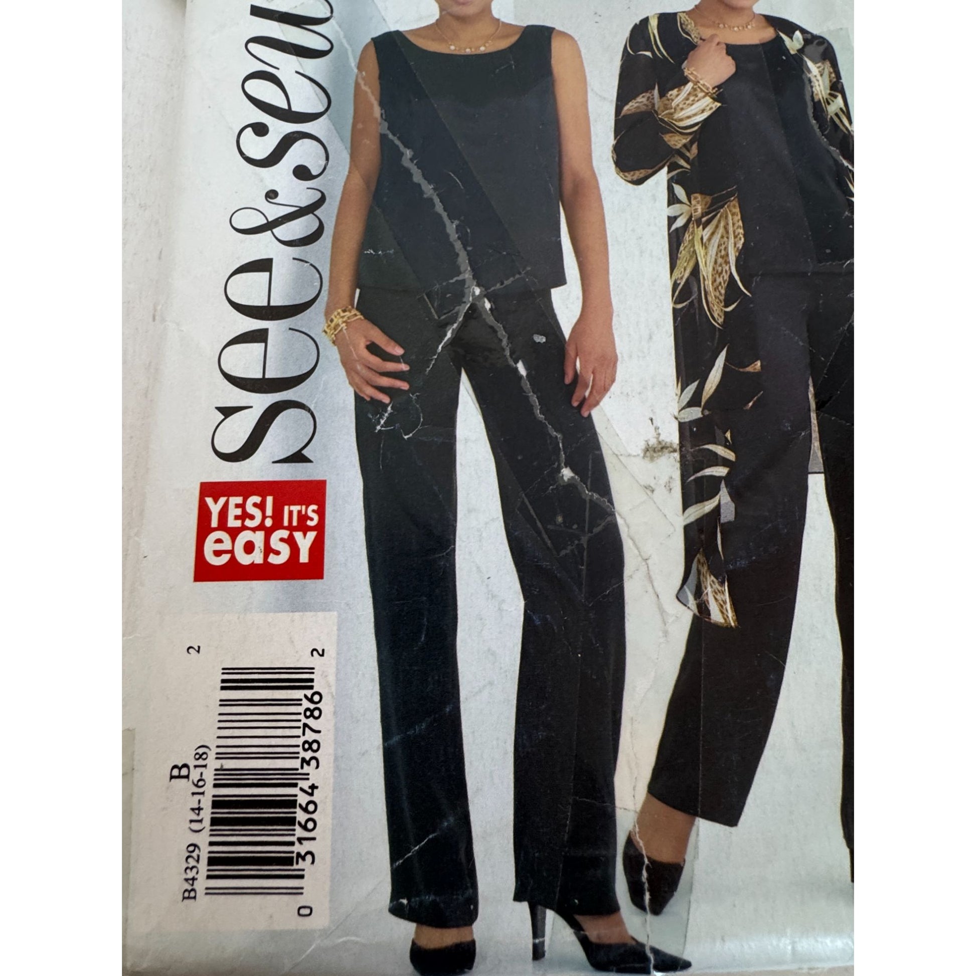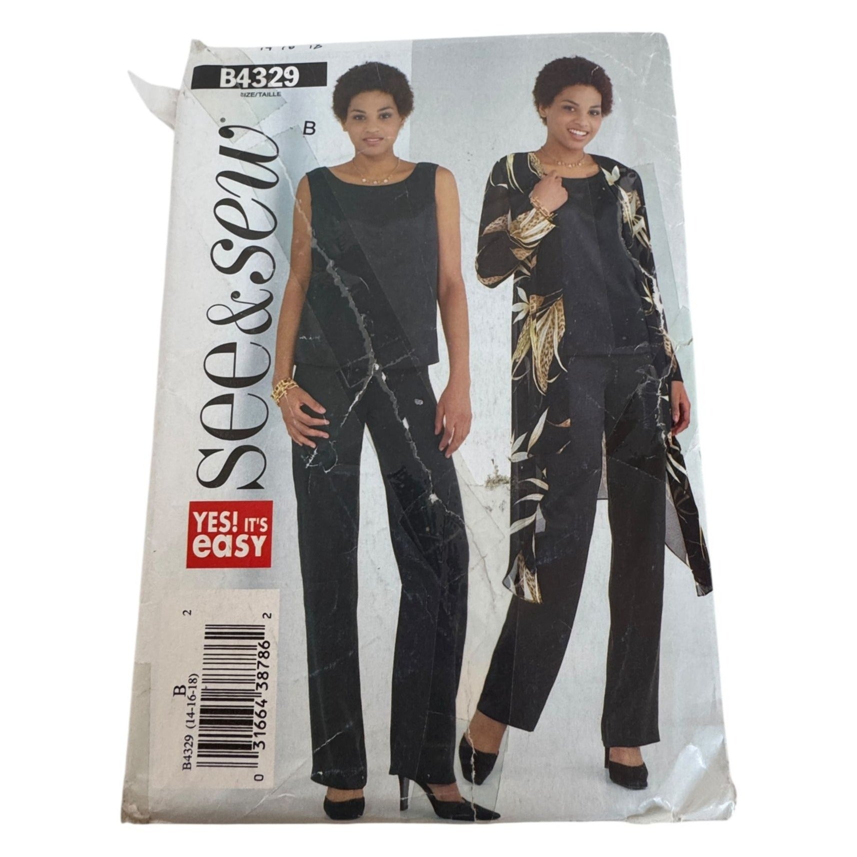 Butterick See and Sew Sewing Pattern B4329 Duster Top Pants Work 14 16 18 UC