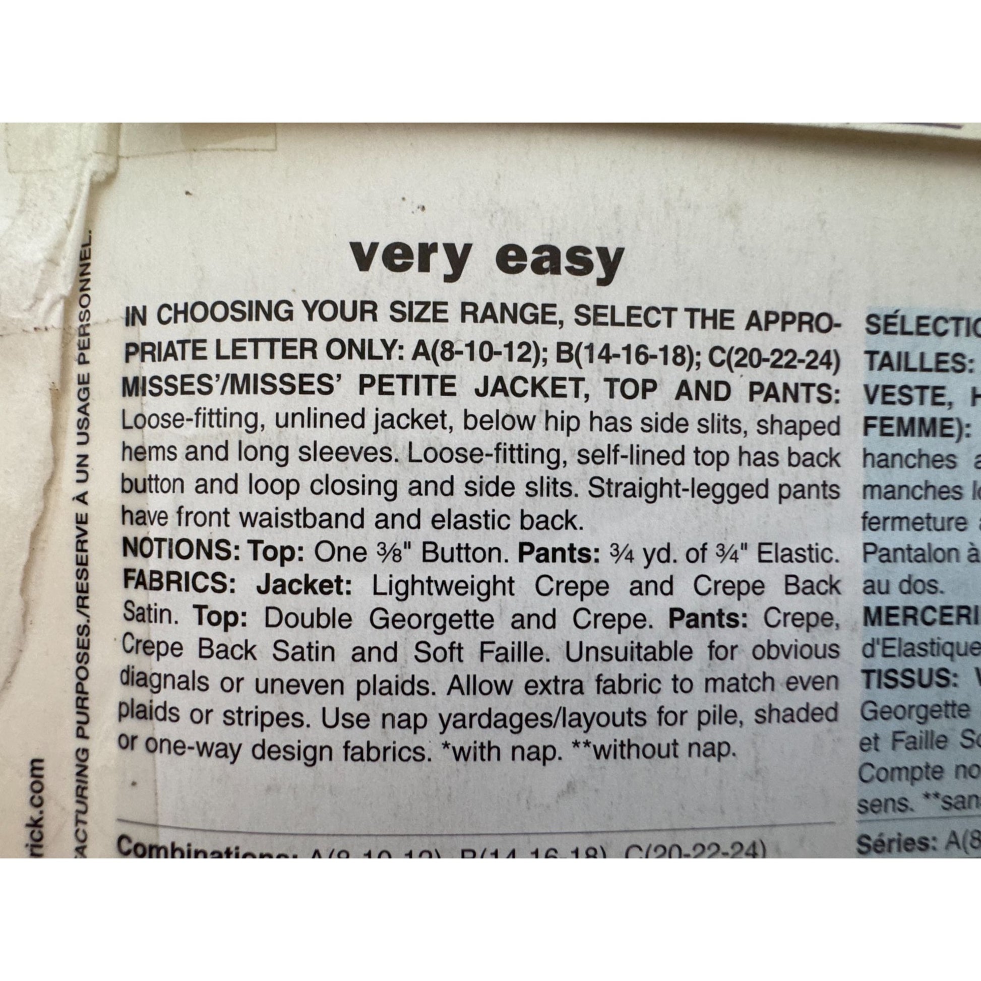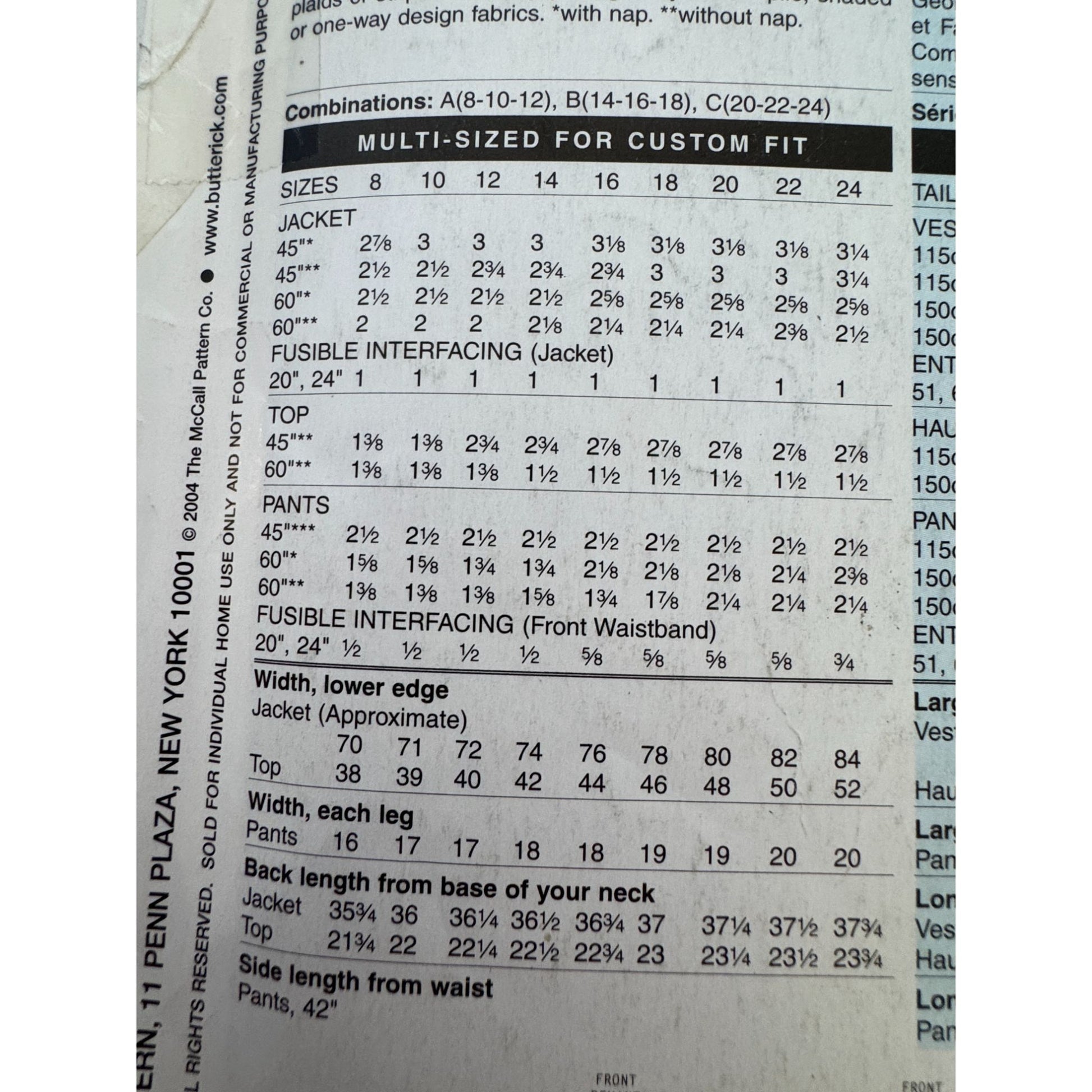 • Includes patterns for jacket/ duster, top, and pants