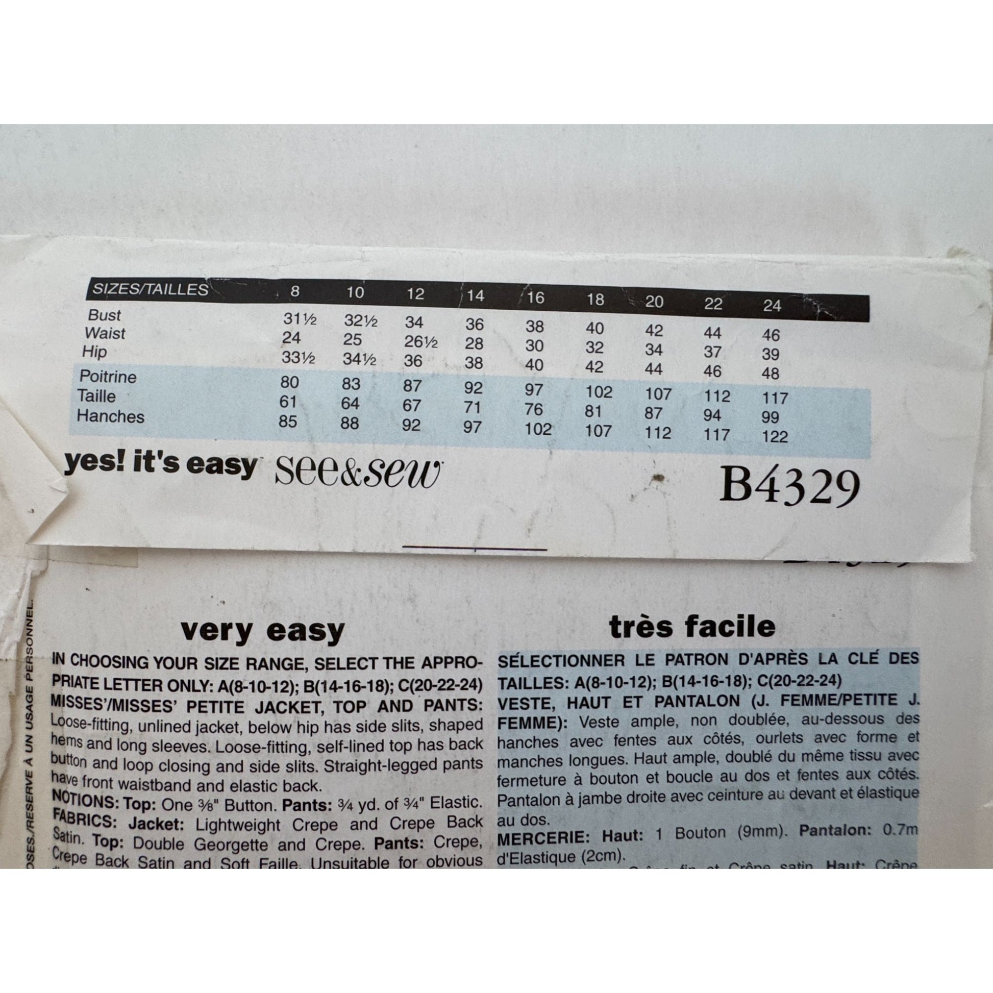 See & Sew Sewing Pattern B4329