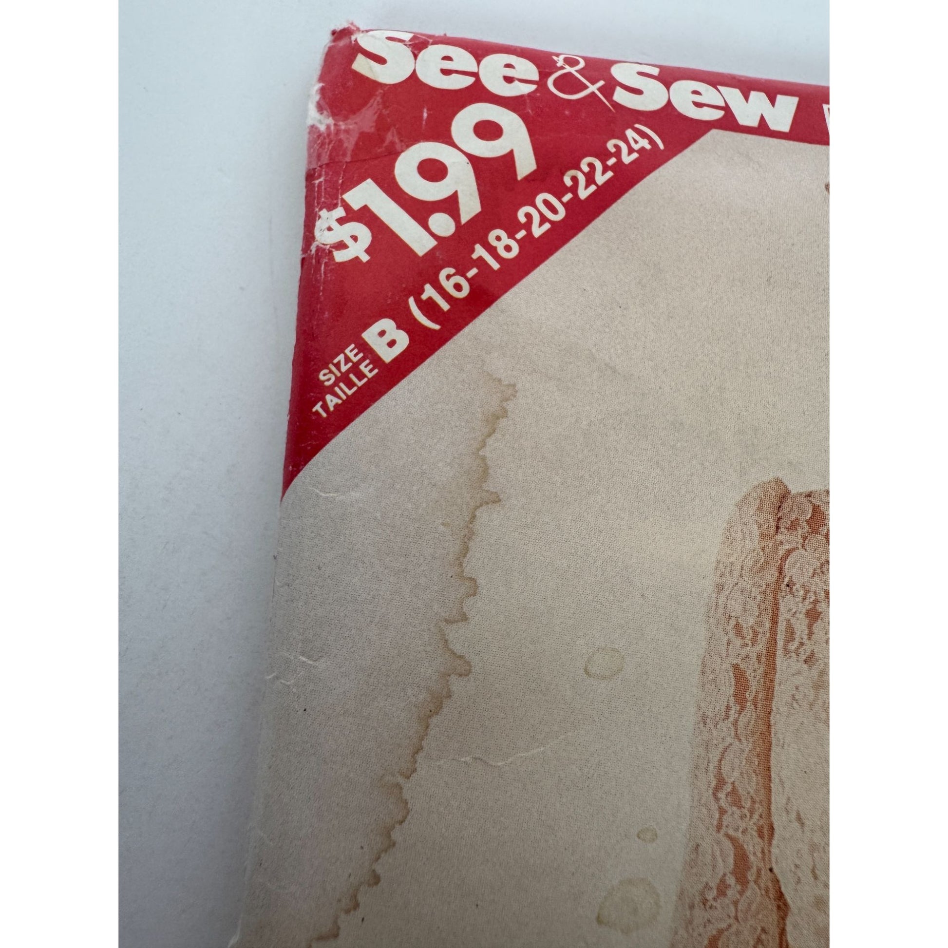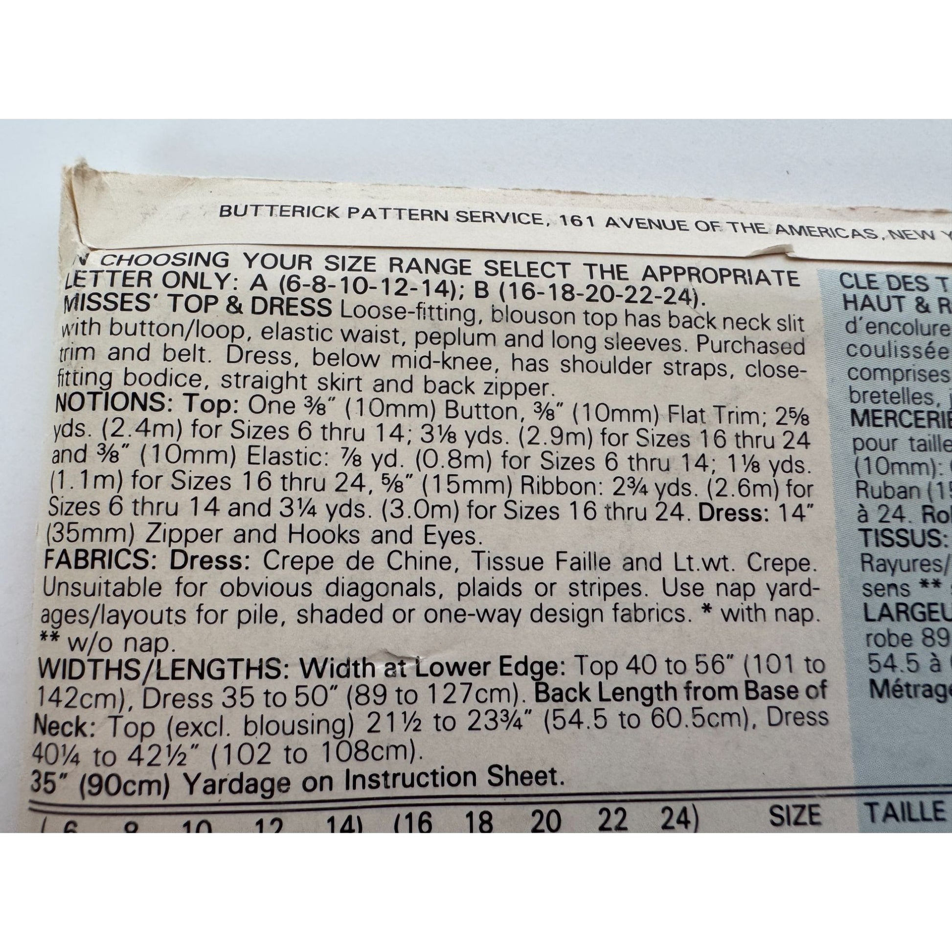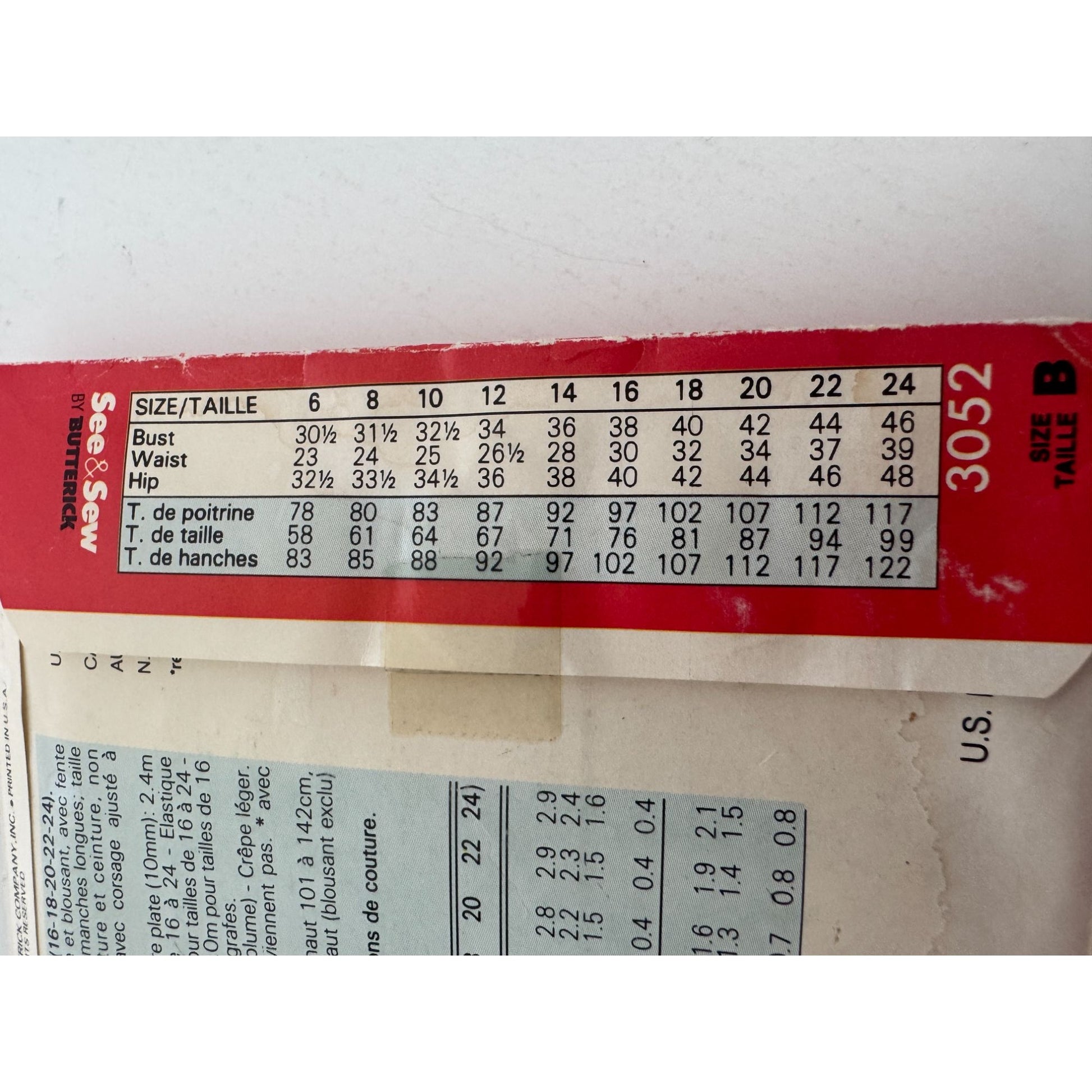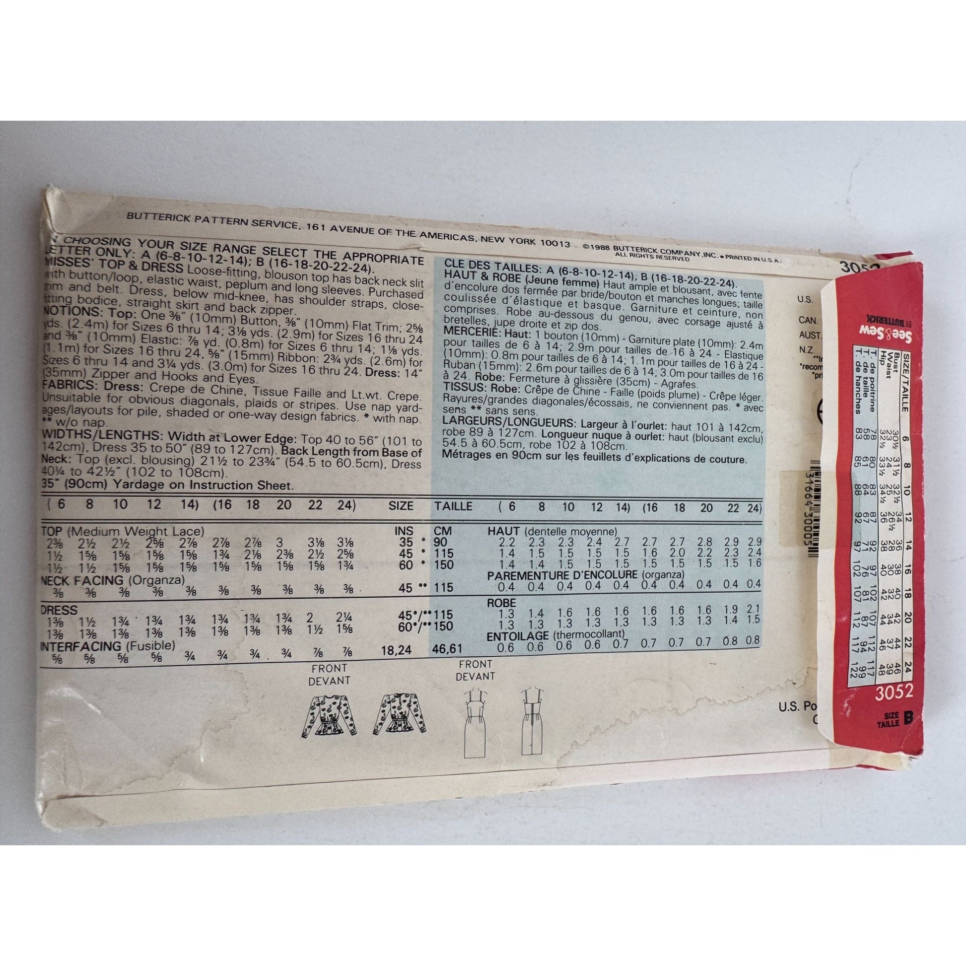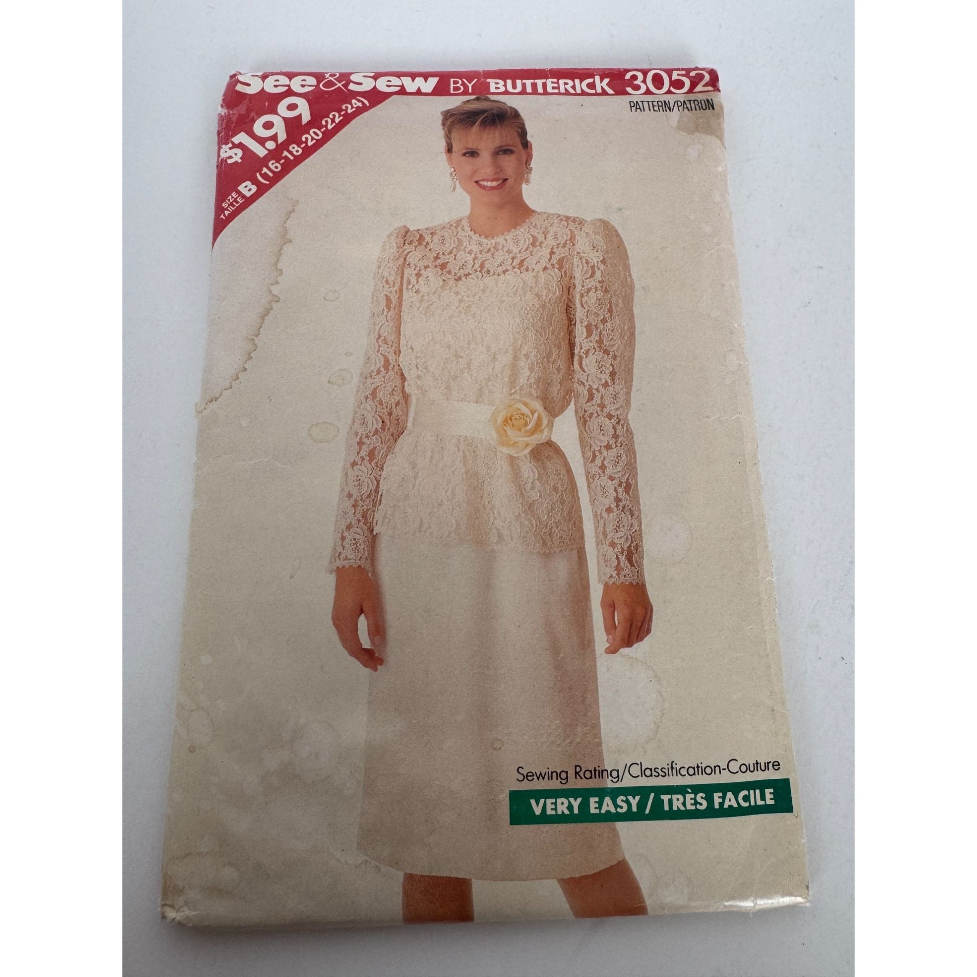 Butterick Sewing Pattern 3052 Semi Formal Dress Top Easy 1980s UC 16 18 20 22 24