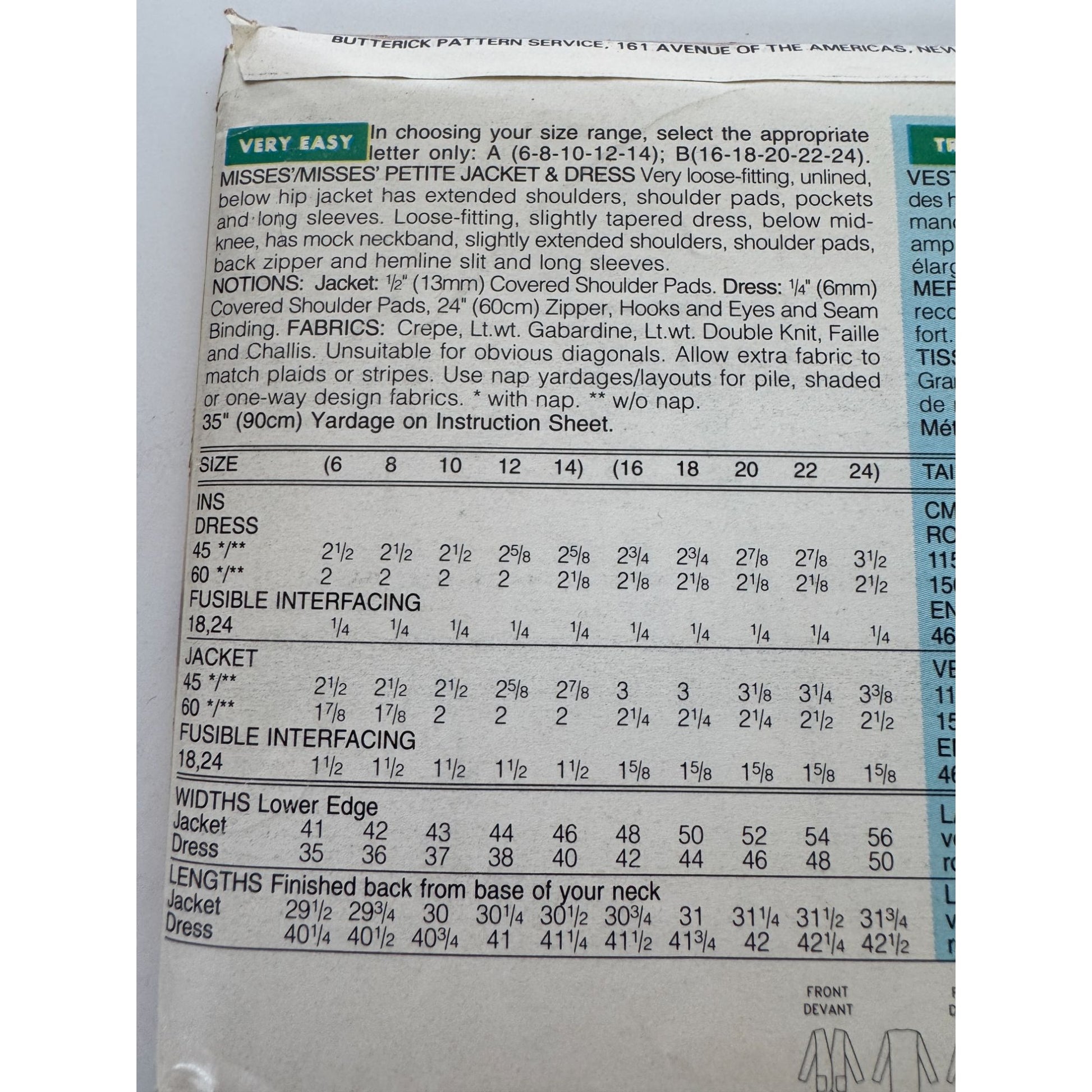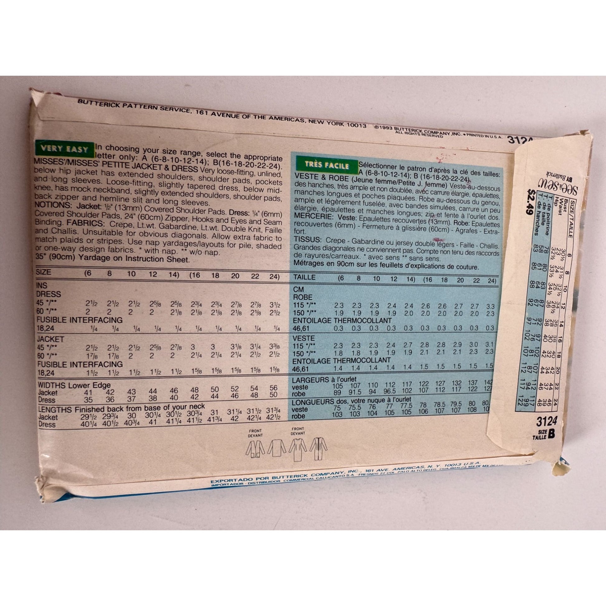 Butterick Sewing Pattern 3124 See and Sew Jacket Blazer Dress Outfit 16-24 Easy
