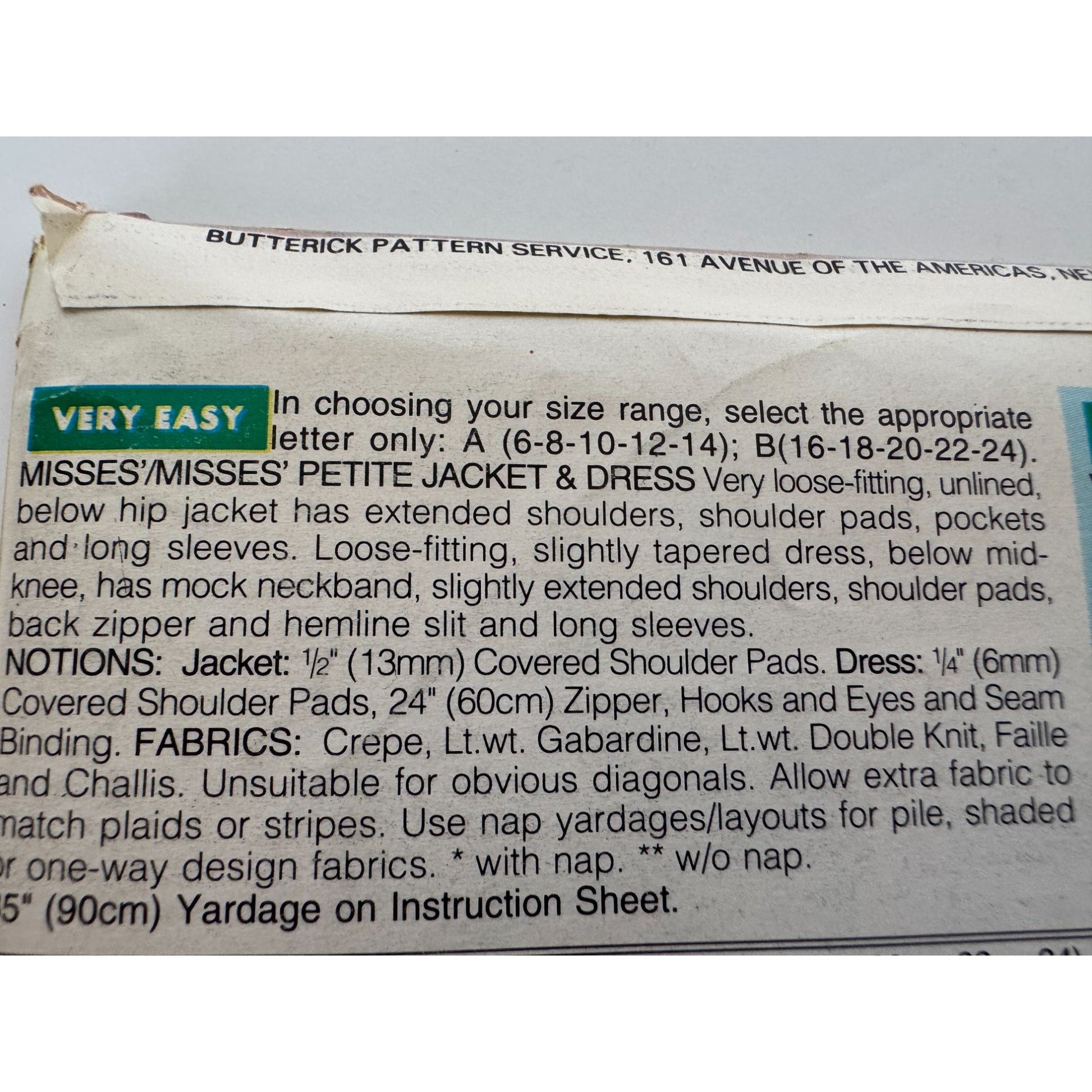 Butterick See & Sew Sewing Pattern 3124: Misses' Jacket and Dress
