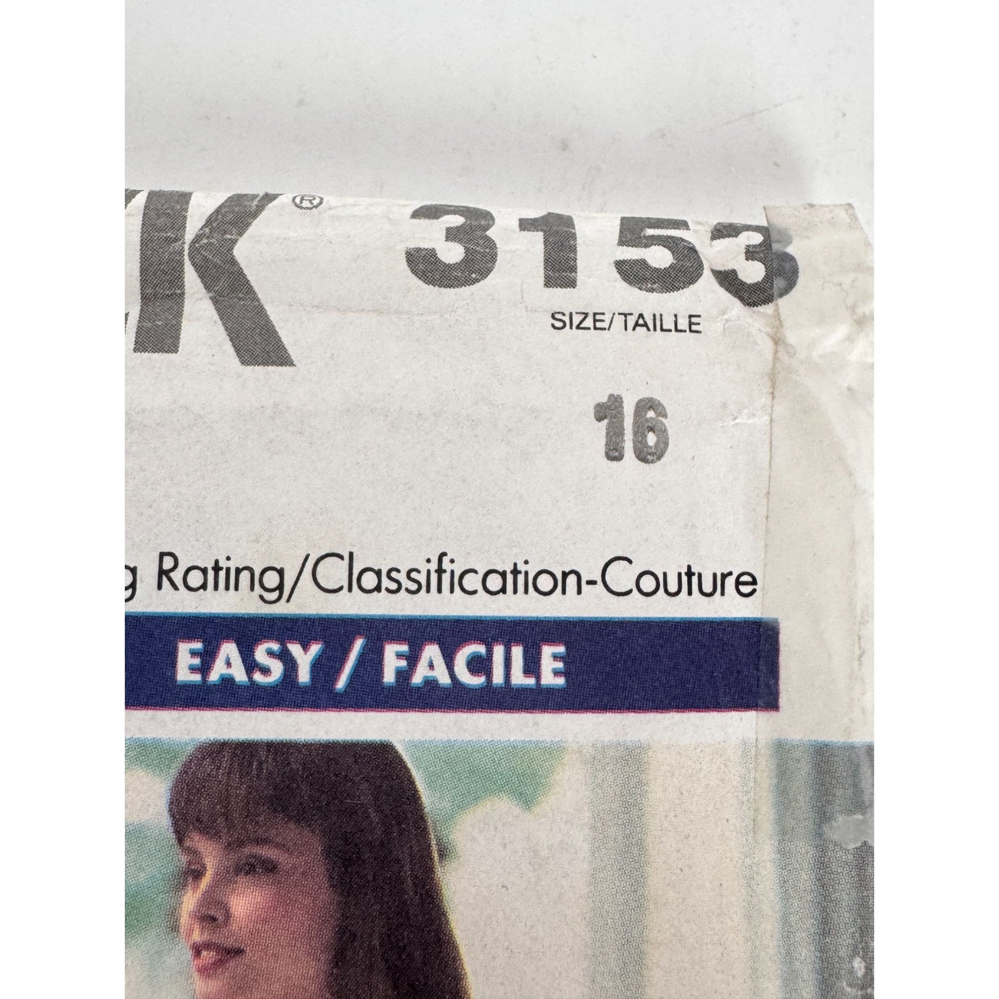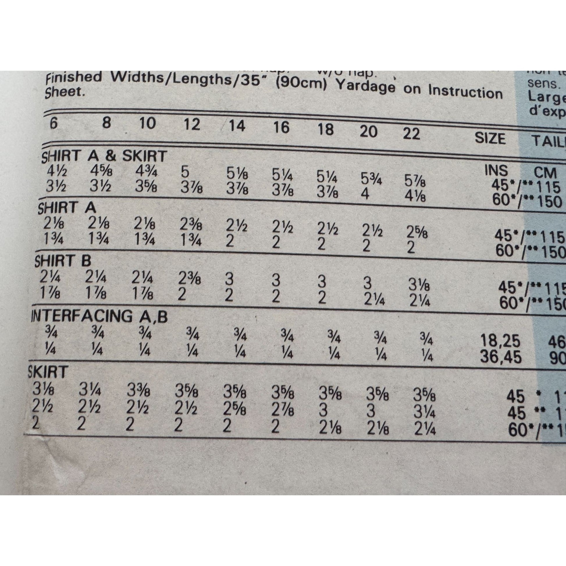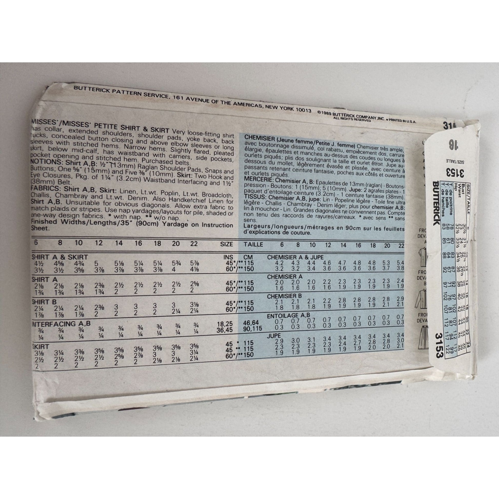 Butterick Sewing Pattern 3153 Shirt Skirt Outfit Sz 16 Easy 1980s Cinched Waist