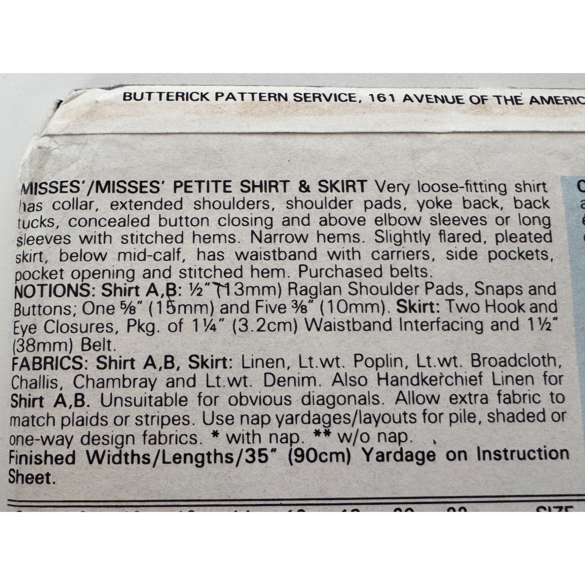 Butterick Sewing Pattern 3153: Misses' Shirt and Skirt
