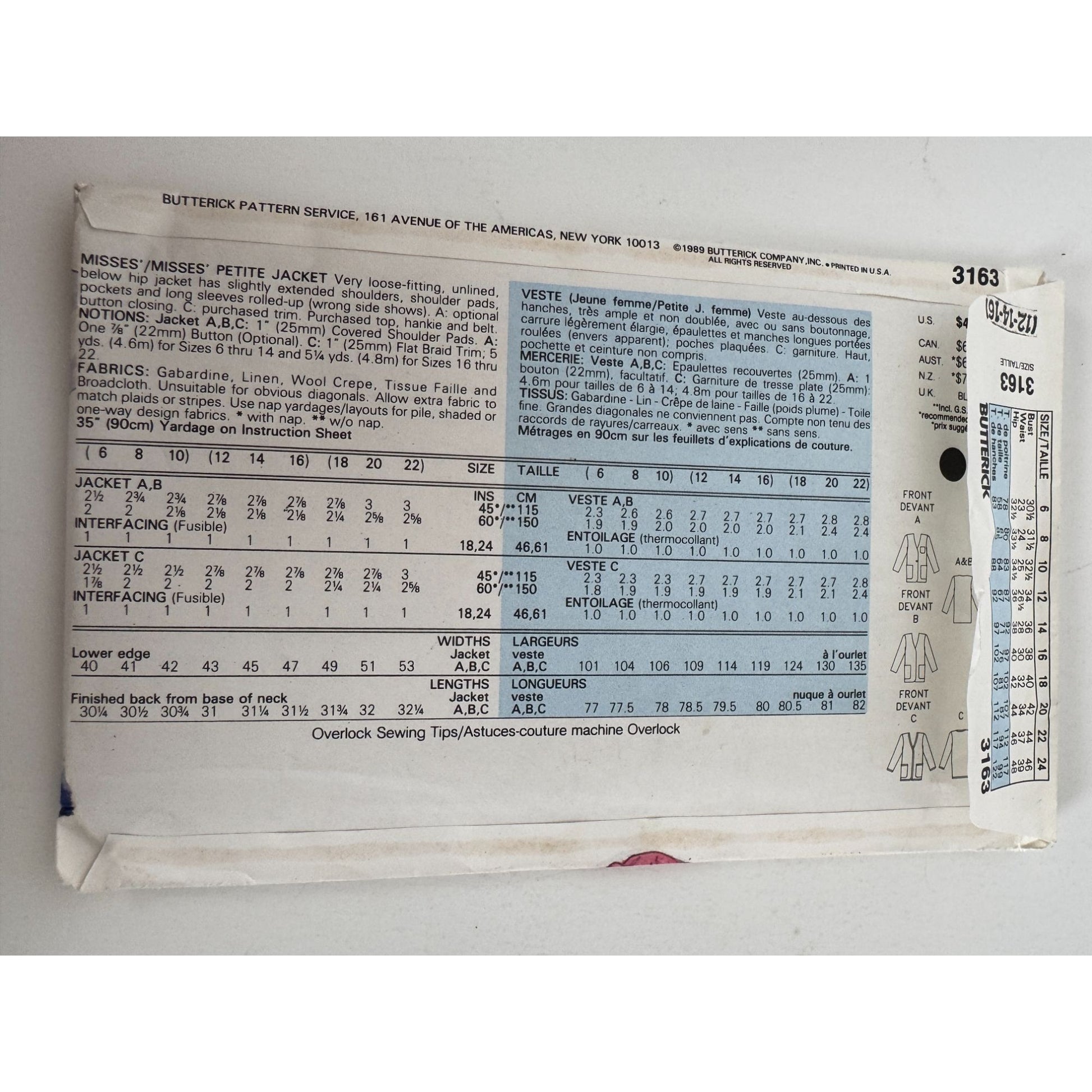 Butterick Sewing Pattern 3163: Misses' Jacket