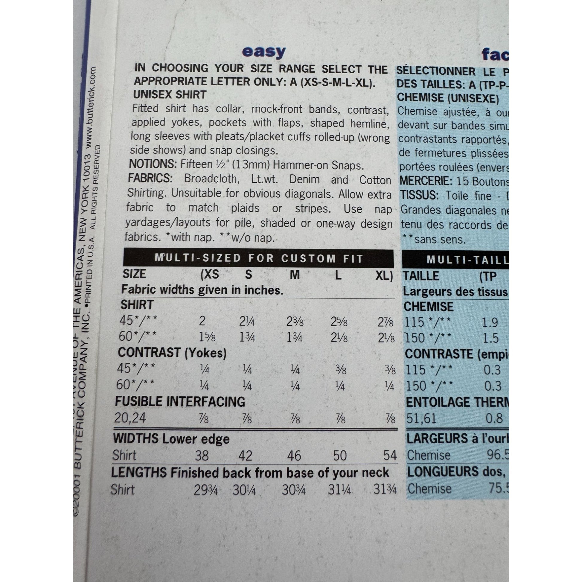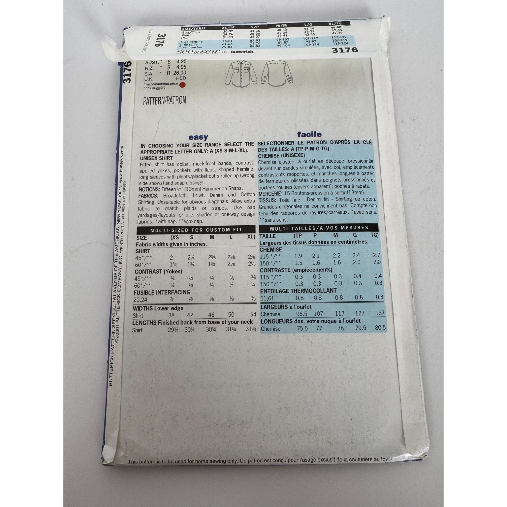 Butterick Sewing Pattern 3176 Western Shirts XS-XL Unisex Easy UC Country Cowboy