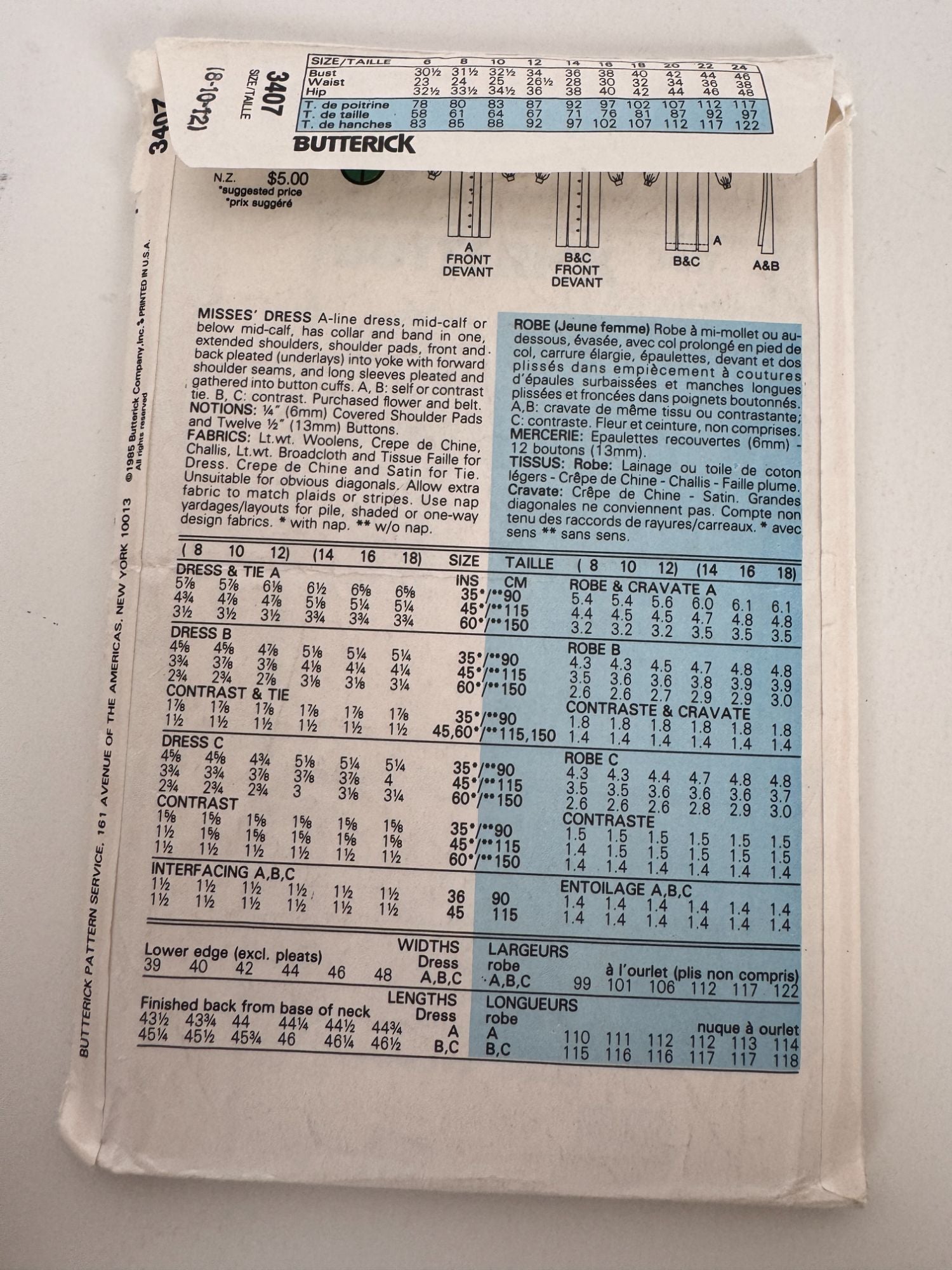 Factory folded, uncut pattern pieces & instructions. Envelope has sticker residue on front and edgewear.