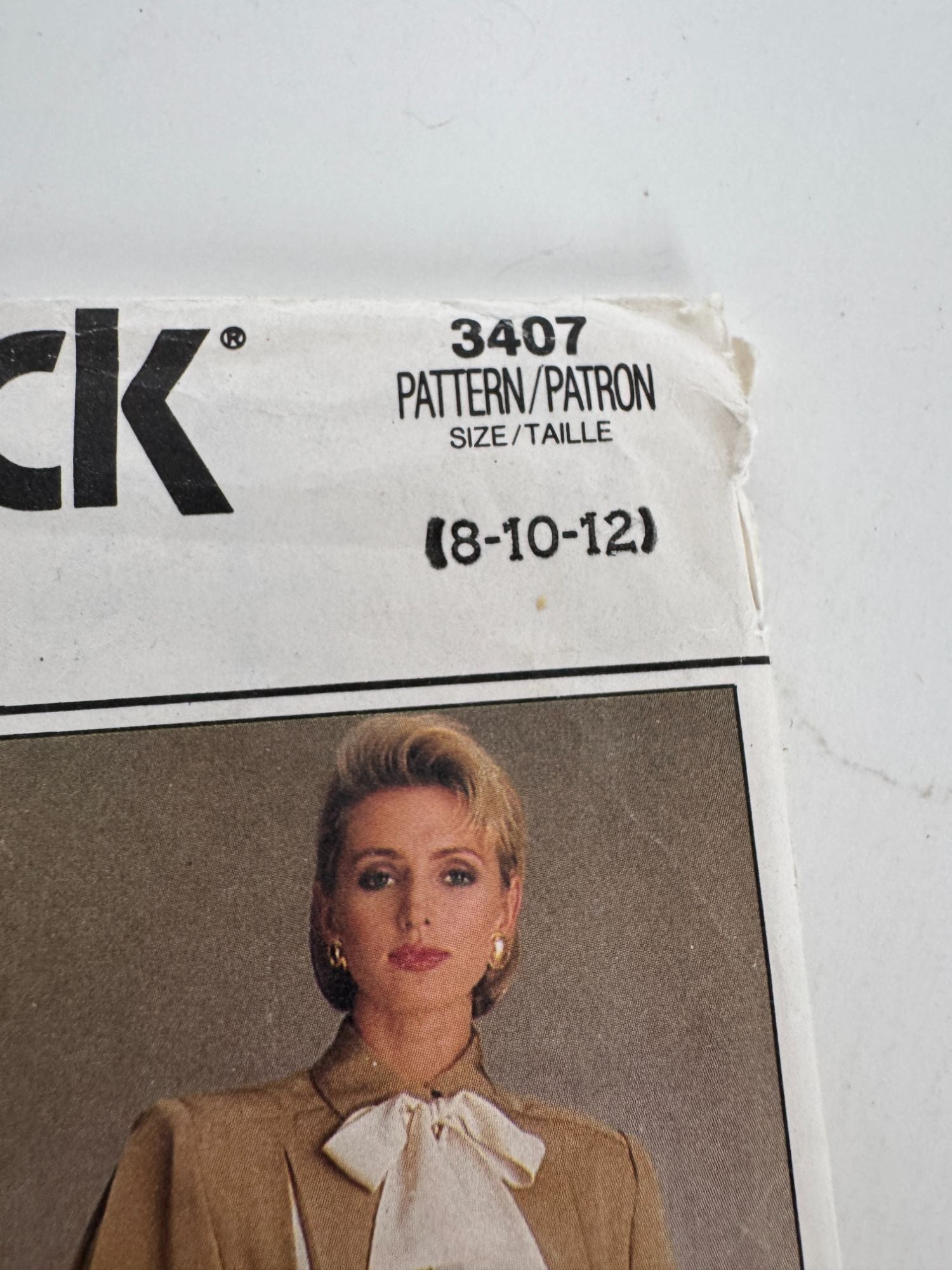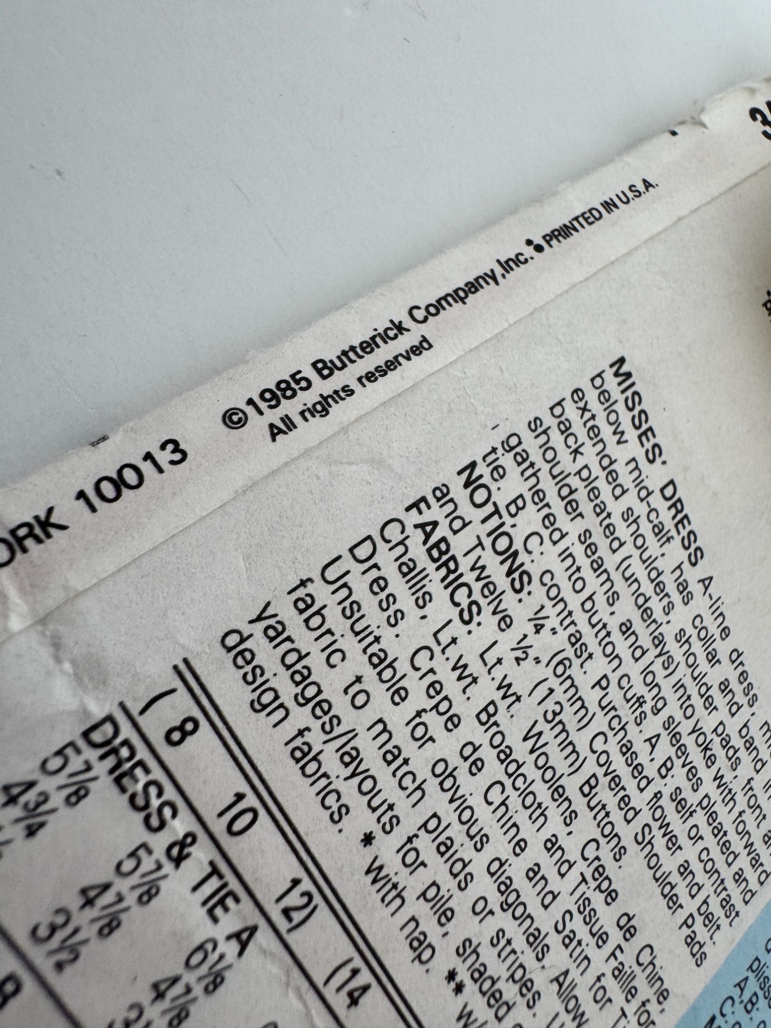 ⦁ Factory folded, uncut pattern pieces & instructions. Envelope has sticker residue on front and edgewear.