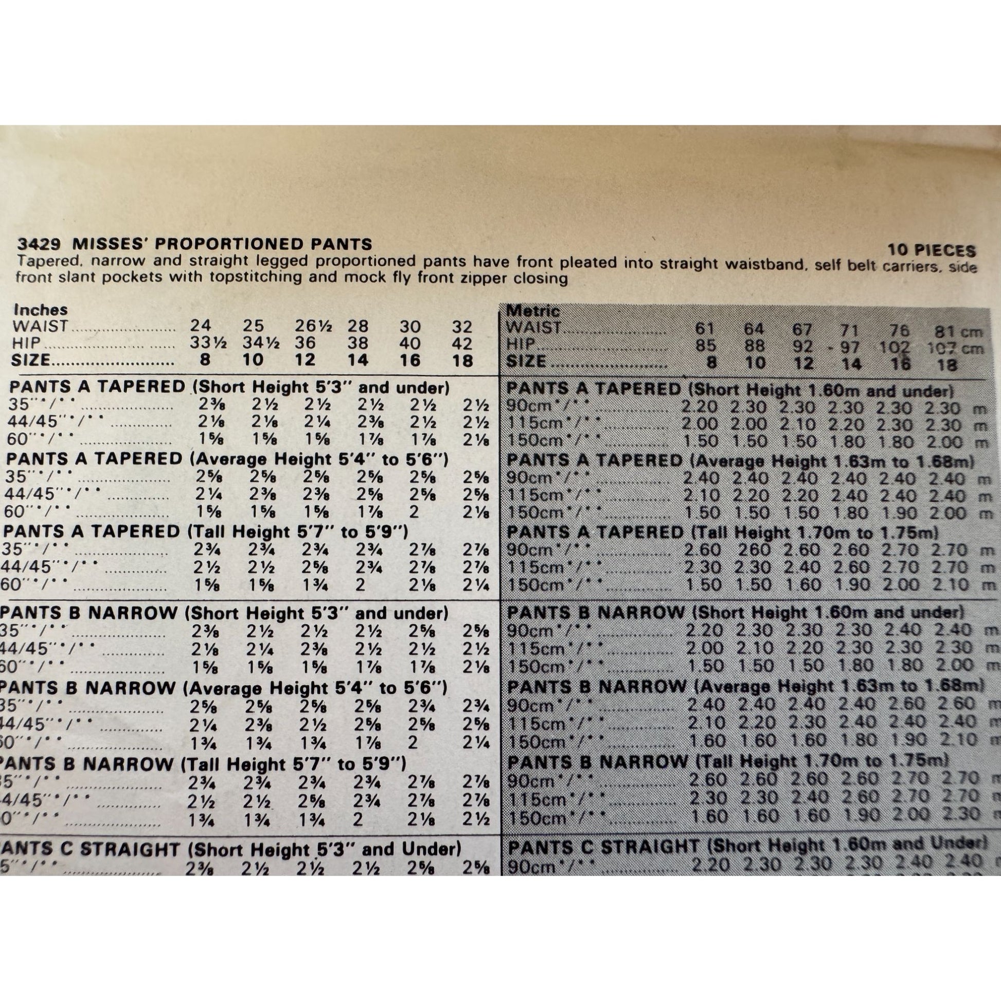 Butterick Sewing Pattern 3429: Misses' Proportioned Pants