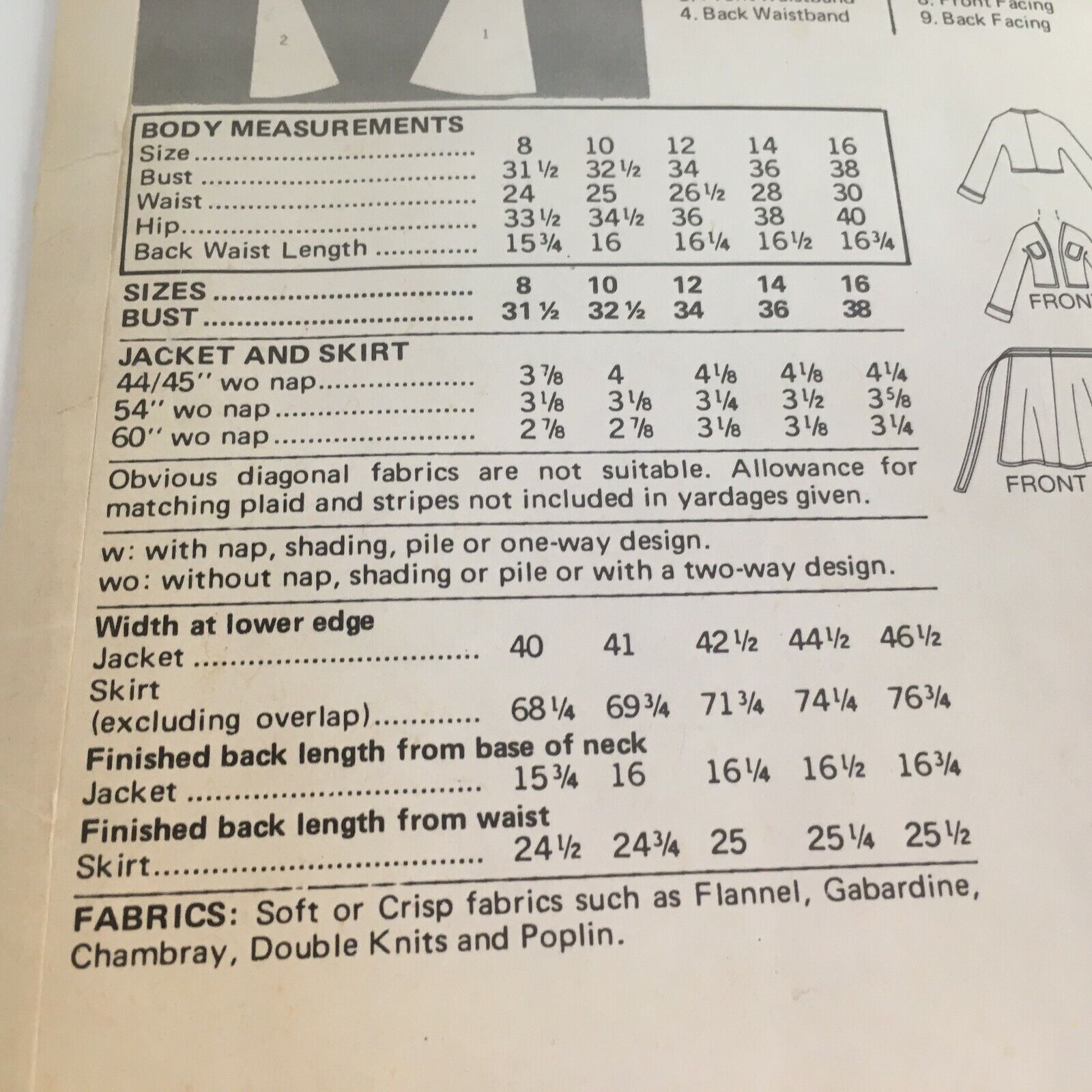 Butterick Sewing Pattern 3880 Wrap Skirt Blazer Collegiate 1970s Vintage 10 UC