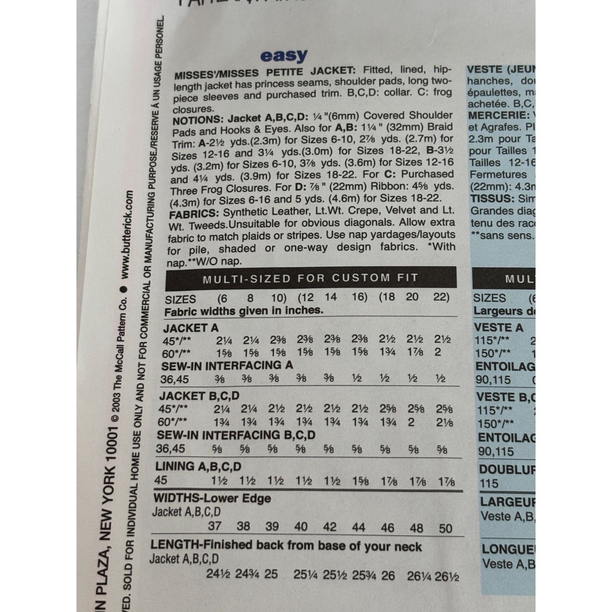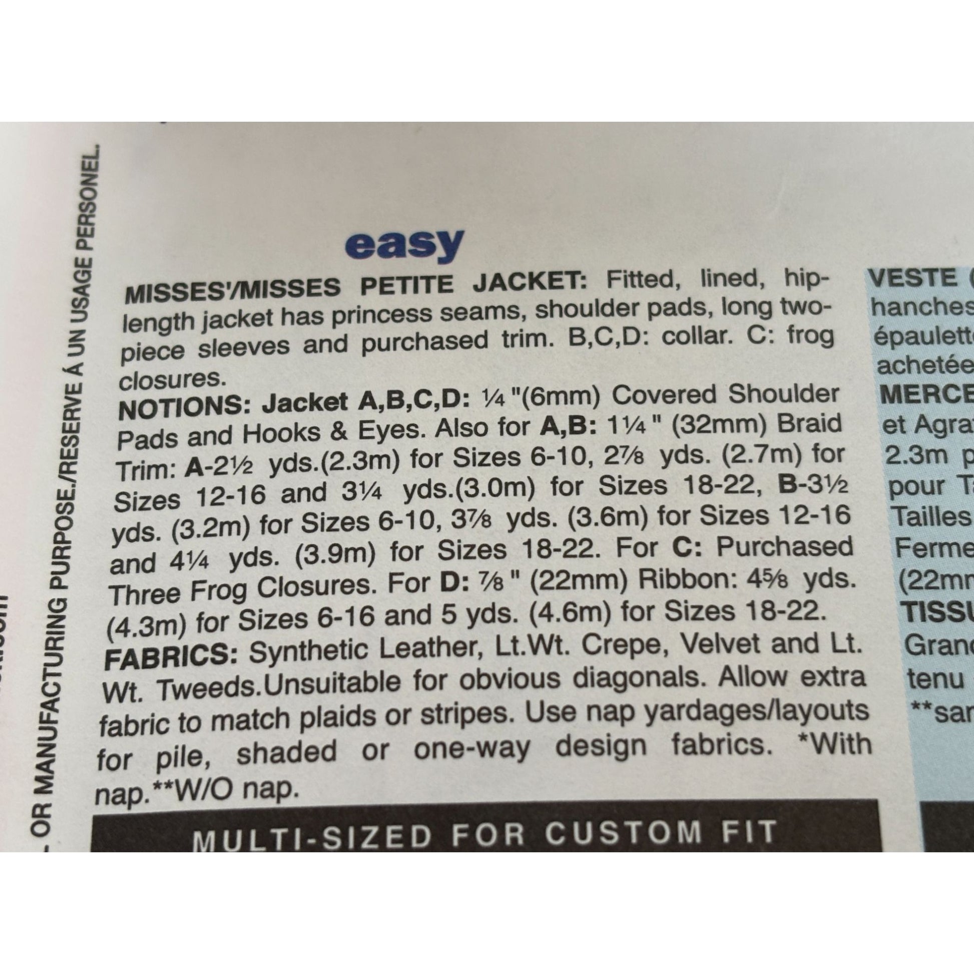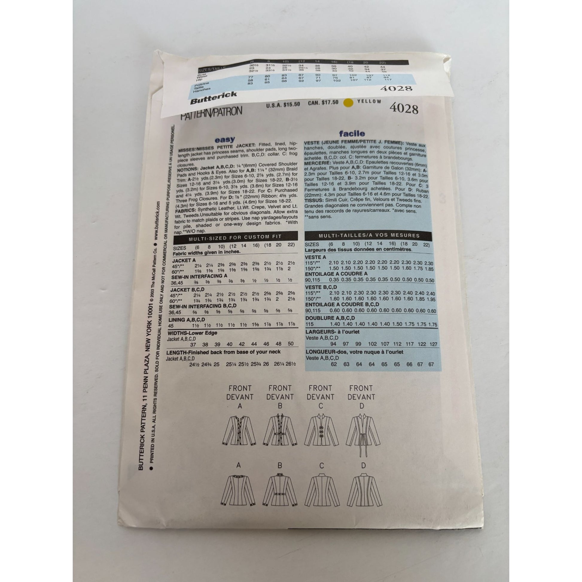 Butterick Sewing Pattern 4028: Misses' Jacket