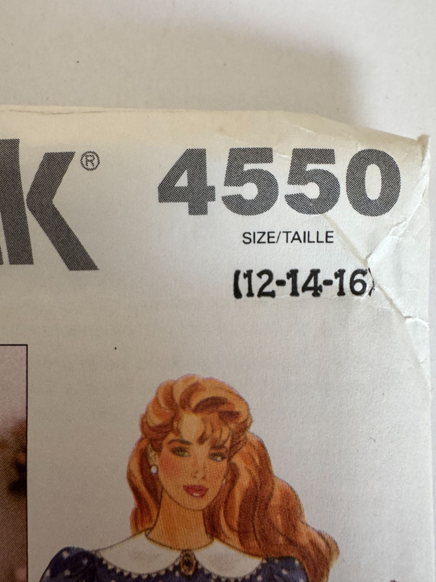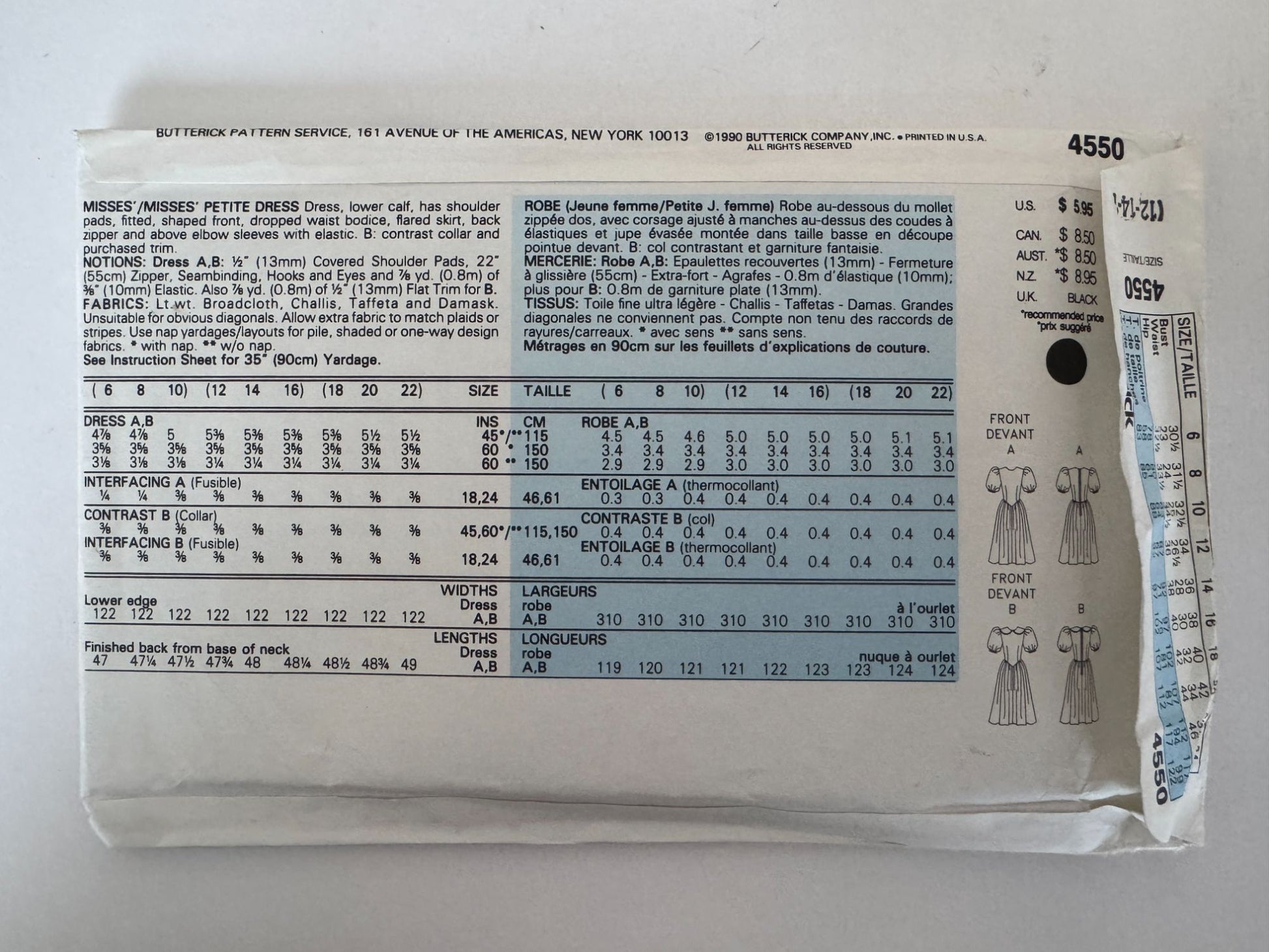 Butterick Sewing Pattern 4550 Romantic Dress Easy Dropped Waist Bodice 12 14 16