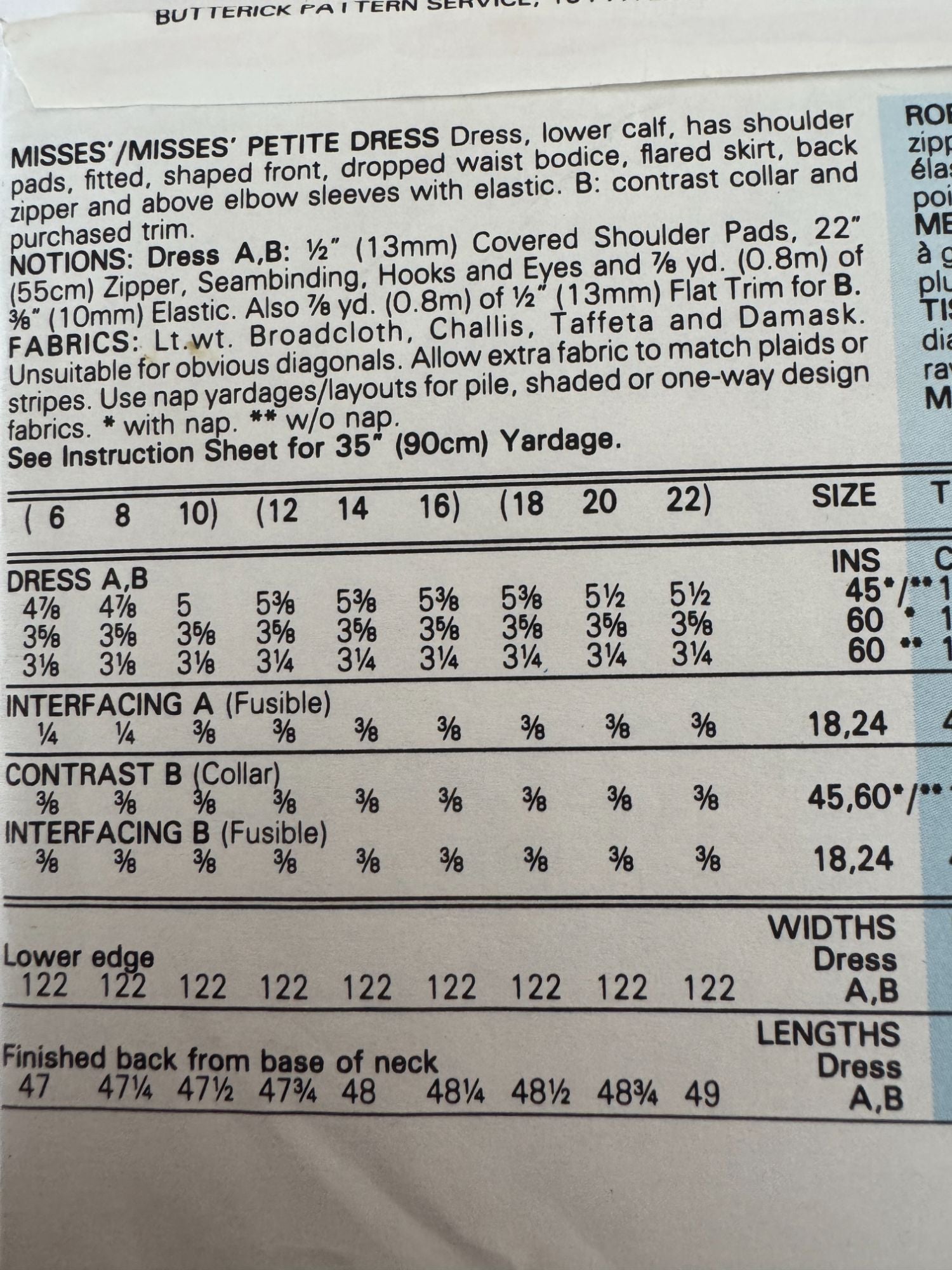 A beautiful early-1990s Butterick pattern with timeless fit-and-flare charm—ideal for sewists who love feminine vintage silhouettes.