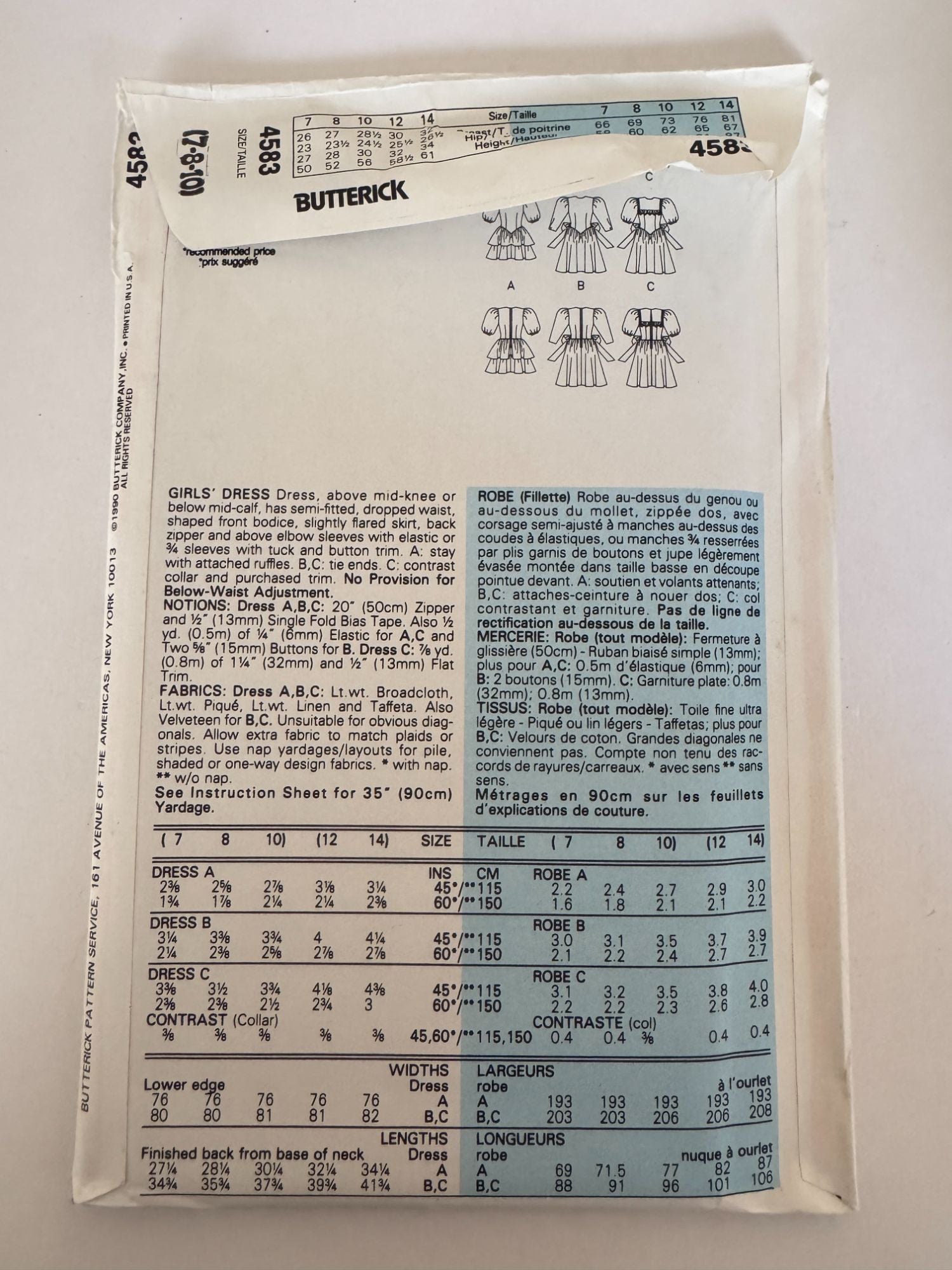 A sweet and versatile 1990 Butterick pattern offering timeless girls’ dress styles with charming vintage details.