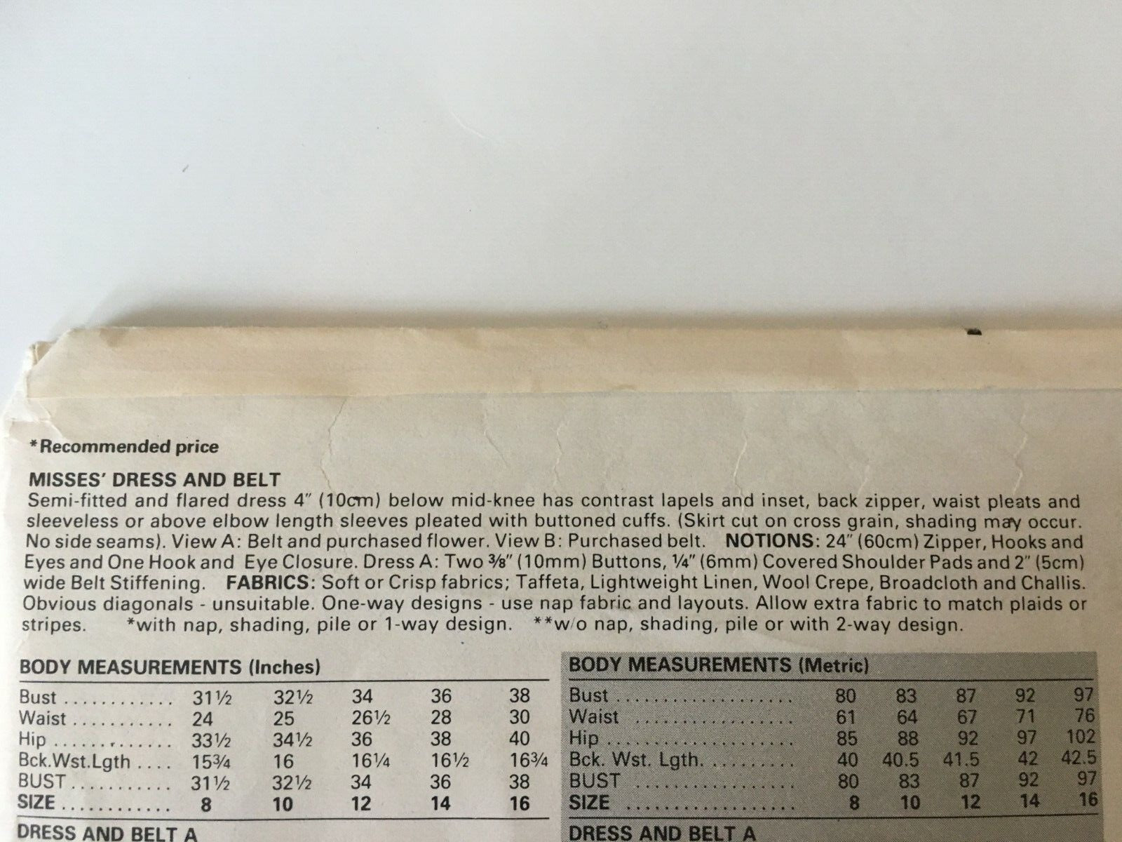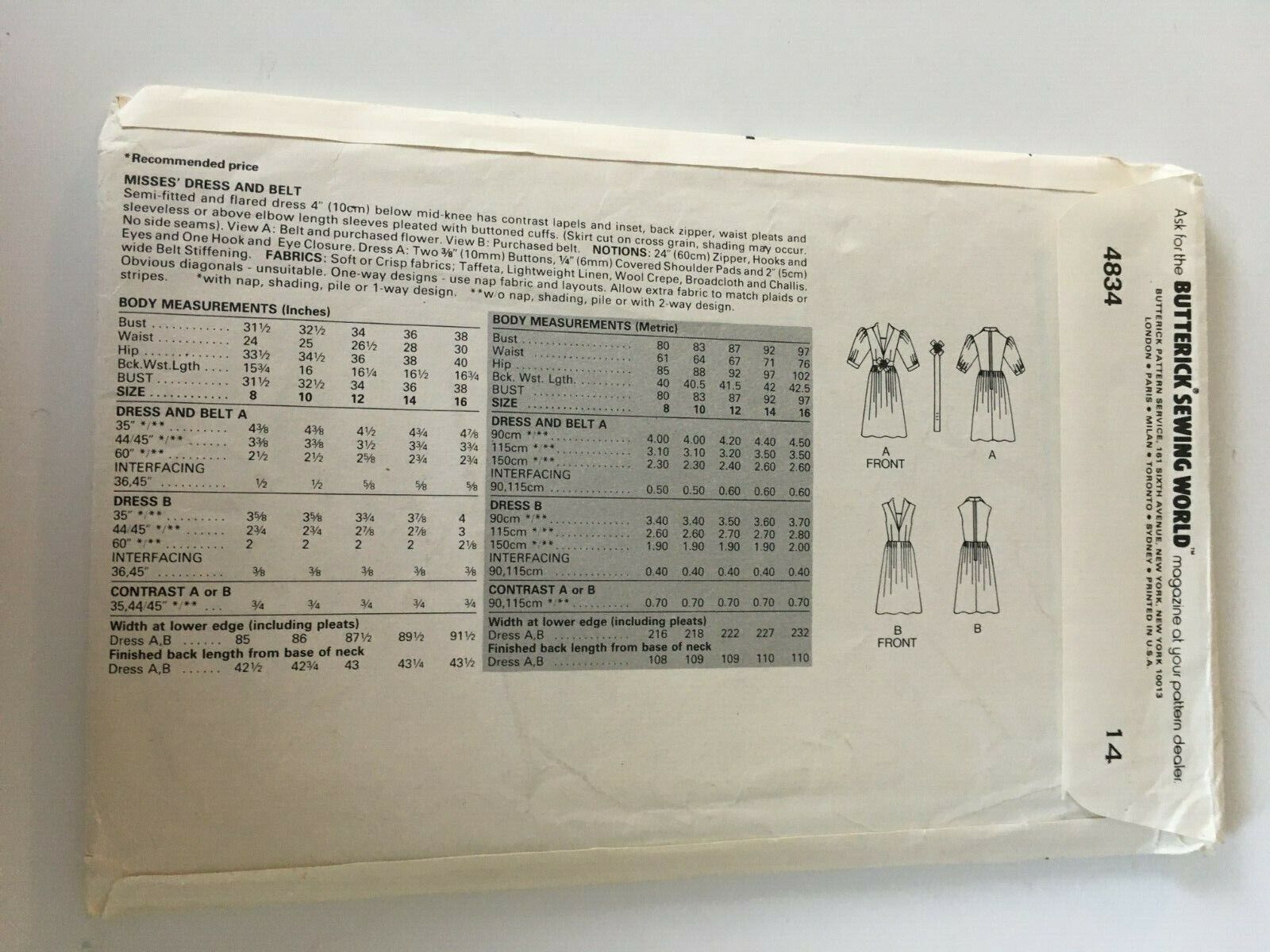 Butterick Sewing Pattern 4834: Misses' Dress and Belt