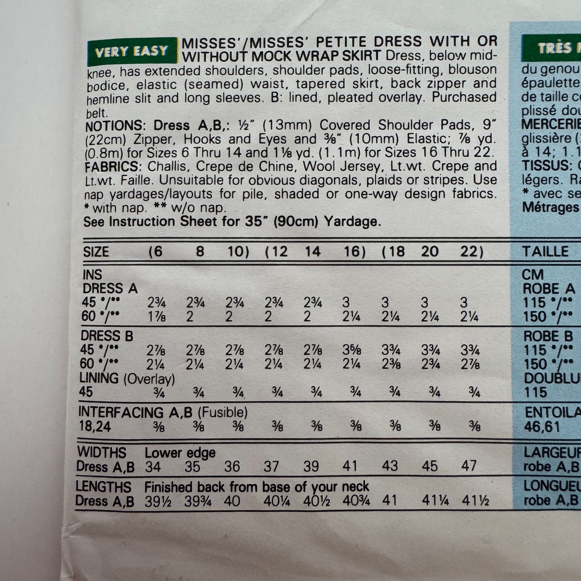 • Sewing Rating: Very Easy