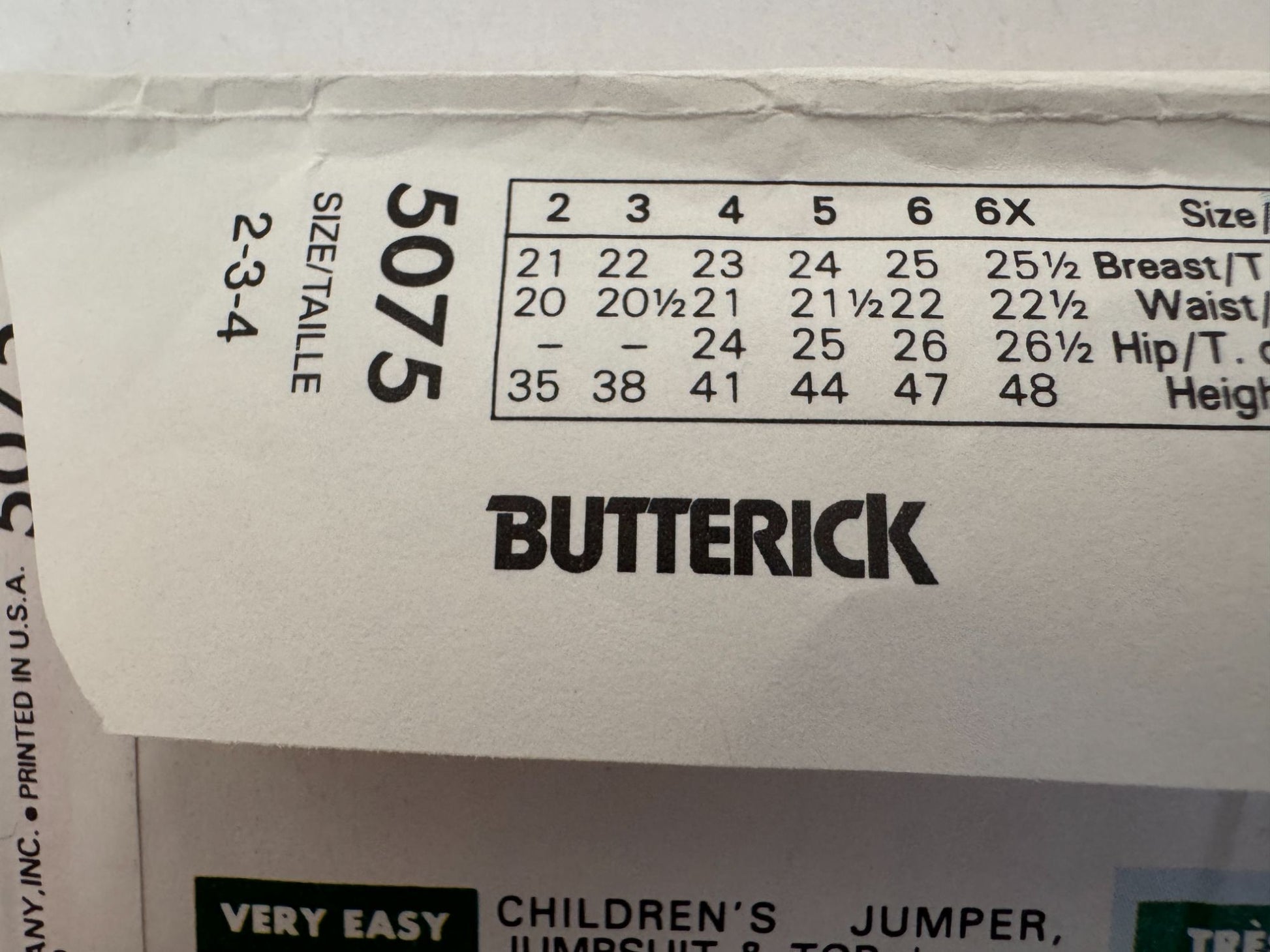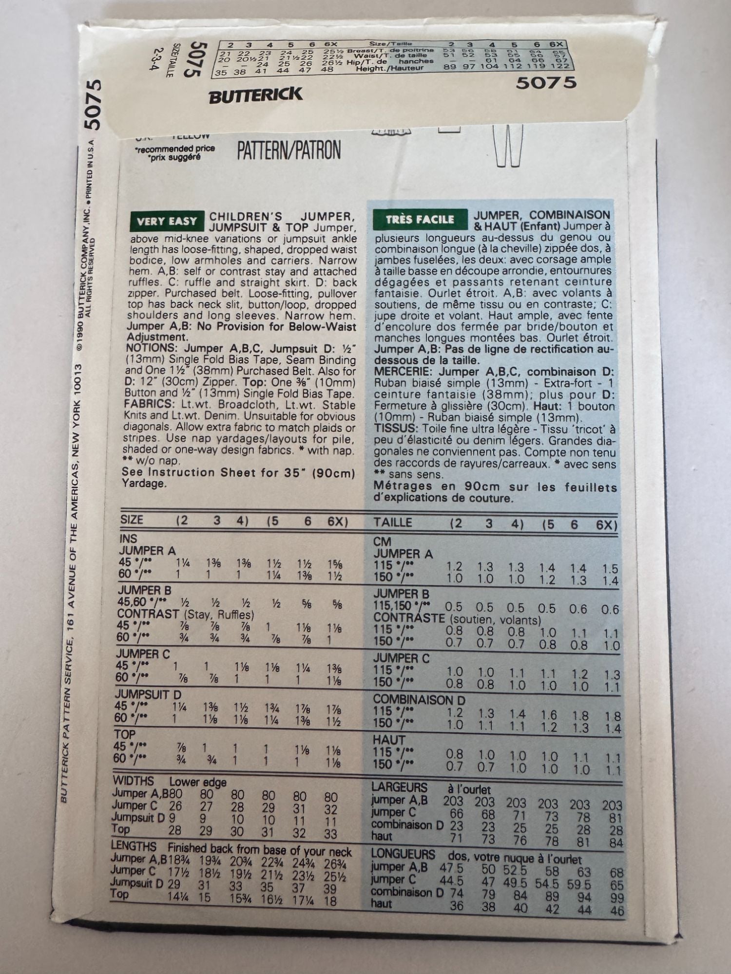 Butterick Sewing Pattern 5075: Children's Jumper, Jumpsuit and Top