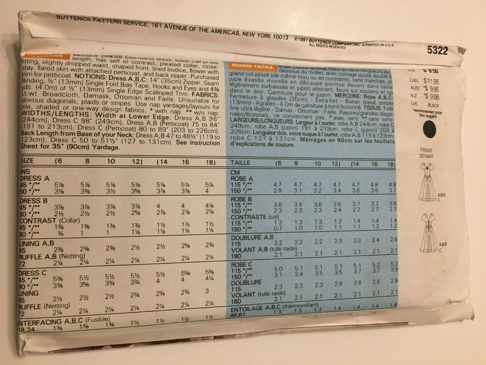 Butterick Sewing Pattern 5322 Fit and Flare Dress Party Formal 1990s UC 14 16 18