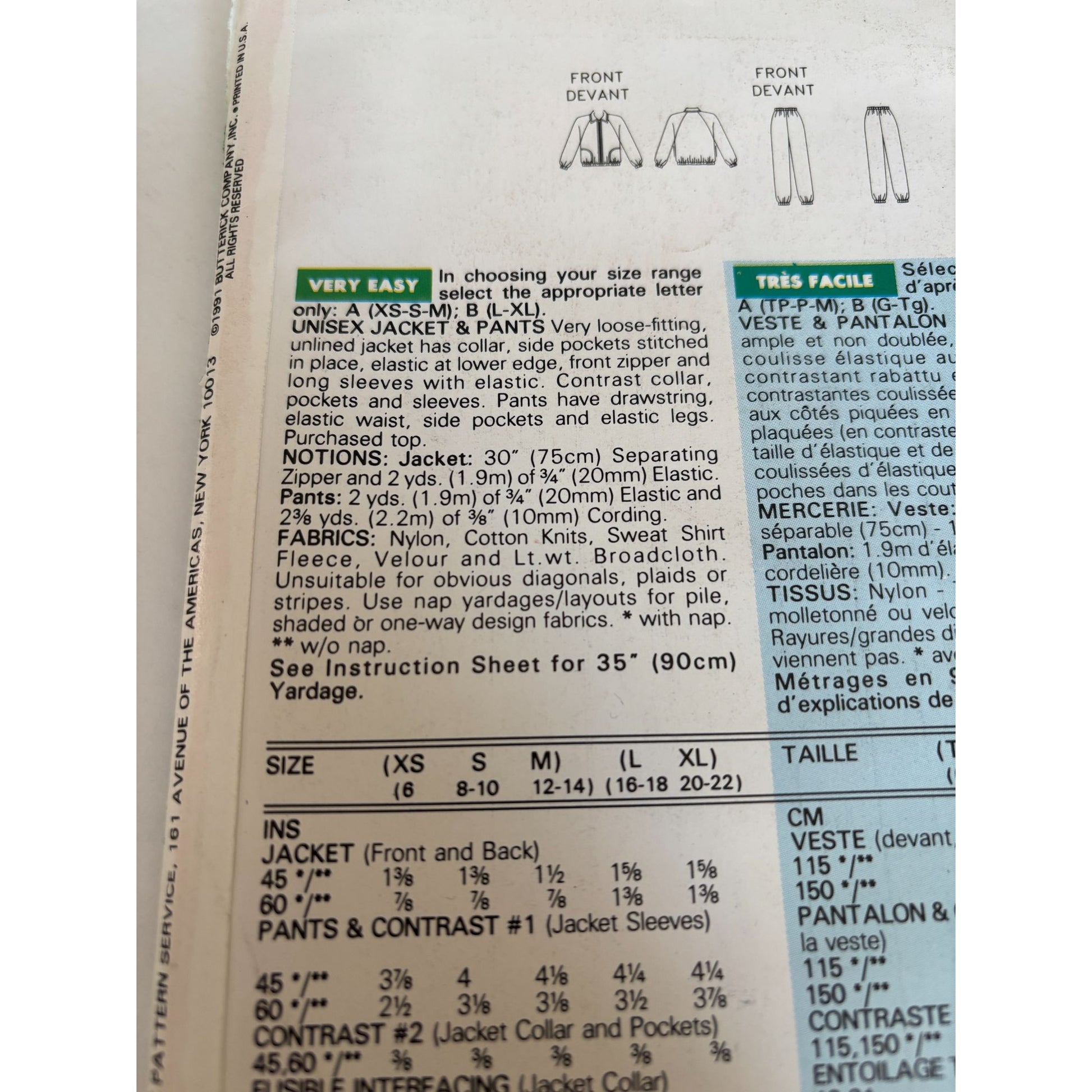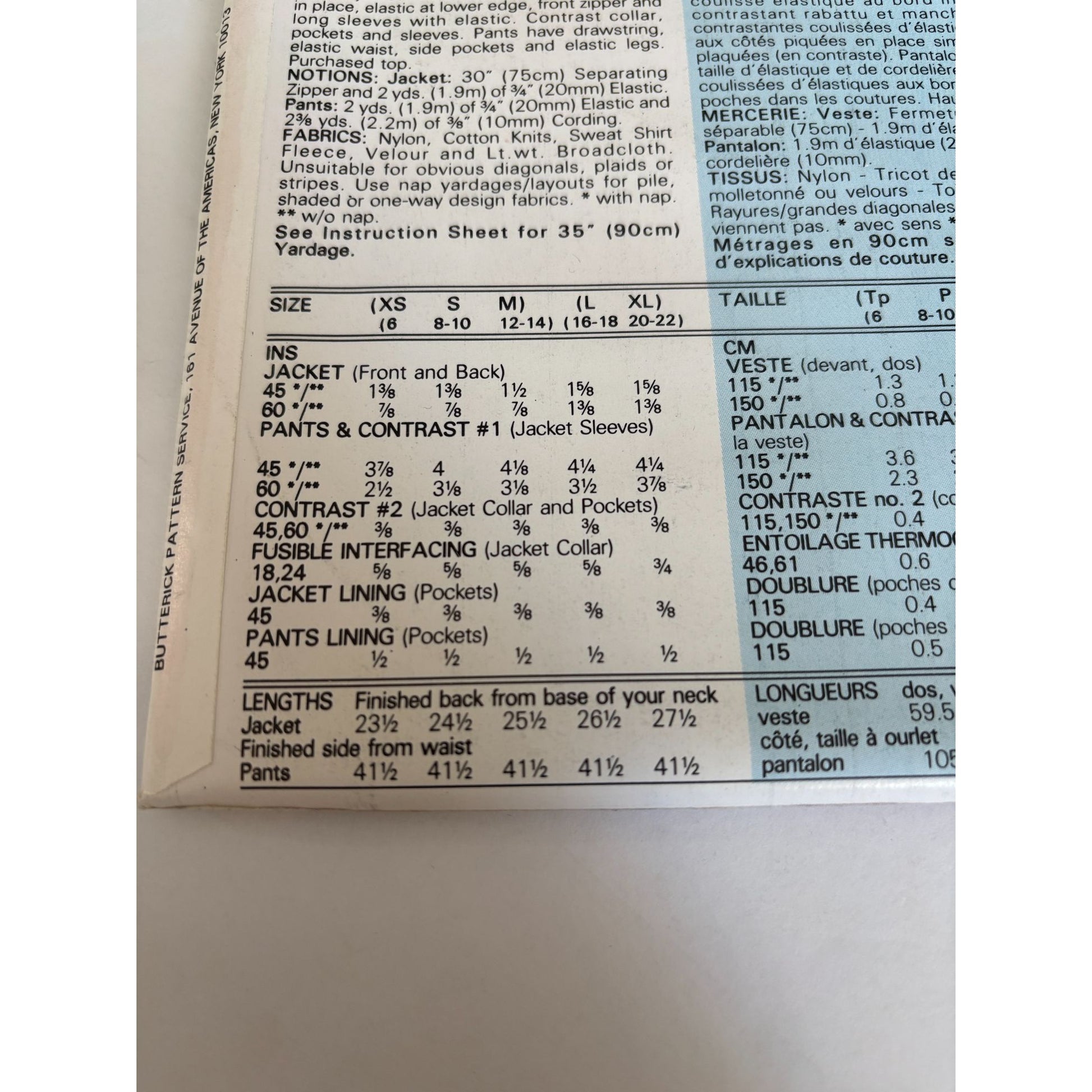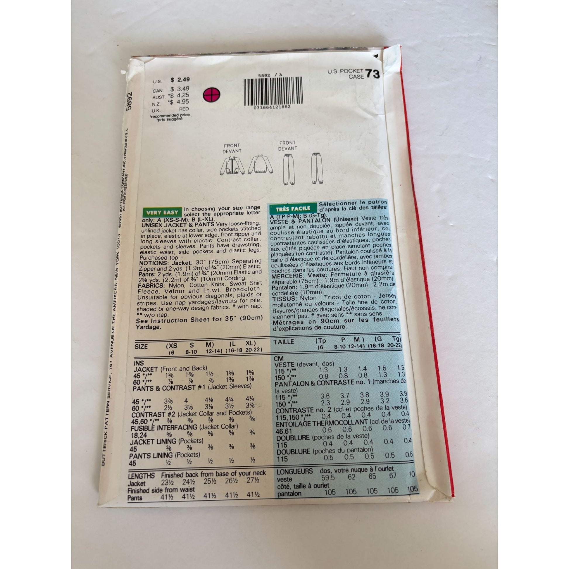 Butterick Sewing Pattern 5892 Athletic Jacket Pants Uncut Workout Casual 6-14 UC