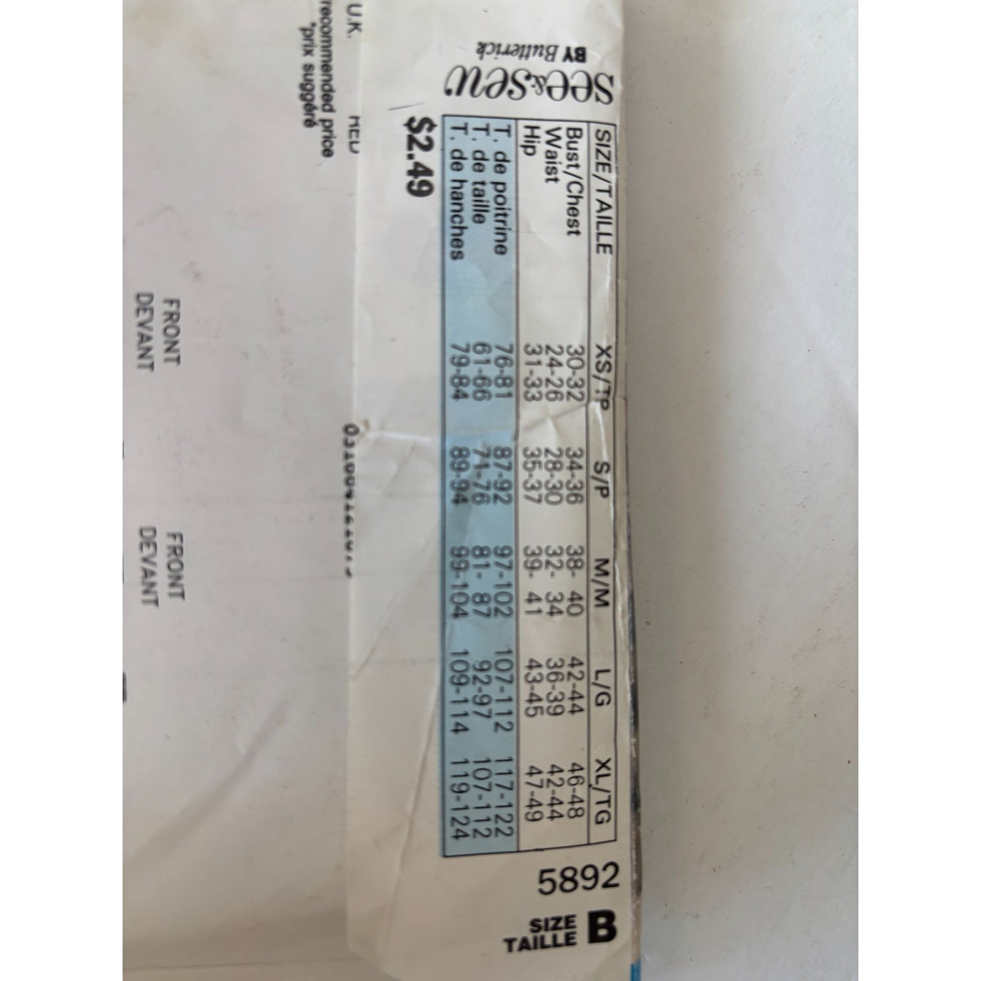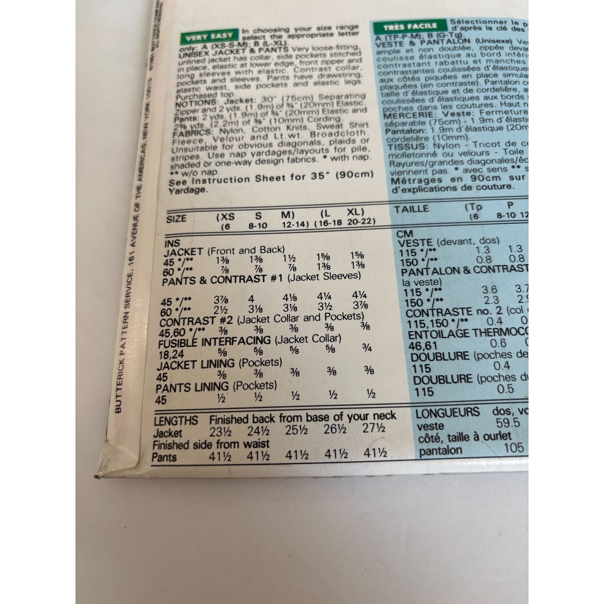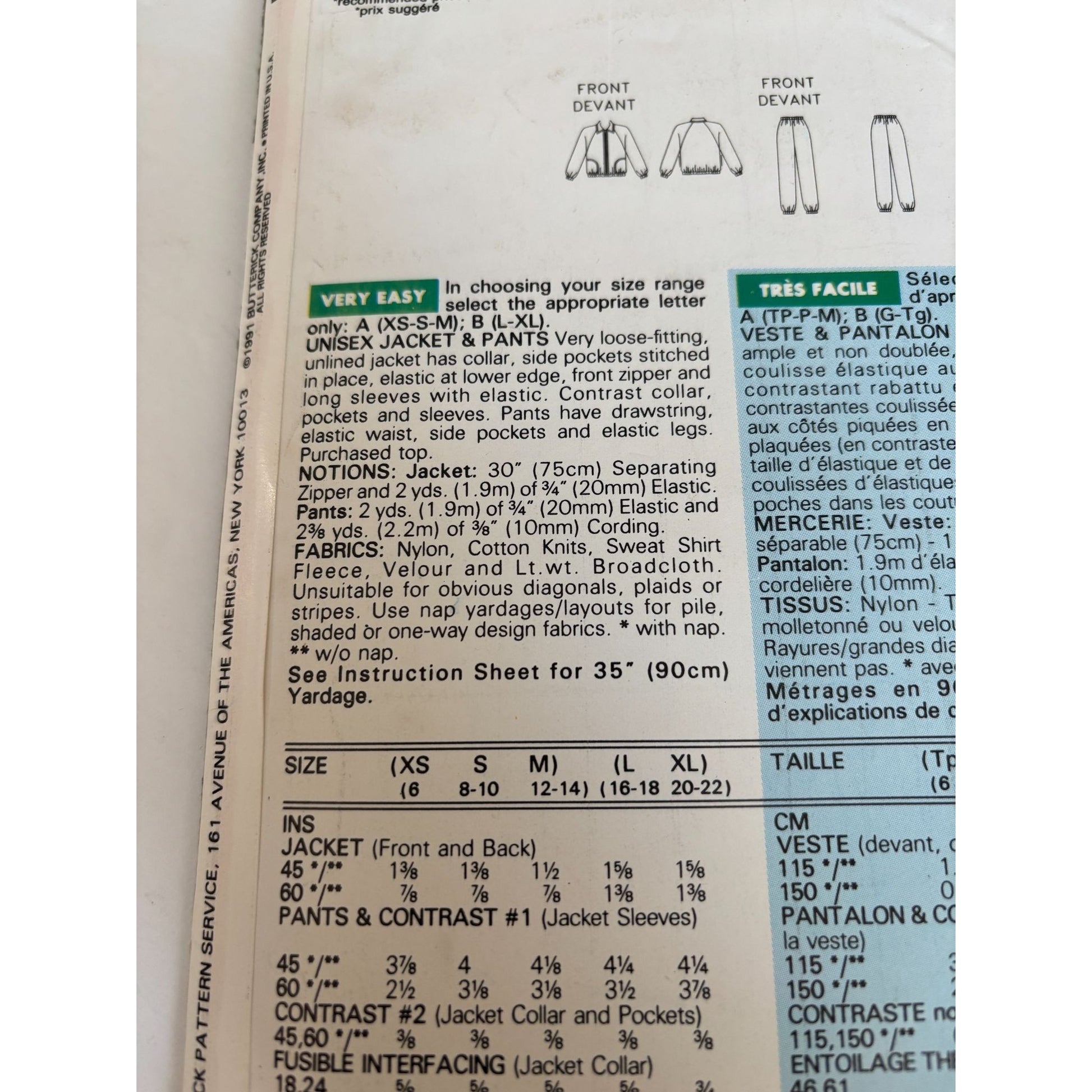 Butterick Sewing Pattern 5892 Athletic Jacket Pants Workout Casual L XL 16 22 UC