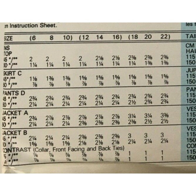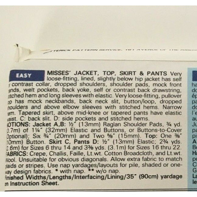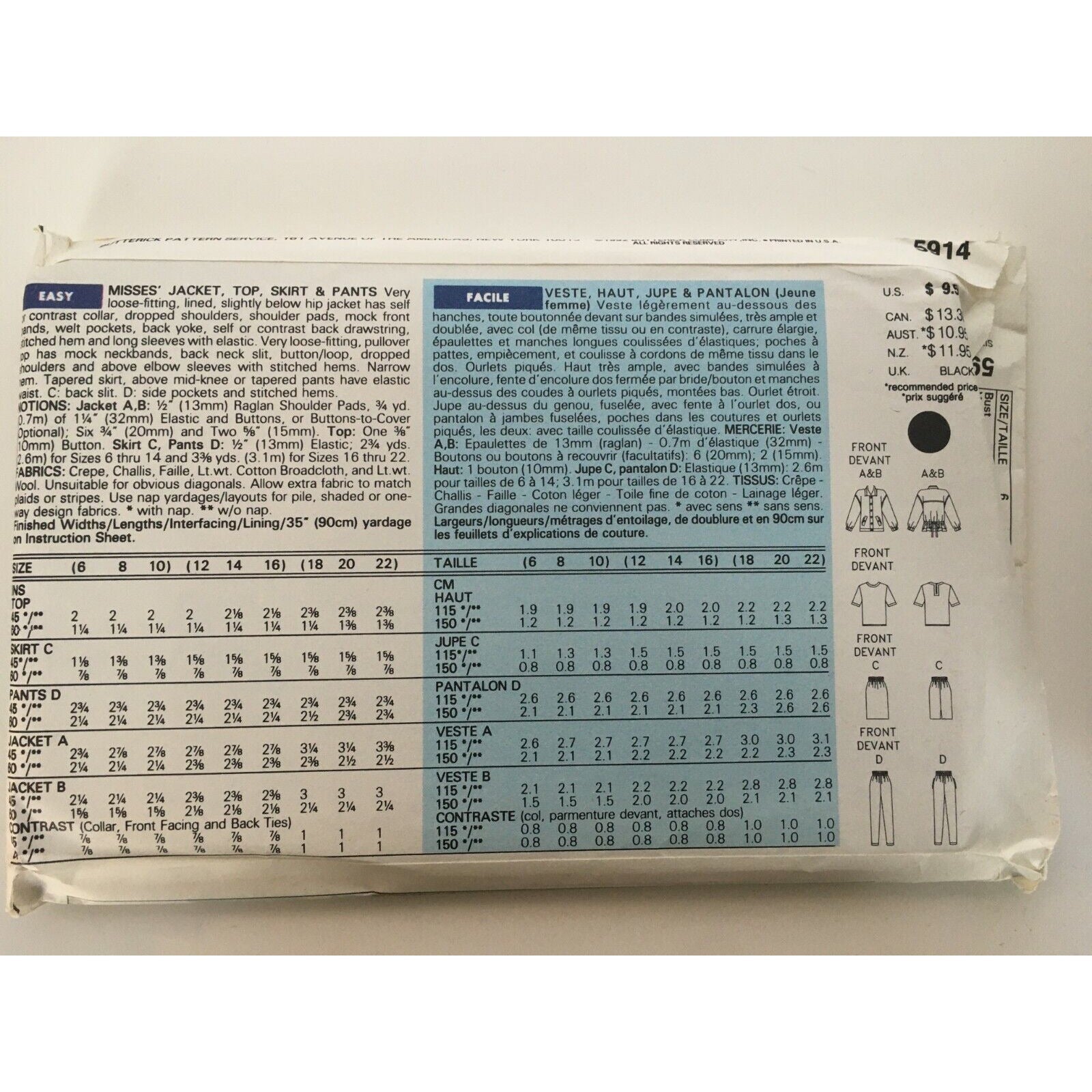 Butterick Sewing Pattern 5914 Work Suit Top Jacket Skirt Pants Sporty UC 6 8 10