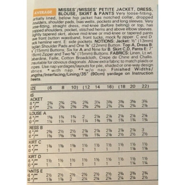 Misses Jacket, Dress, Blouse, Skirt and Pants