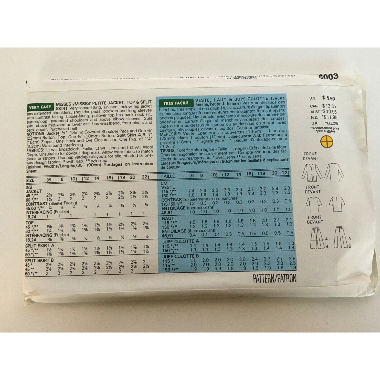 Butterick Sewing Pattern 6003 Jacket Top Split Skirt Easy Summer UC 12 14 16