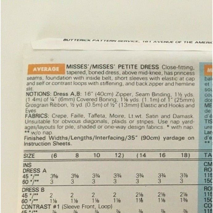 Butterick Sewing Pattern 6057 Cocktail Dress Prom Off Shoulder Tapered 6 8 10 12