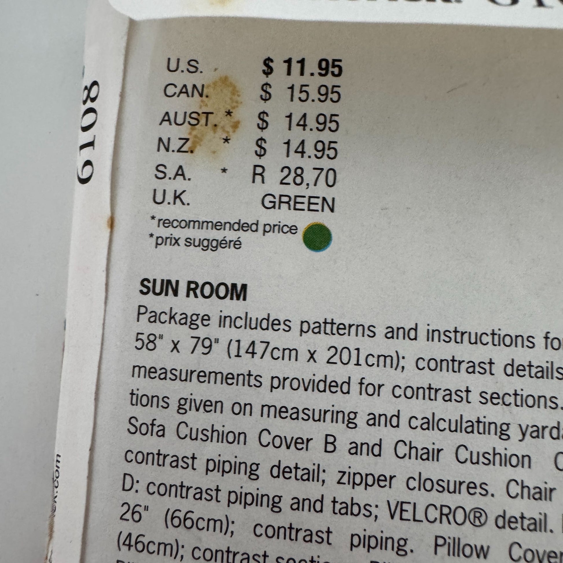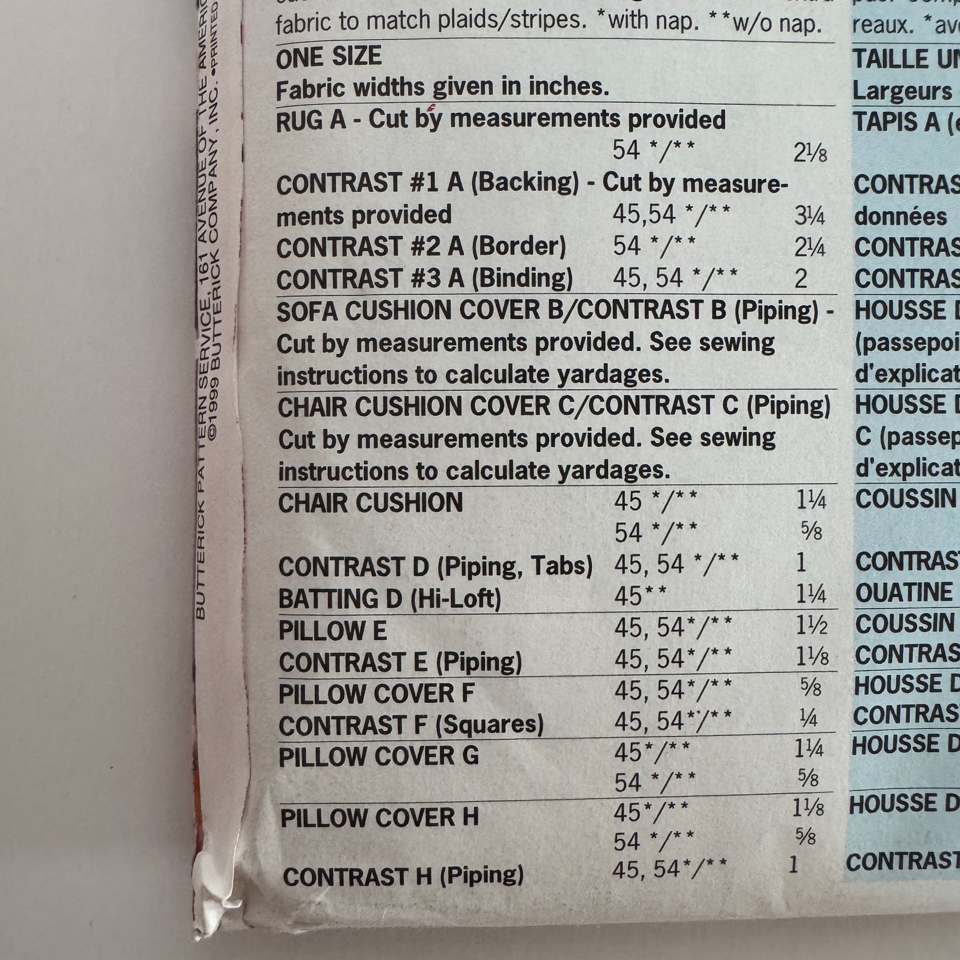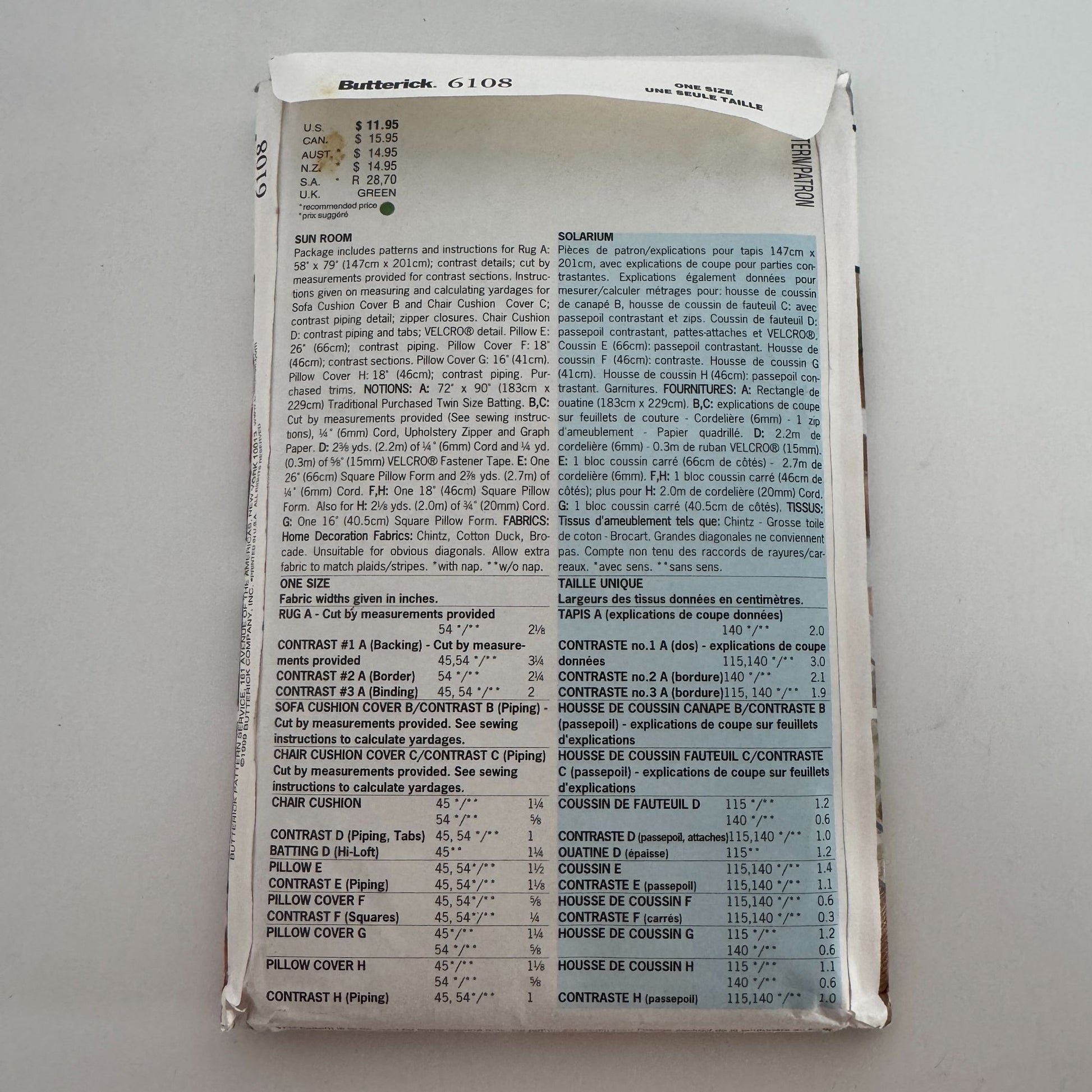 Butterick Sewing Pattern 6108 Waverly Sun Room Sofa Cushion Pillow Chair Cover