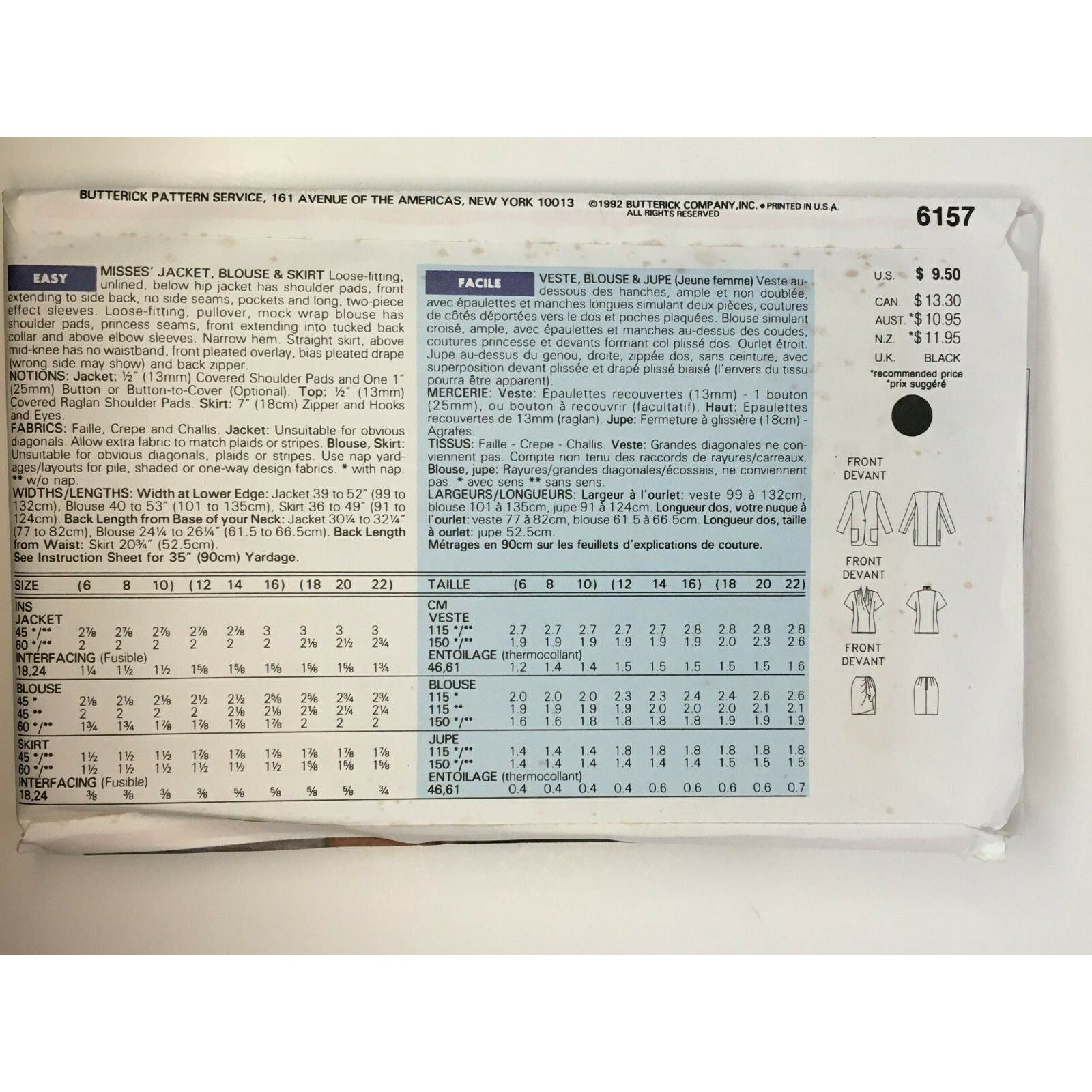 Butterick Sewing Pattern 6157 Career Skirt Suit Jacket Blouse Work Easy 6 8 10