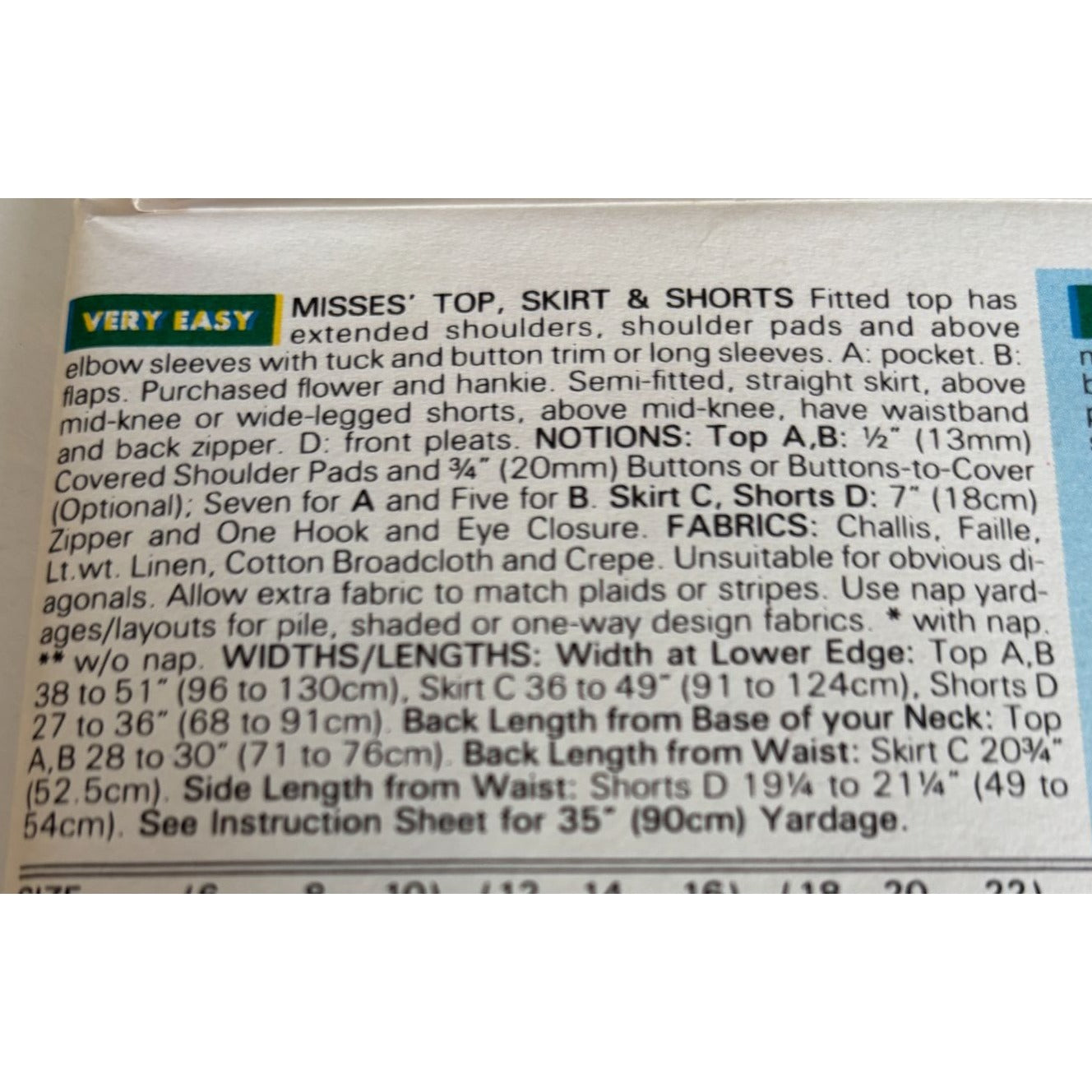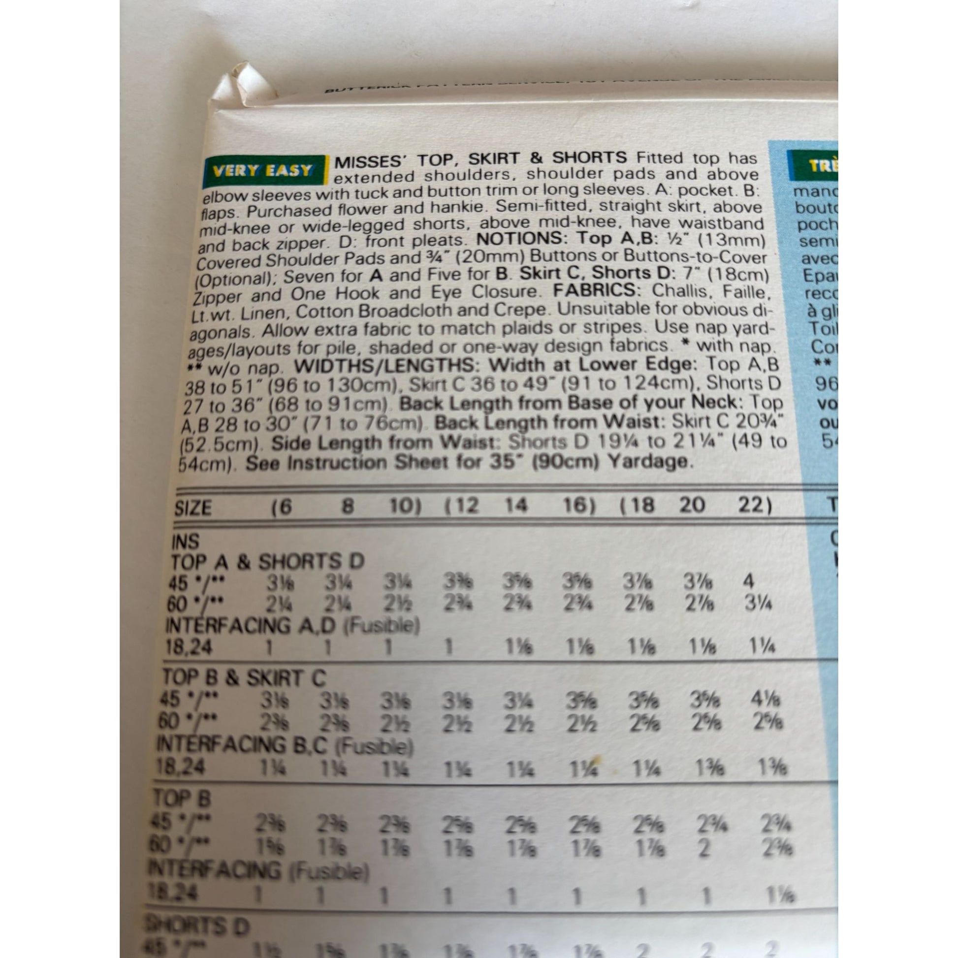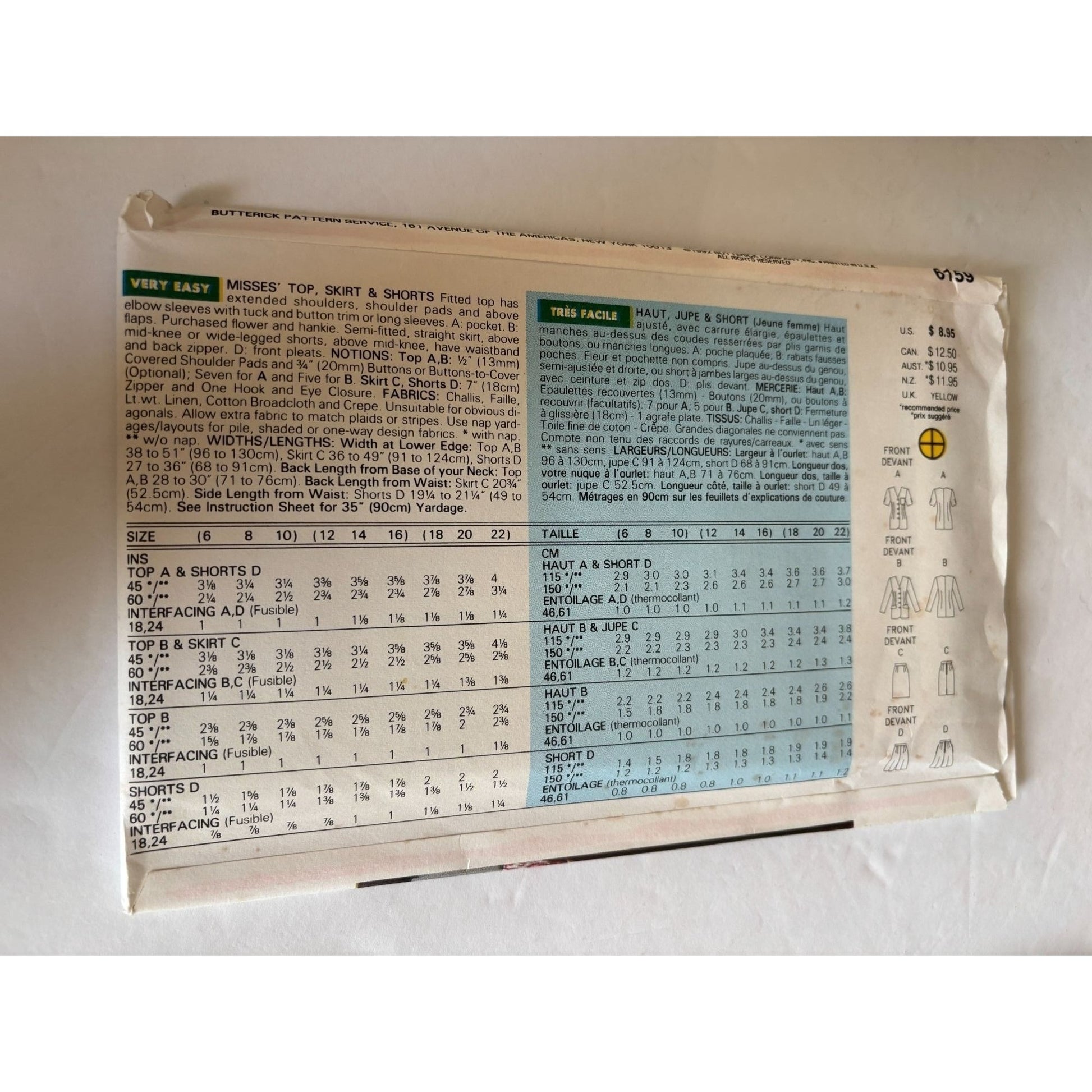 Butterick Sewing Pattern 6159 Top Skirt Shorts Career Suit Work Easy UC 18 20 22
