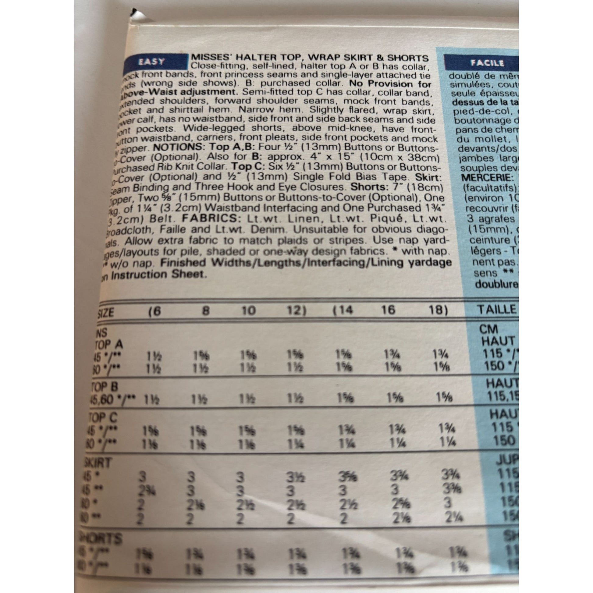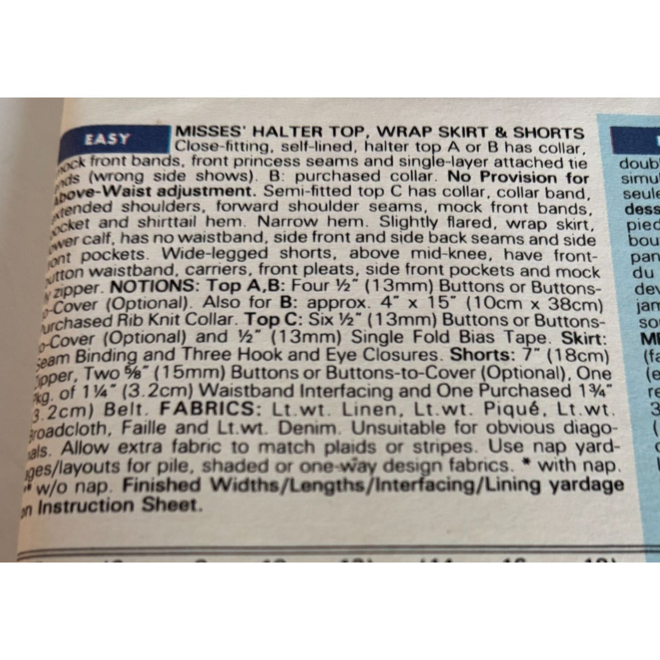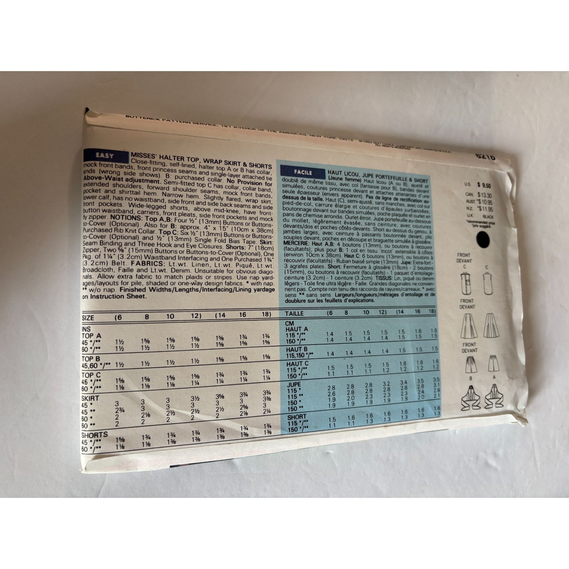 Butterick Sewing Pattern 6216 Halter Top Wrap Skirt Shorts Summer 6 8 10 12 UC