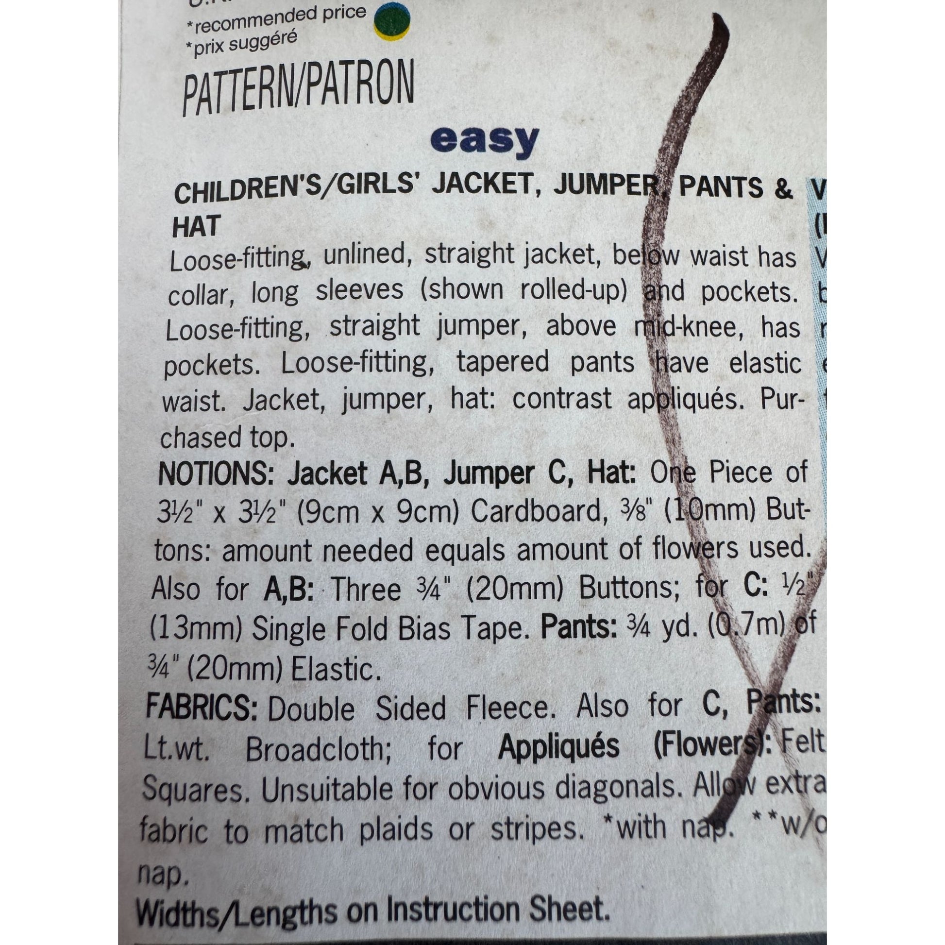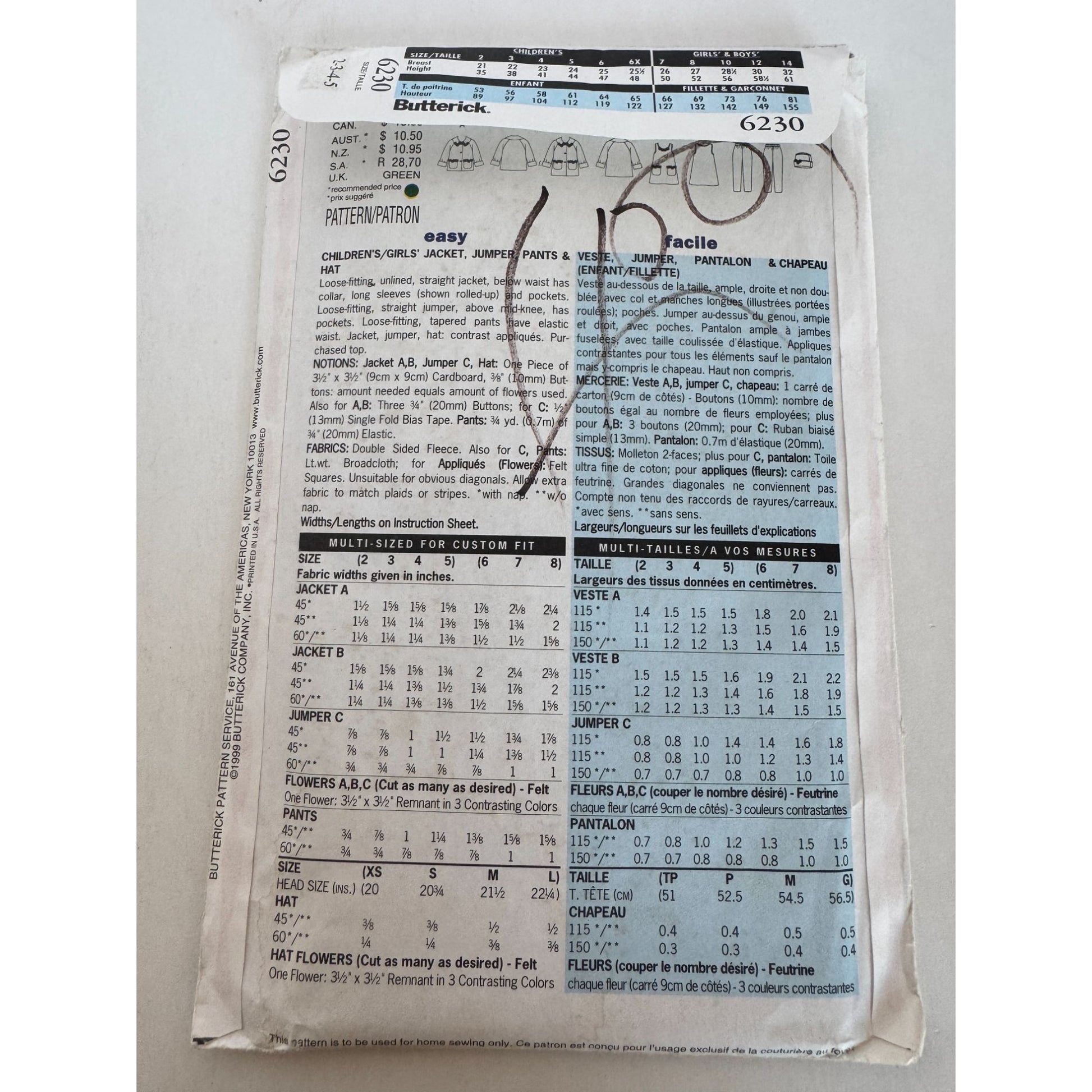 Butterick Sewing Pattern 6230: Girls' Jacket, Jumper, Pants and Hat