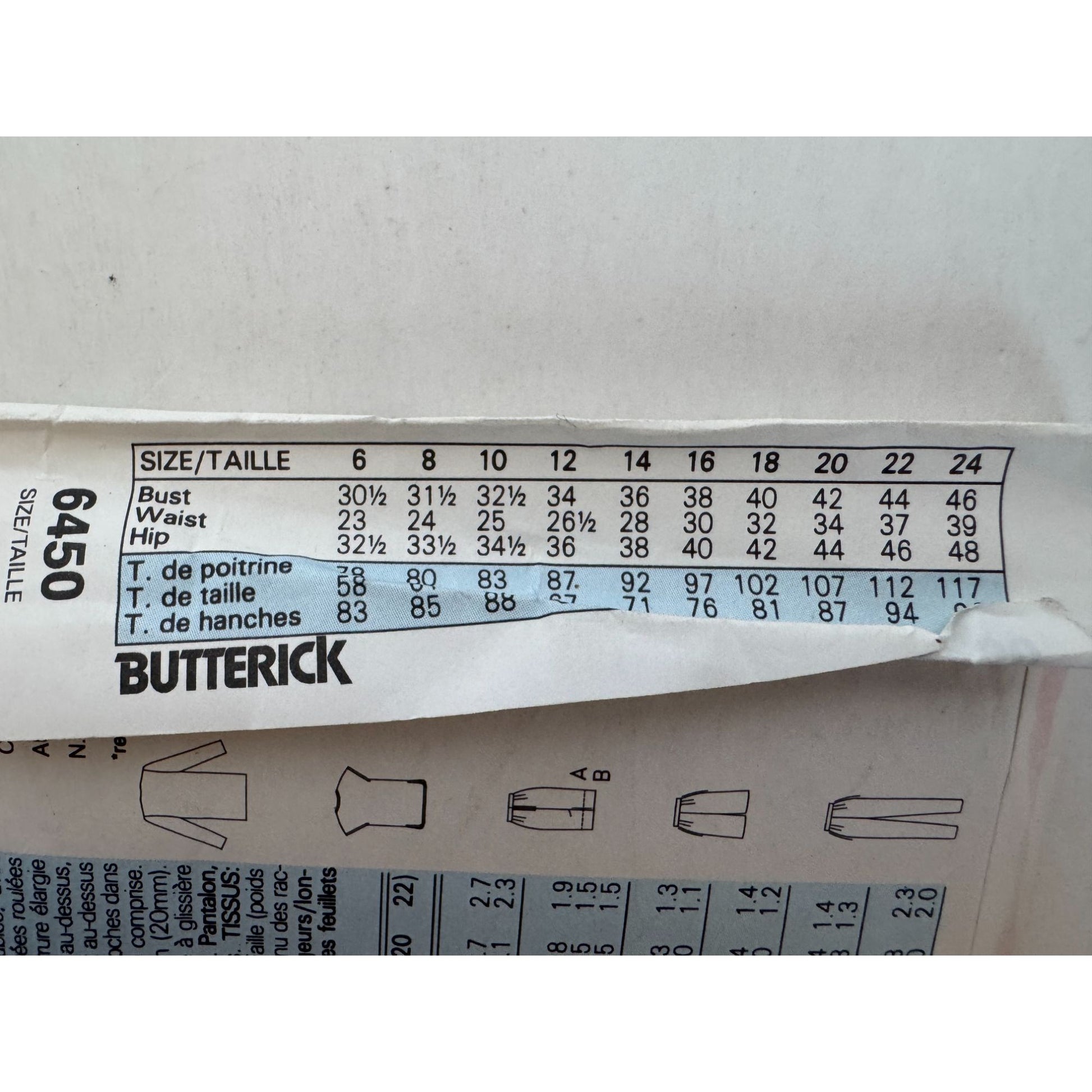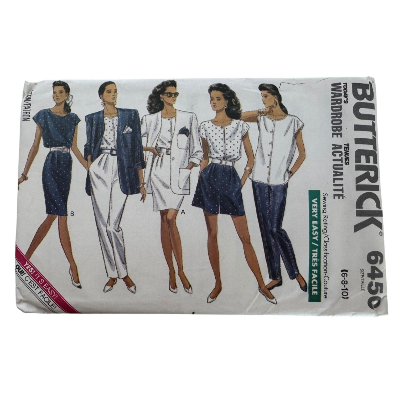 Butterick Sewing Pattern 6450 Easy Wardrobe Dress Shirt Pants Shorts 6-10 1980s