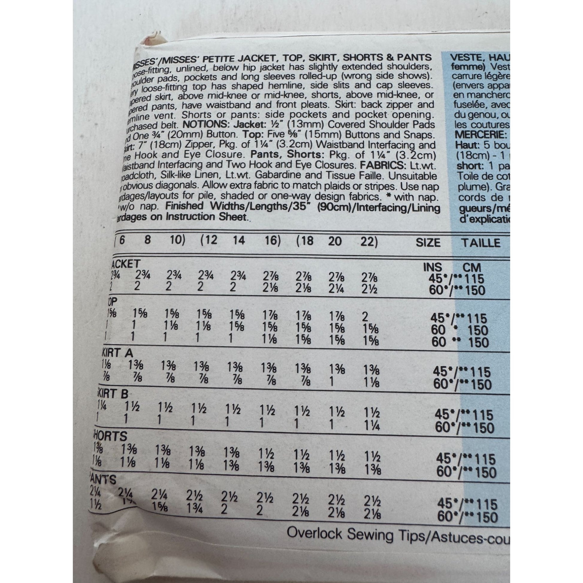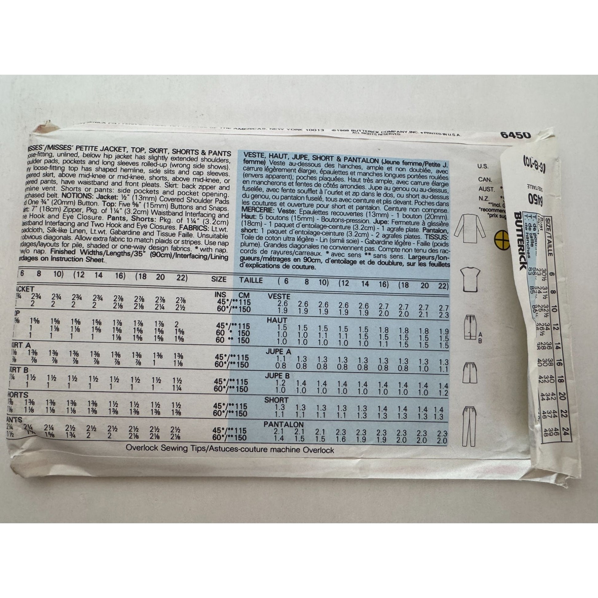 Butterick Sewing Pattern 6450: Misses' Jacket, Top, Skirt, Shorts and Pants