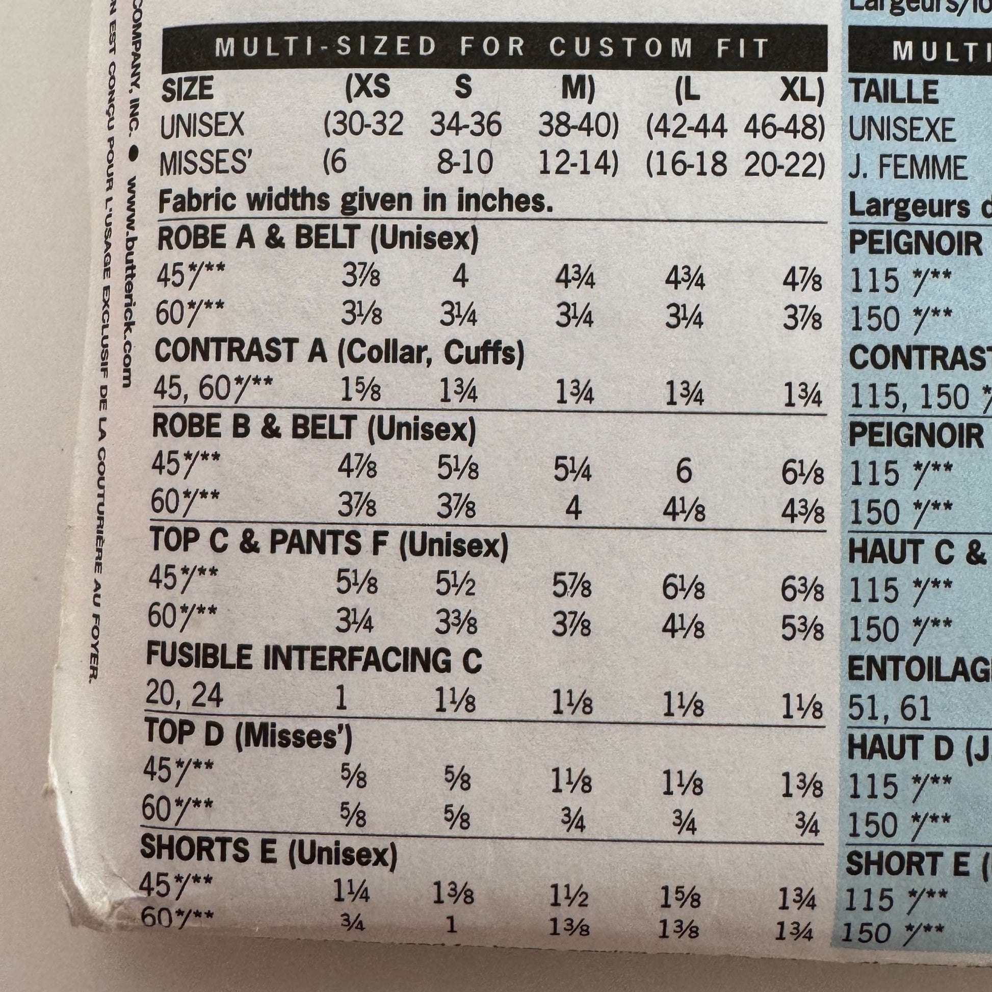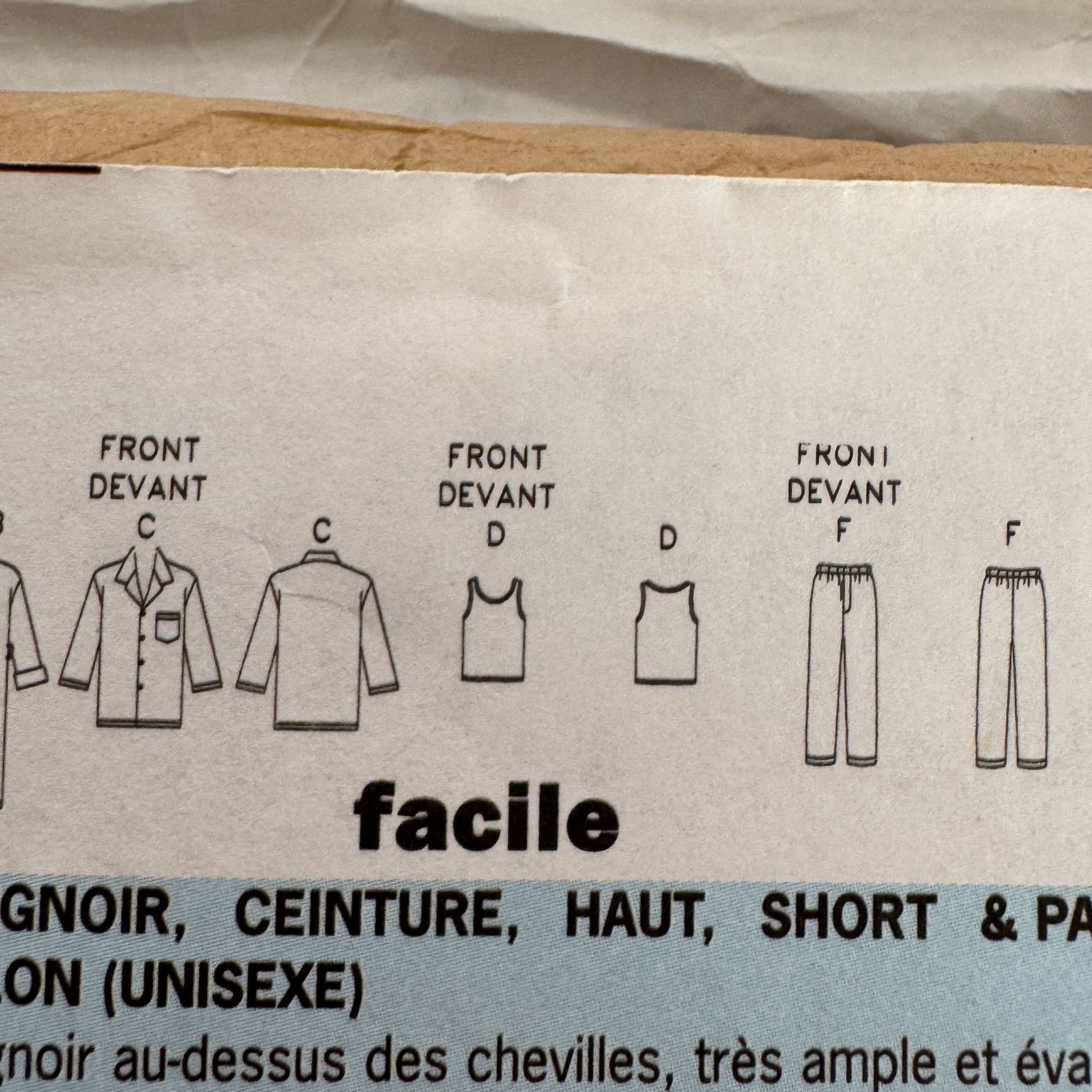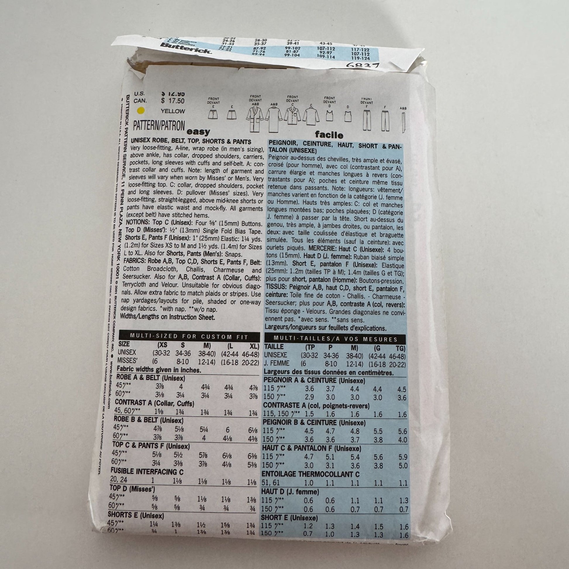 Butterick Classics Sewing pattern 6837: Unisex Robe, Belt, Top, Shorts and Pants