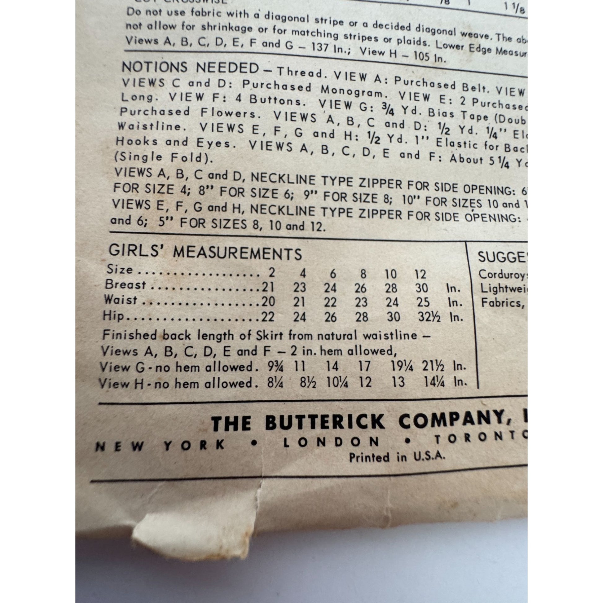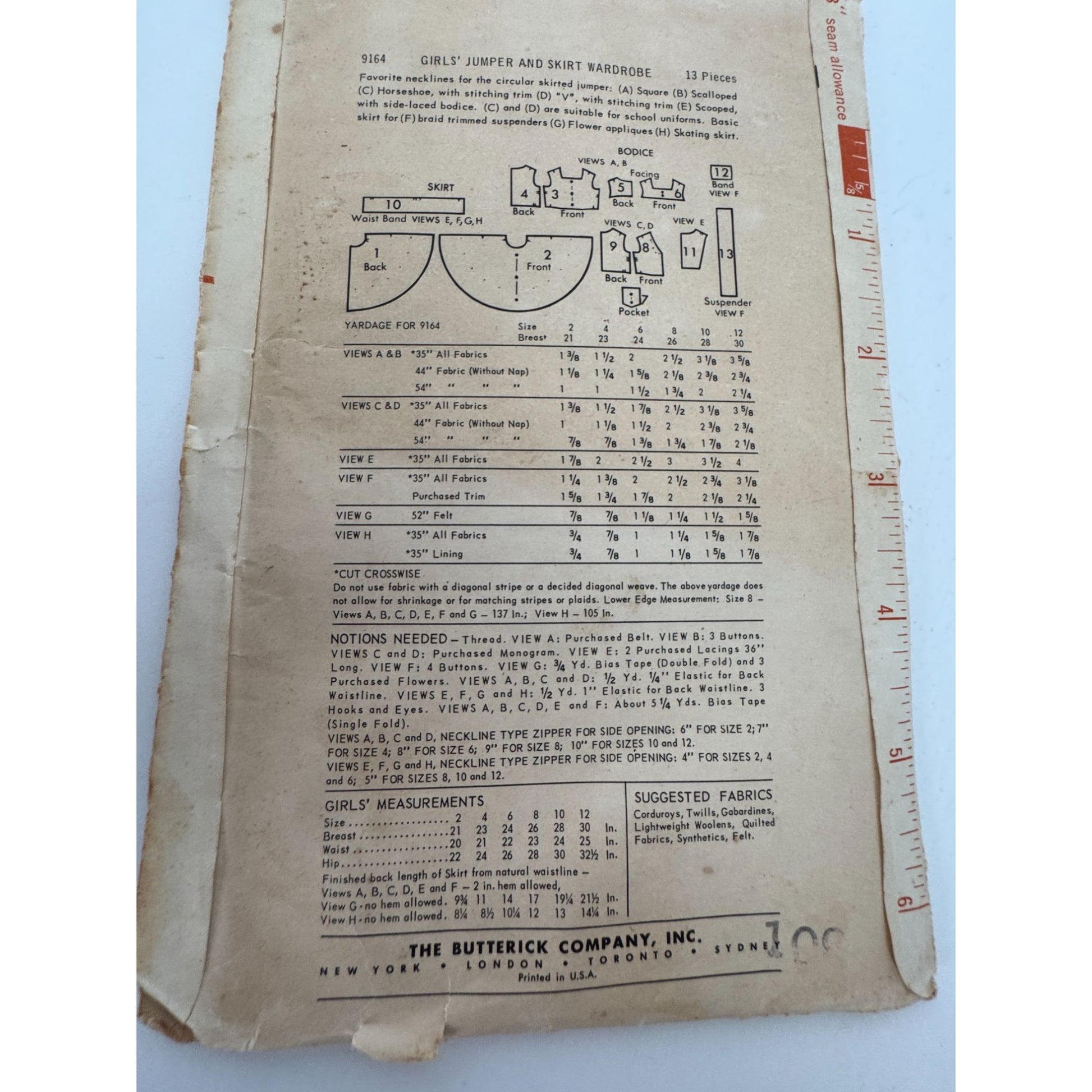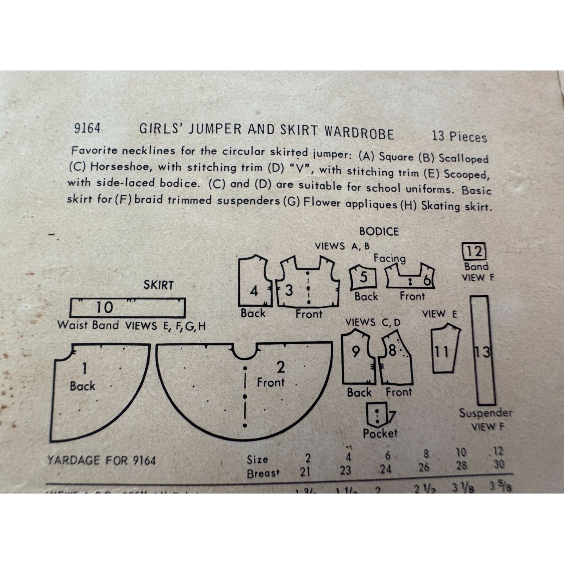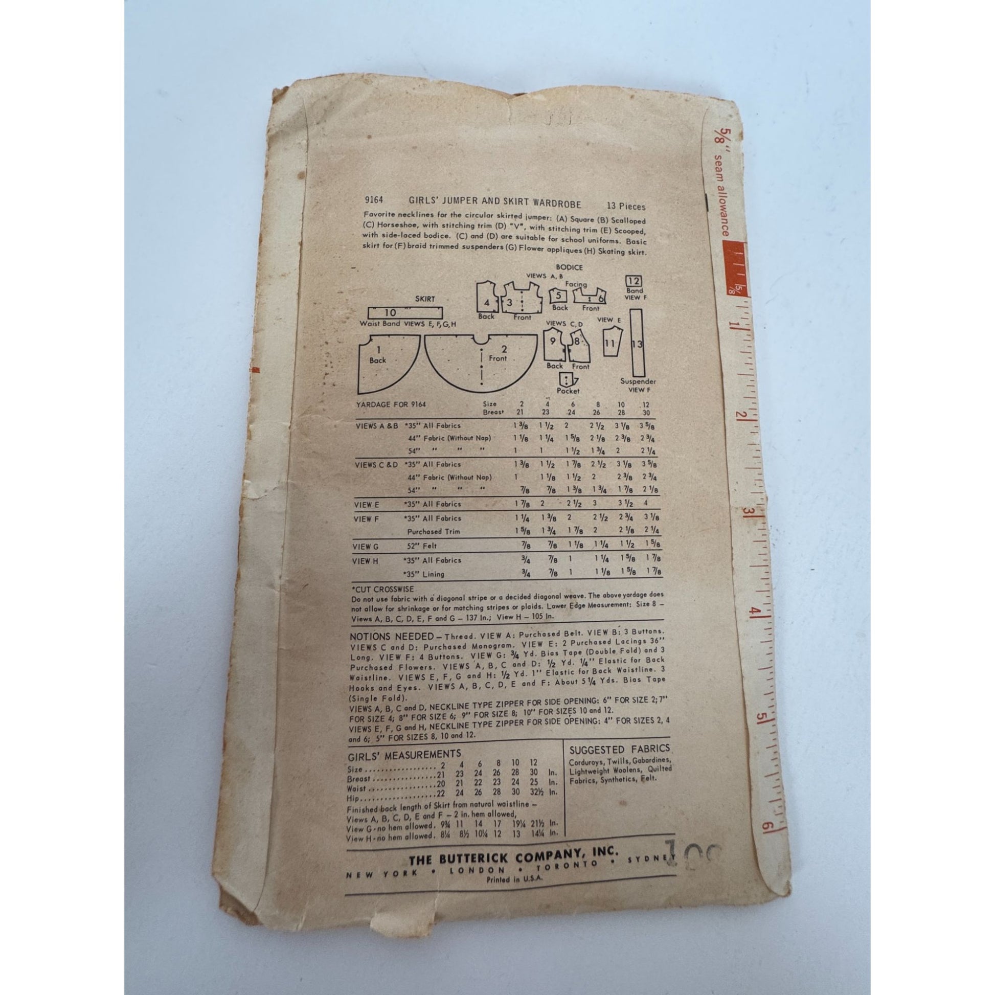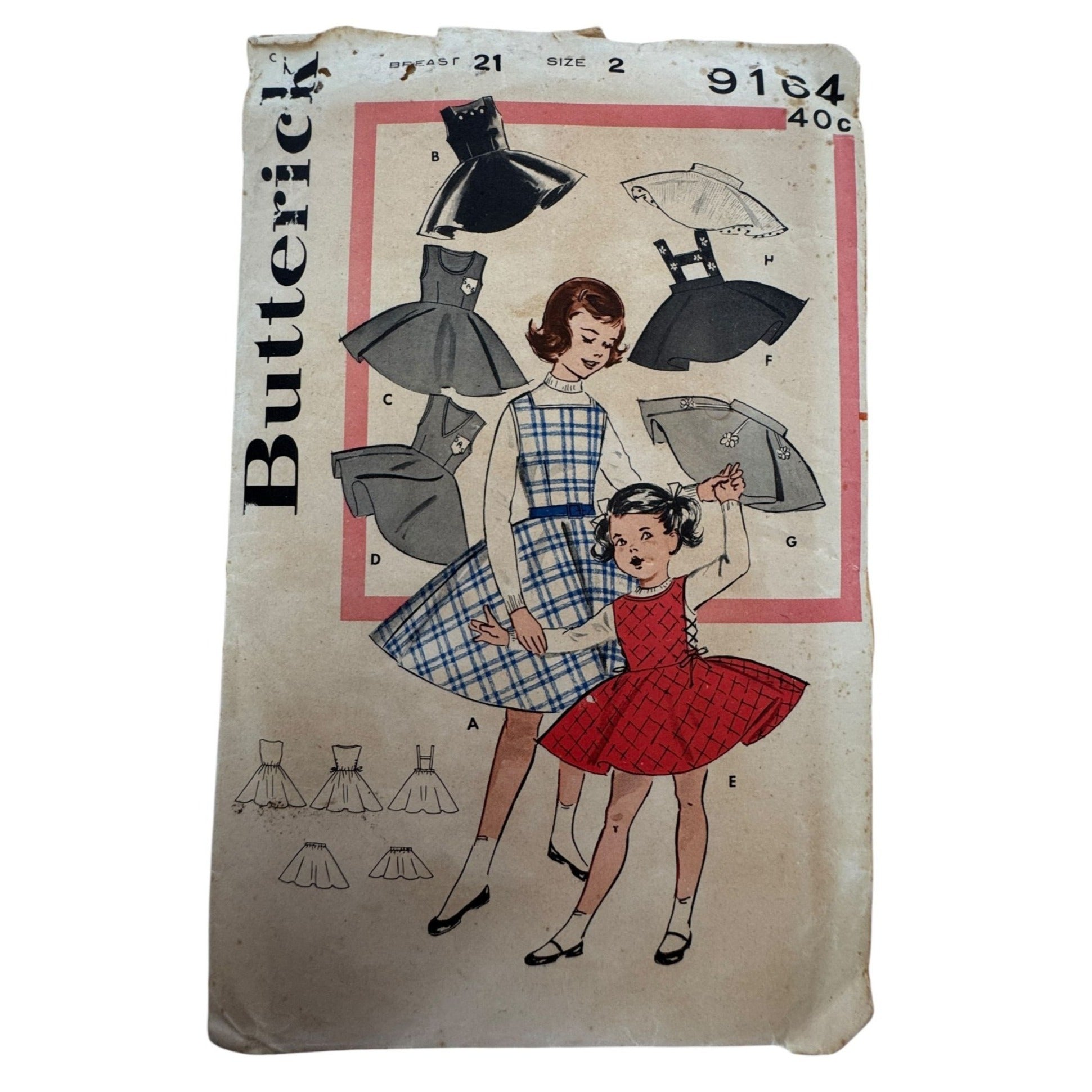 Butterick Sewing Pattern 9164 Jumper and Skirt Toddler Girl 2T 1960s Vintage Cut