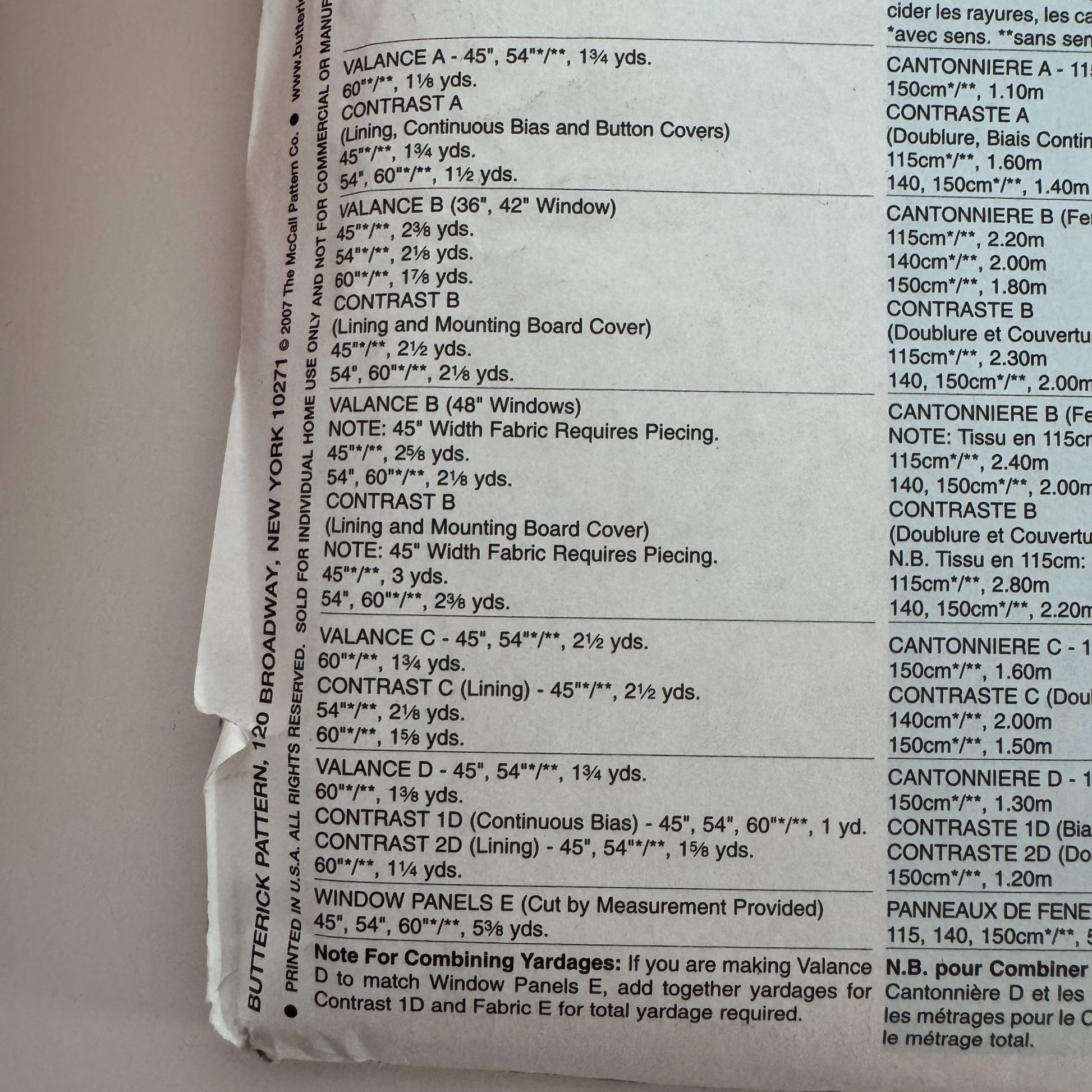 Butterick Sewing Pattern B5057 Waverly Window Treatments Curtains 36" 42" 48" UC