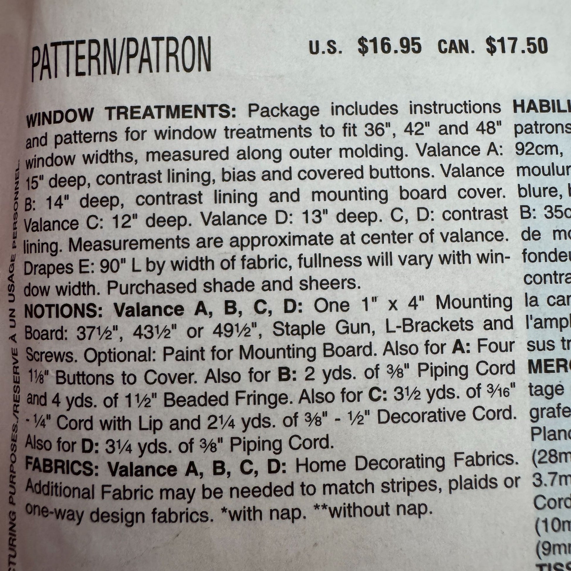 This pattern allows you to create custom window treatments, including valances and drapes for various room aesthetics. The pattern provides clear instructions for multiple window sizes, featuring elegant designs that enhance any interior decor. Suitable for a range of fabric types, these patterns offer versatility for interior designers and home decorators.