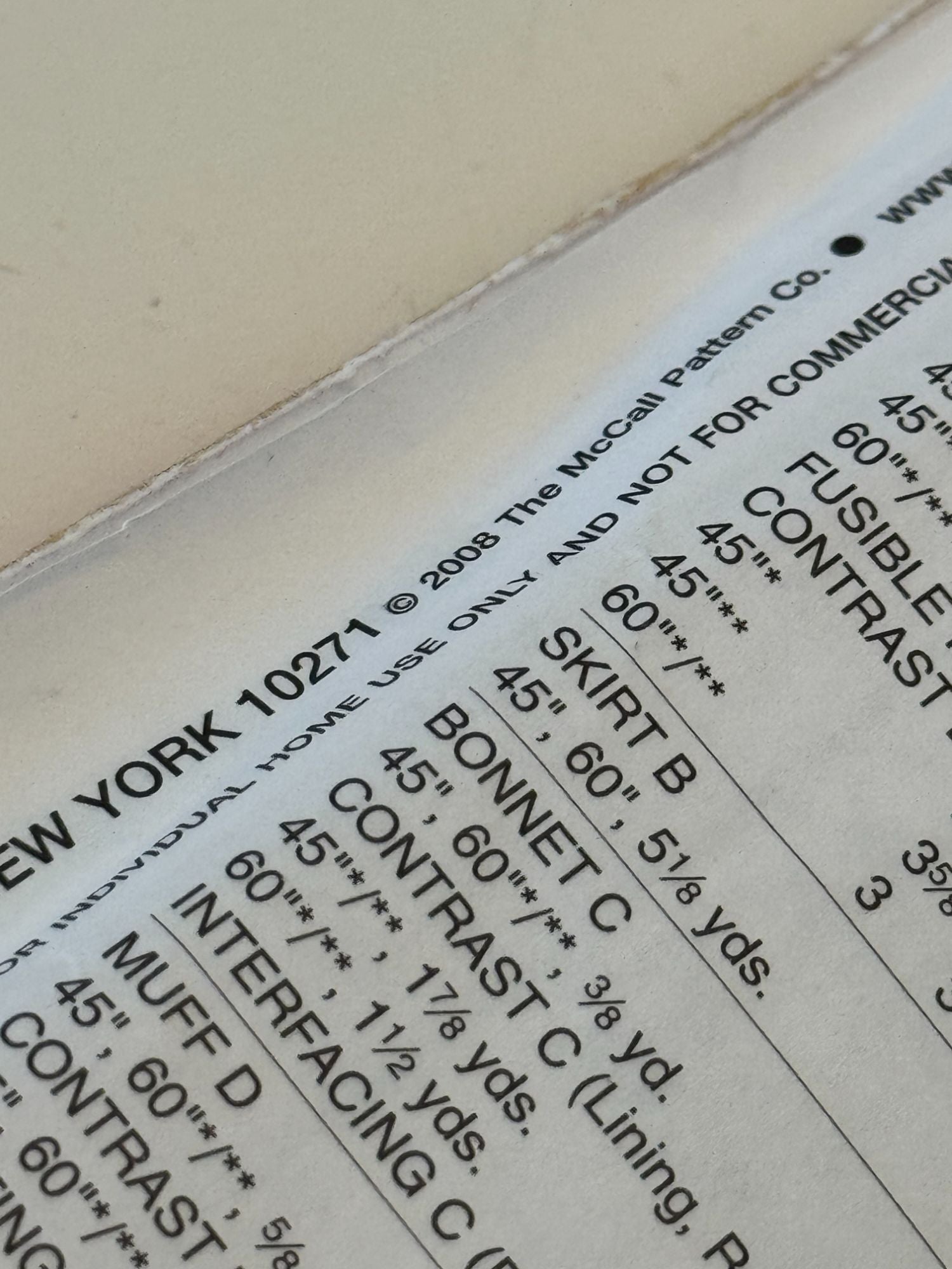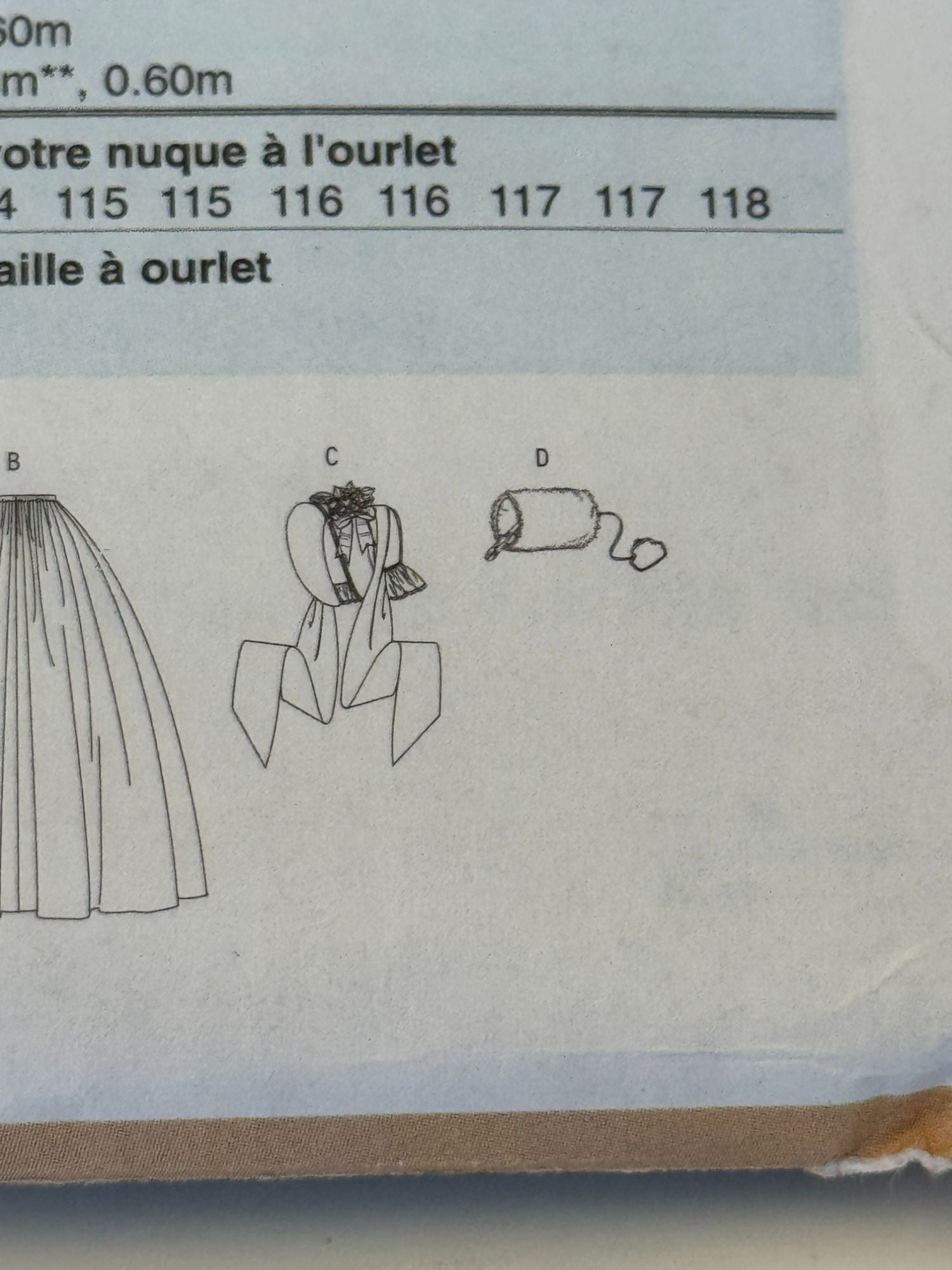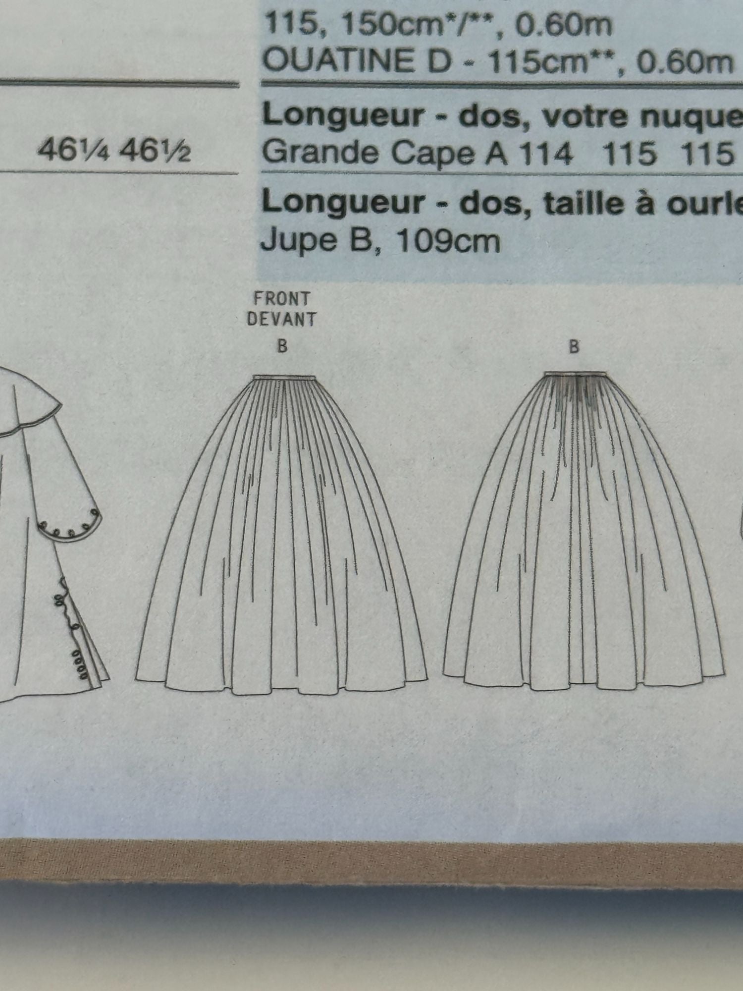 A detailed sewing pattern for creating a Victorian-style ensemble including a lined cloak with capelet, skirt, bonnet, and muff. Ideal for historical reenactments, Christmas caroling or costume events.