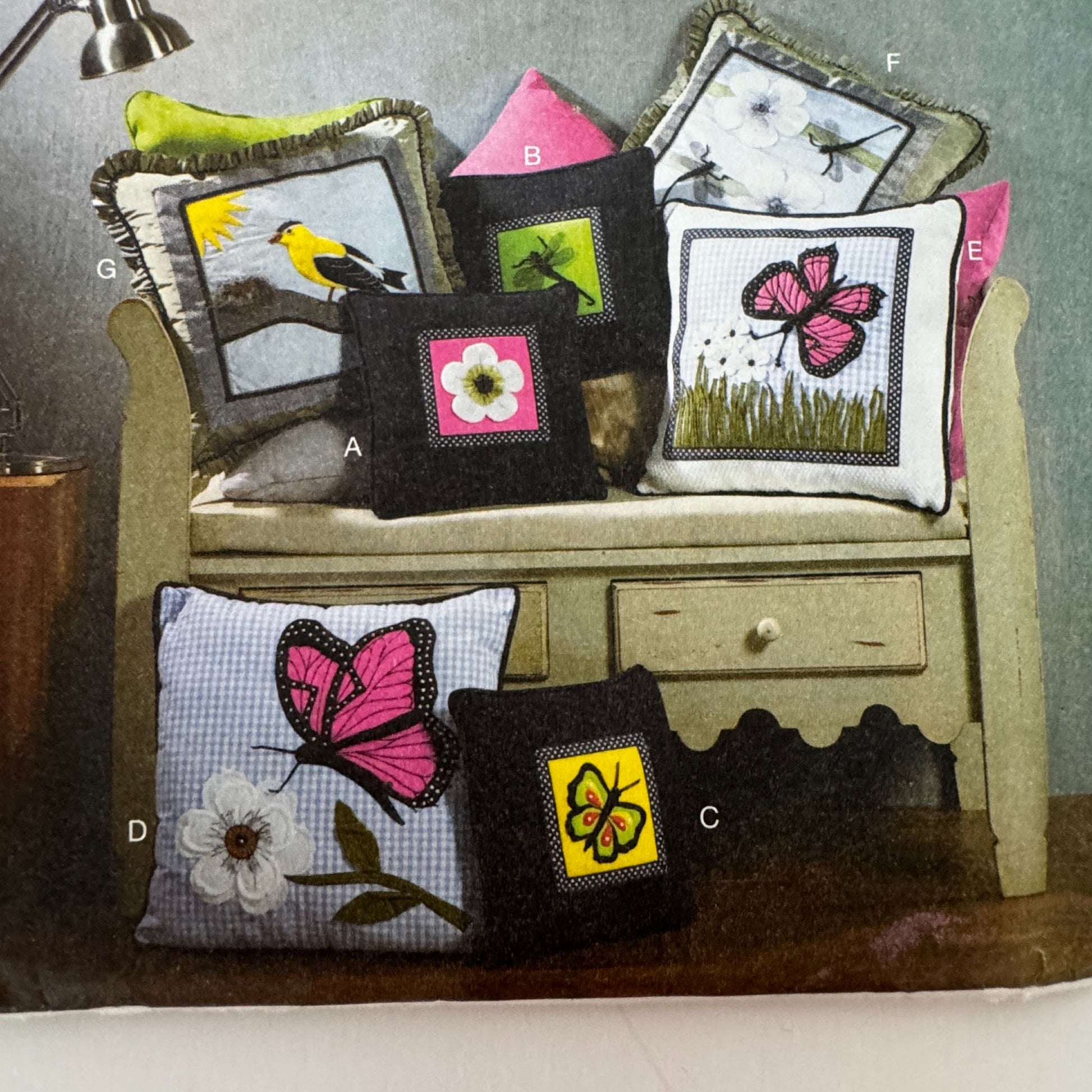 • Includes instructions for seven pillow designs