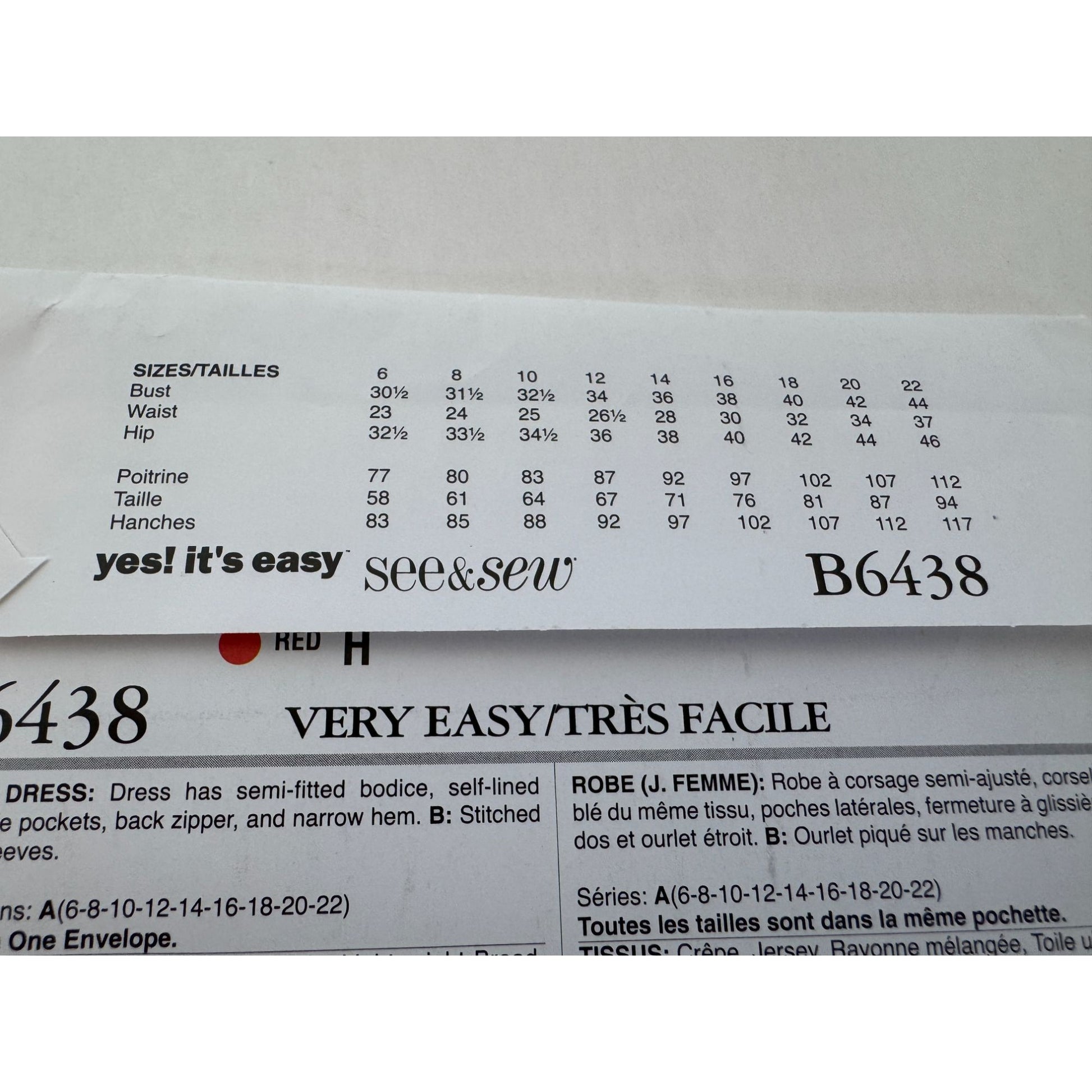 Butterick Sewing Pattern B6438 Summer Dress Easy See and Sew Sizes 6-22 Uncut