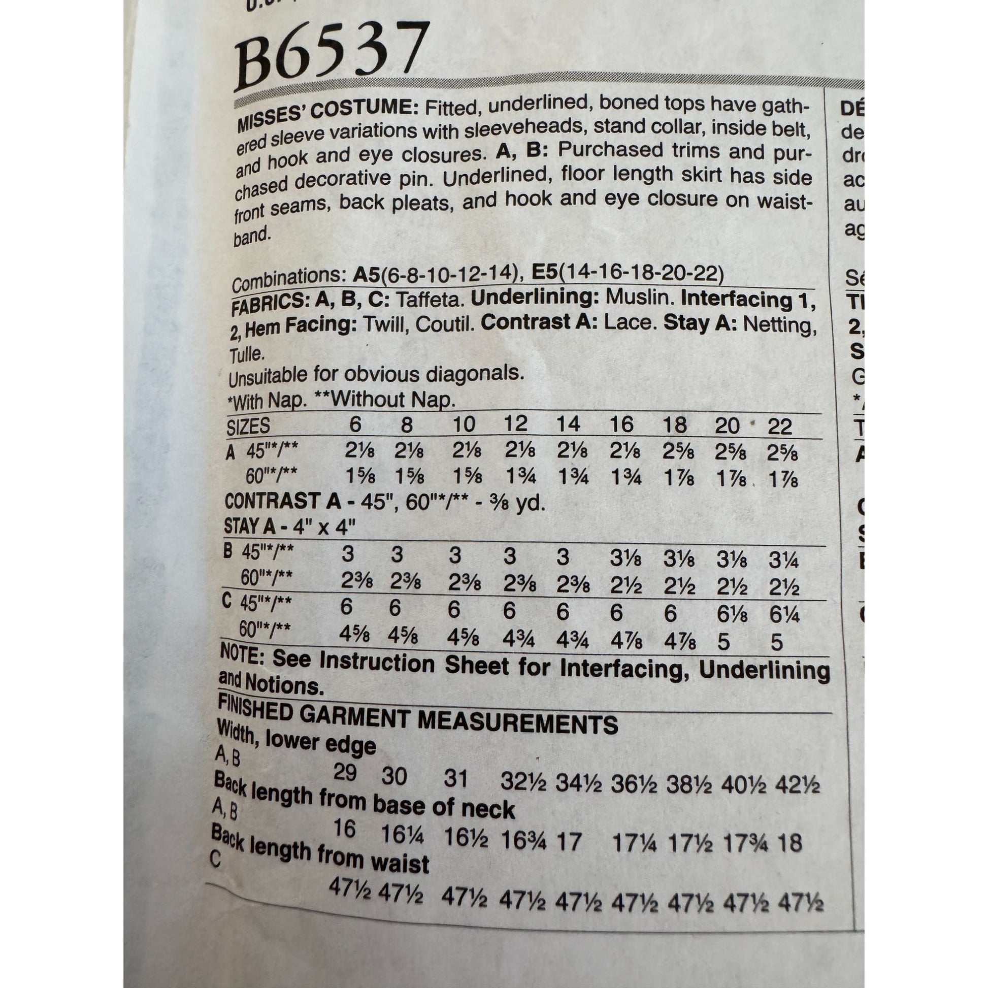 Butterick Sewing Pattern B6537: Misses' Edwardian-Style Costume