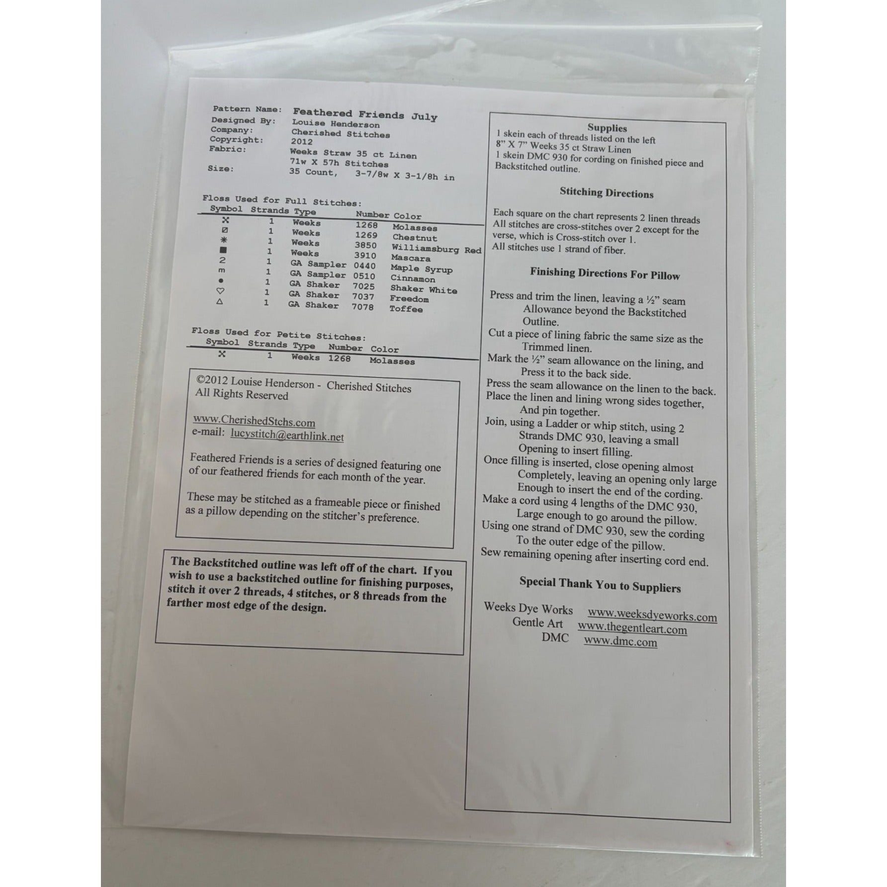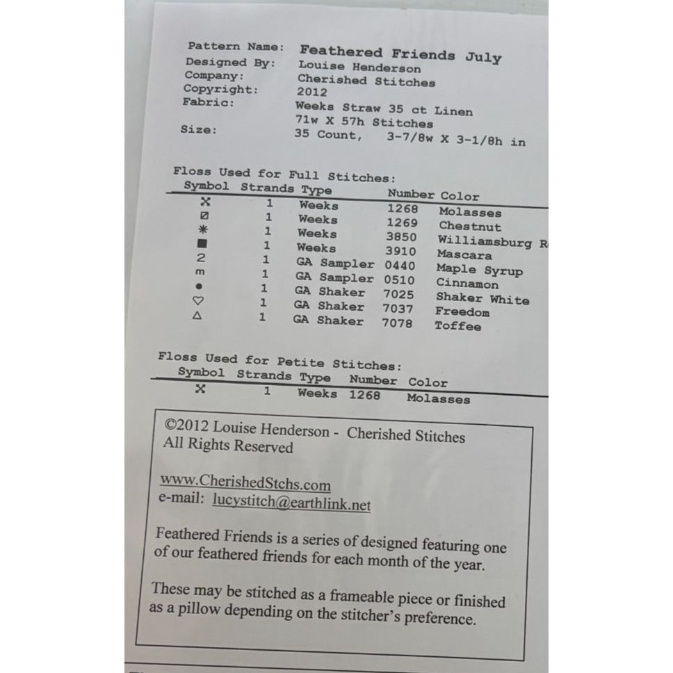 Cherished Stitches Counted Cross Stitch Pattern: Feathered Friends July
