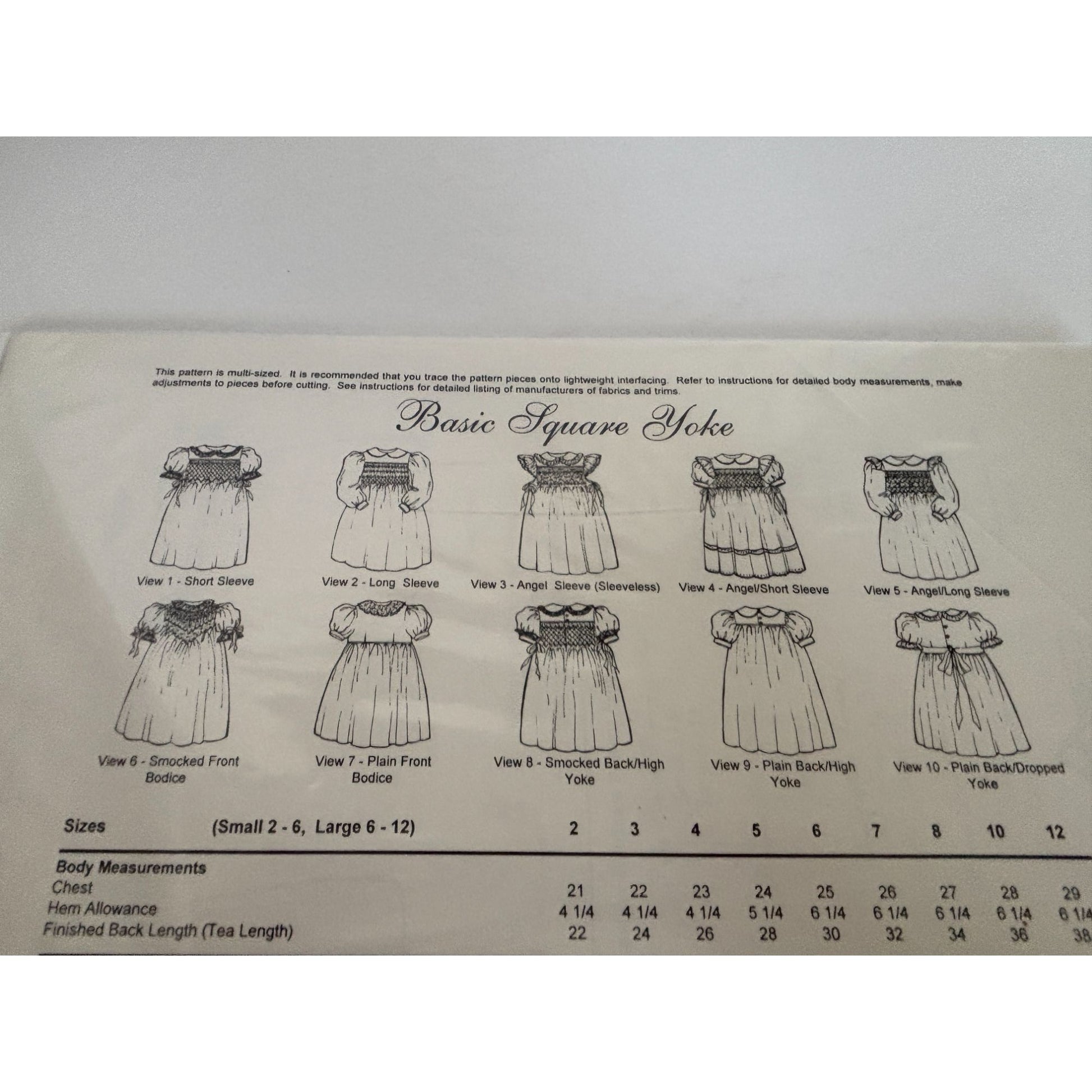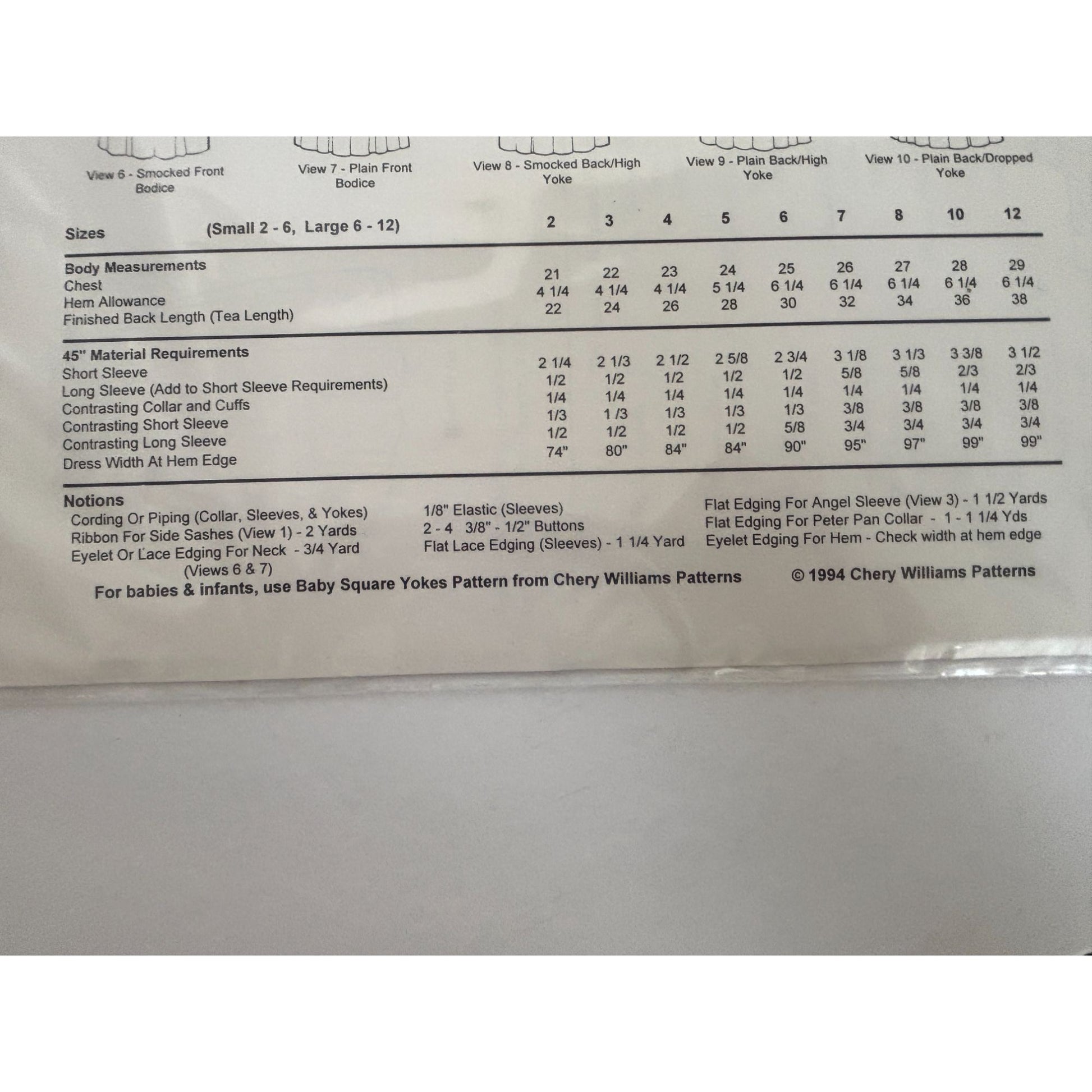 Chery Williams Heirloom Sewing Pattern Basic Square Yoke Dress Angel Sleeve 6-12